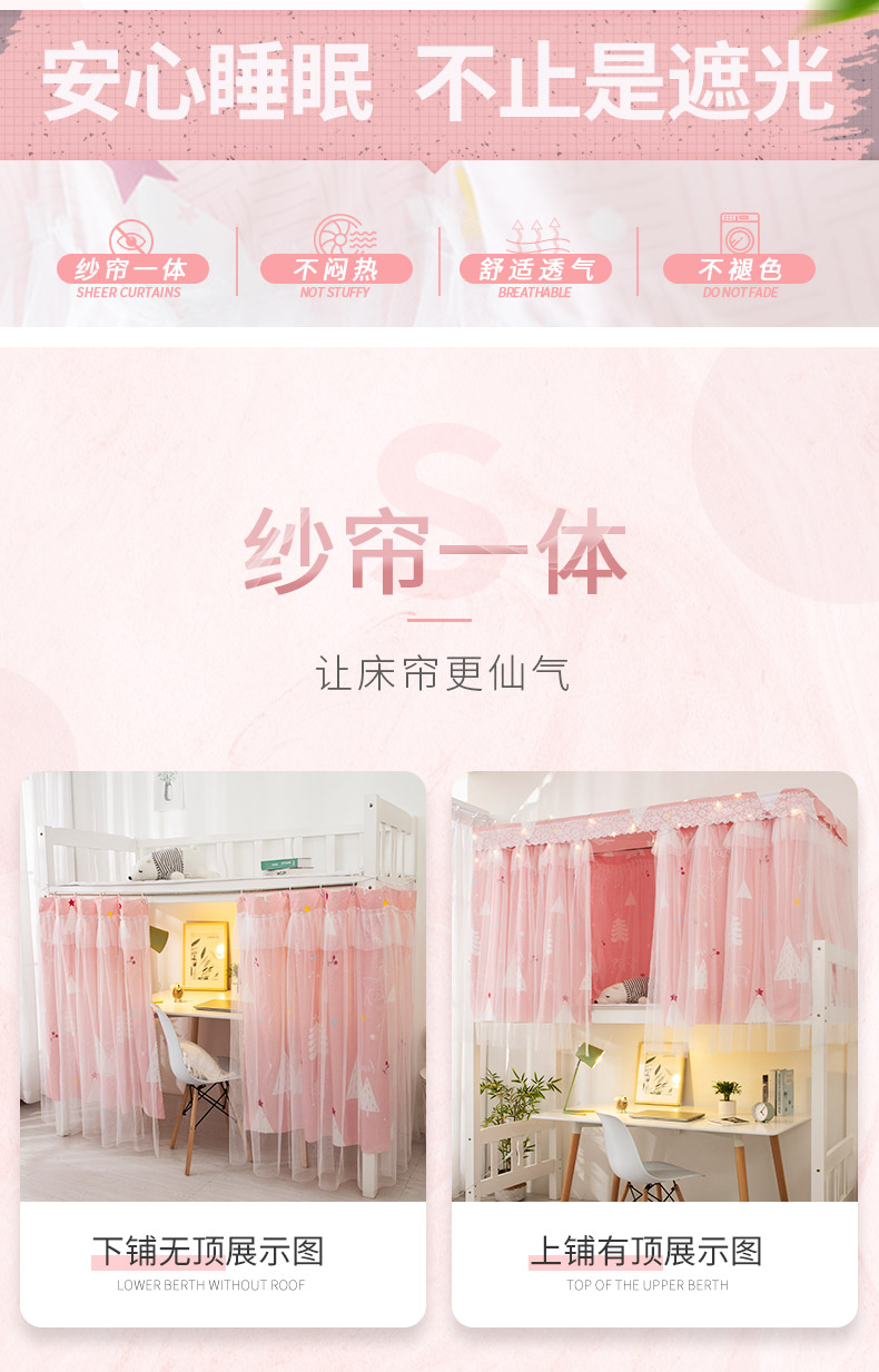公主风学生宿舍床帘上下铺隐私帘员工宿舍简易带纱床帘批发可咨询报价 梦幻森林SL42