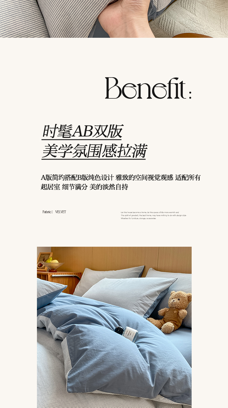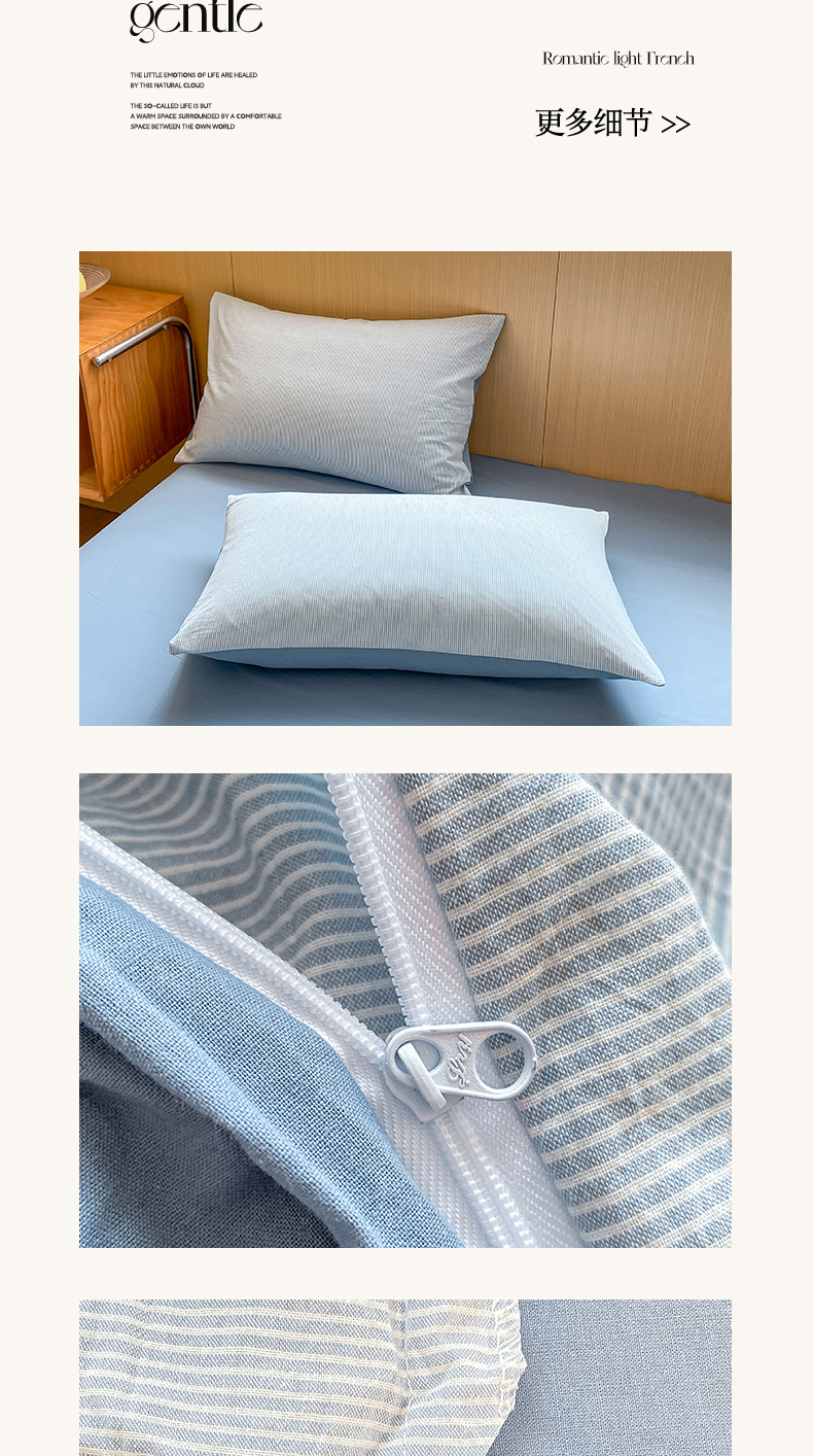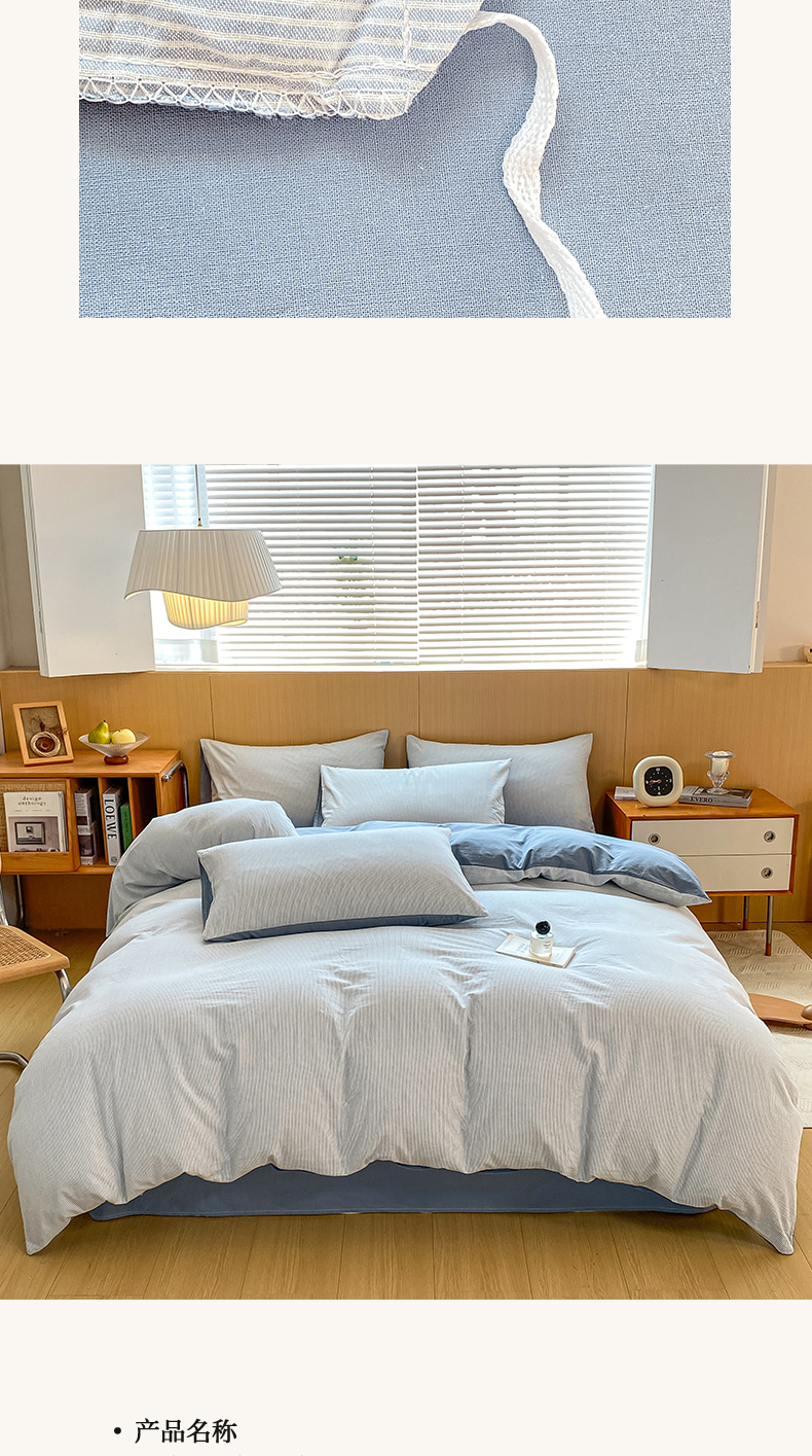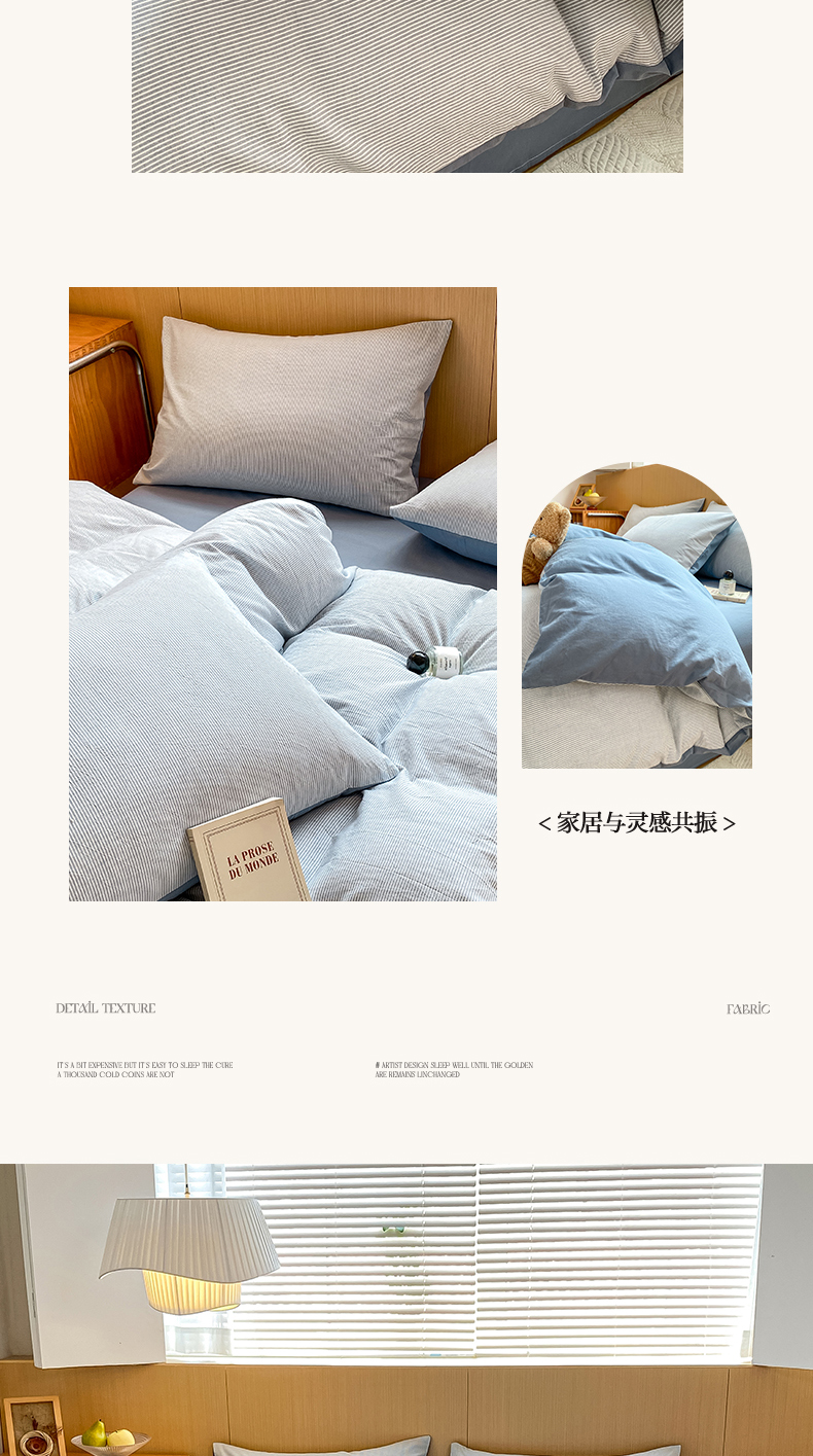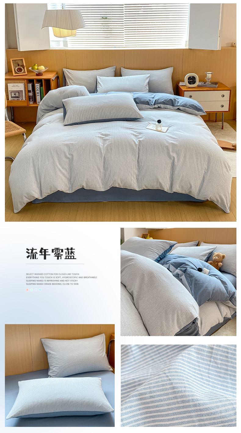 商品名称:恋人优选 2025新款条纹全棉纯棉水洗系列单被套 被套单件 流年雾蓝