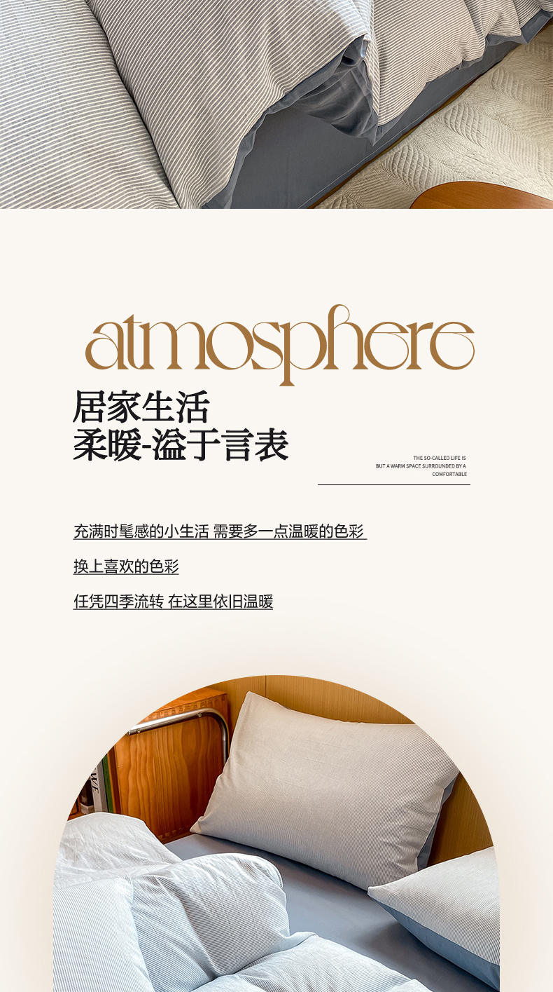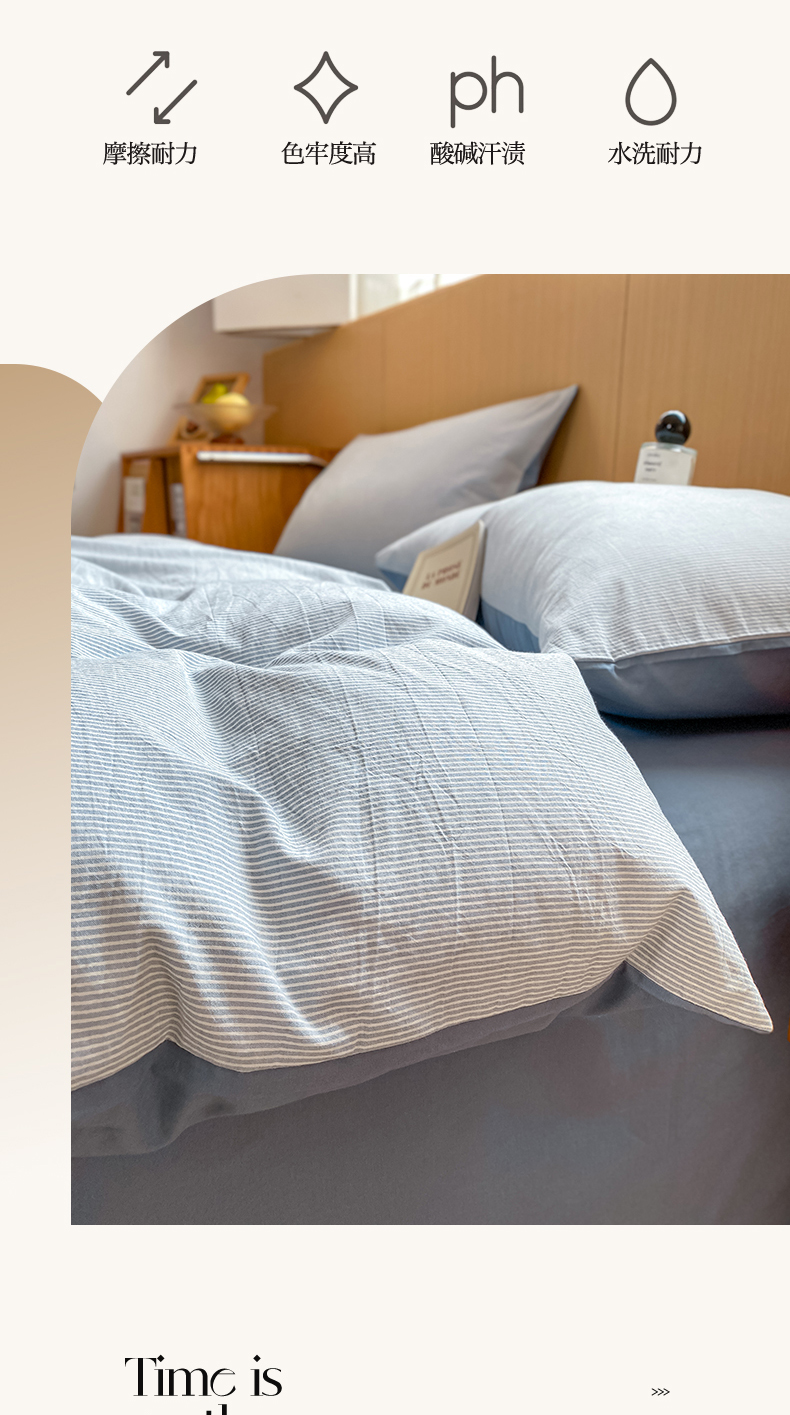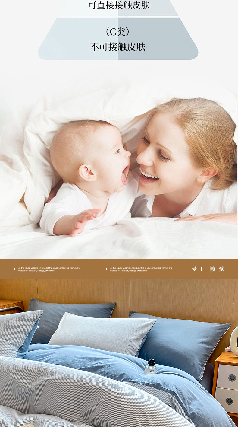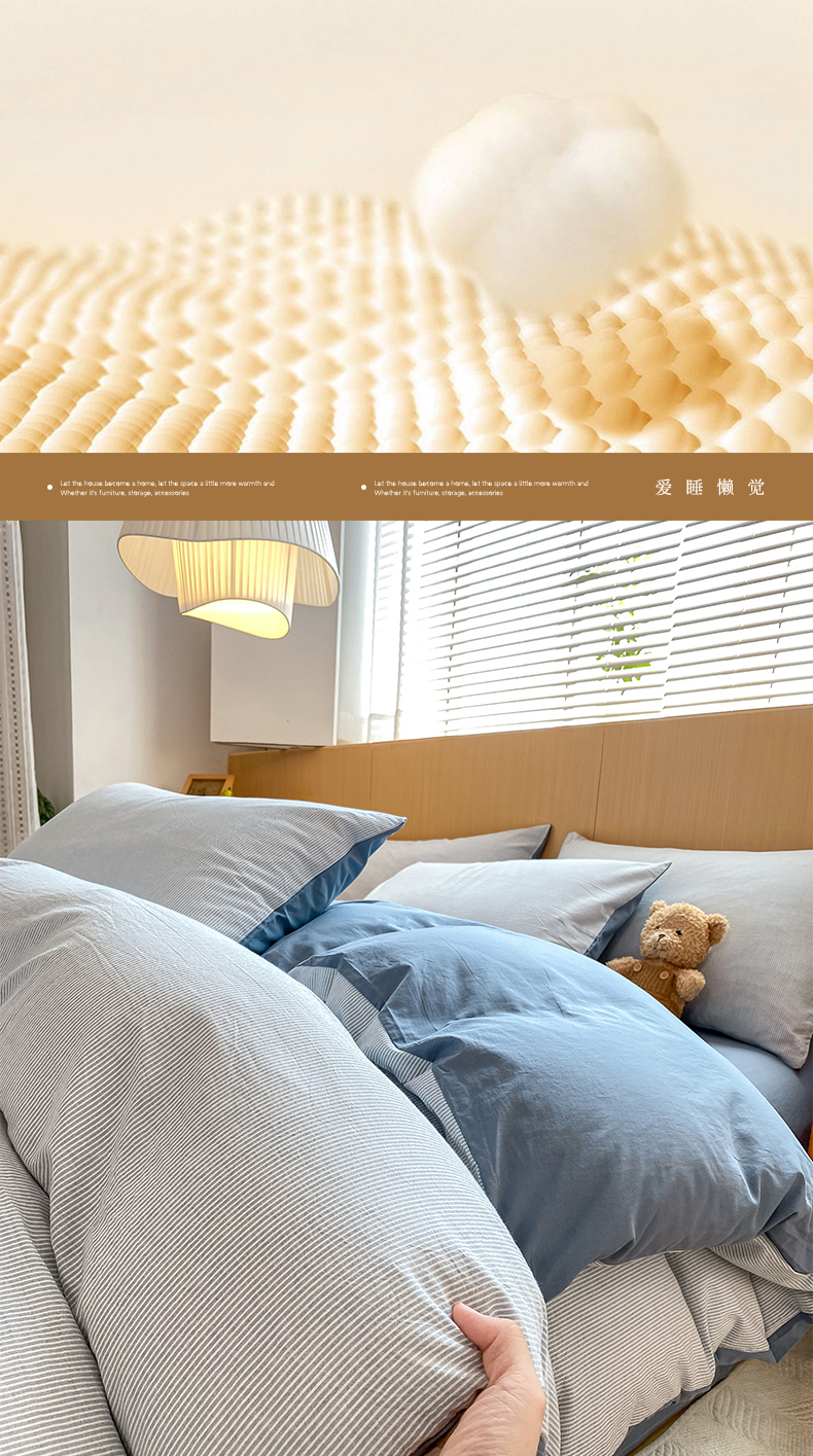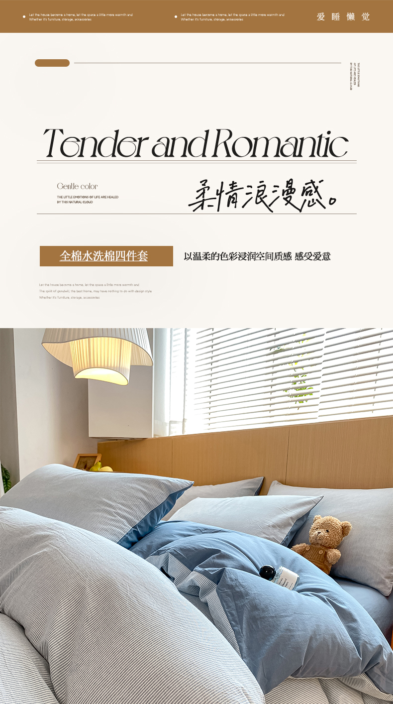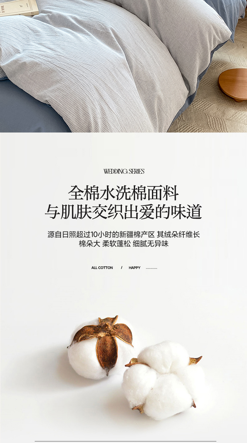 商品名称:恋人优选 2025新款条纹全棉纯棉水洗系列单被套 被套单件 流年雾蓝