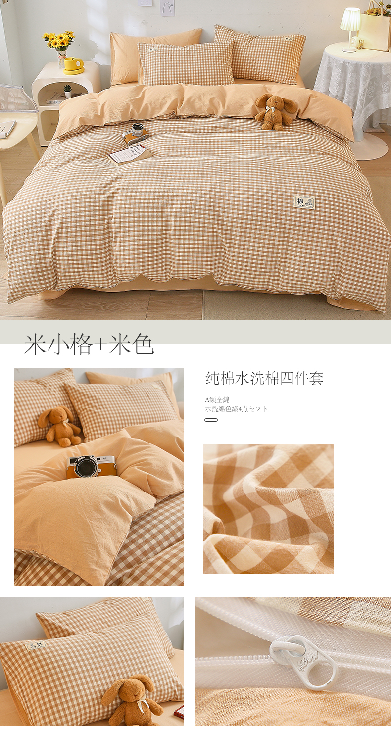 • 91家纺网 家纺一手货源 找家纺 恋人优选 2025新款A类全棉纯棉水洗棉系列(AB版)单被套 被套单件 米小格+米色(AB版)