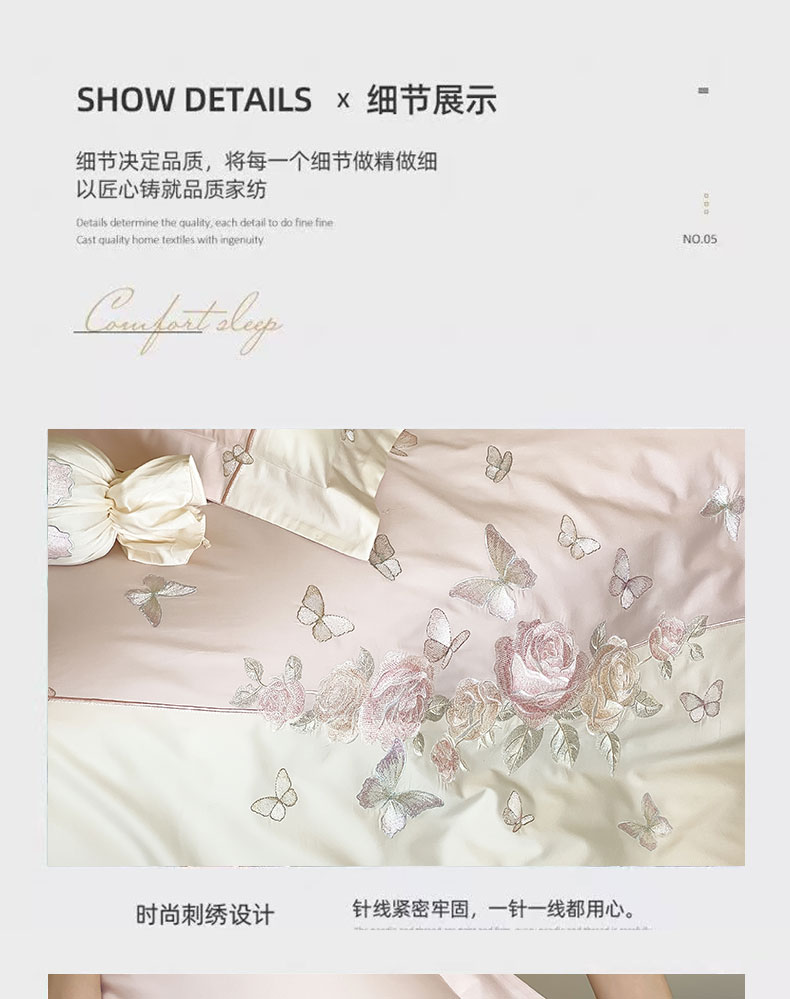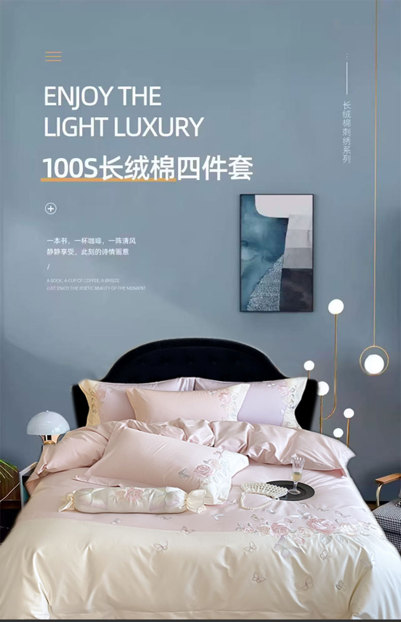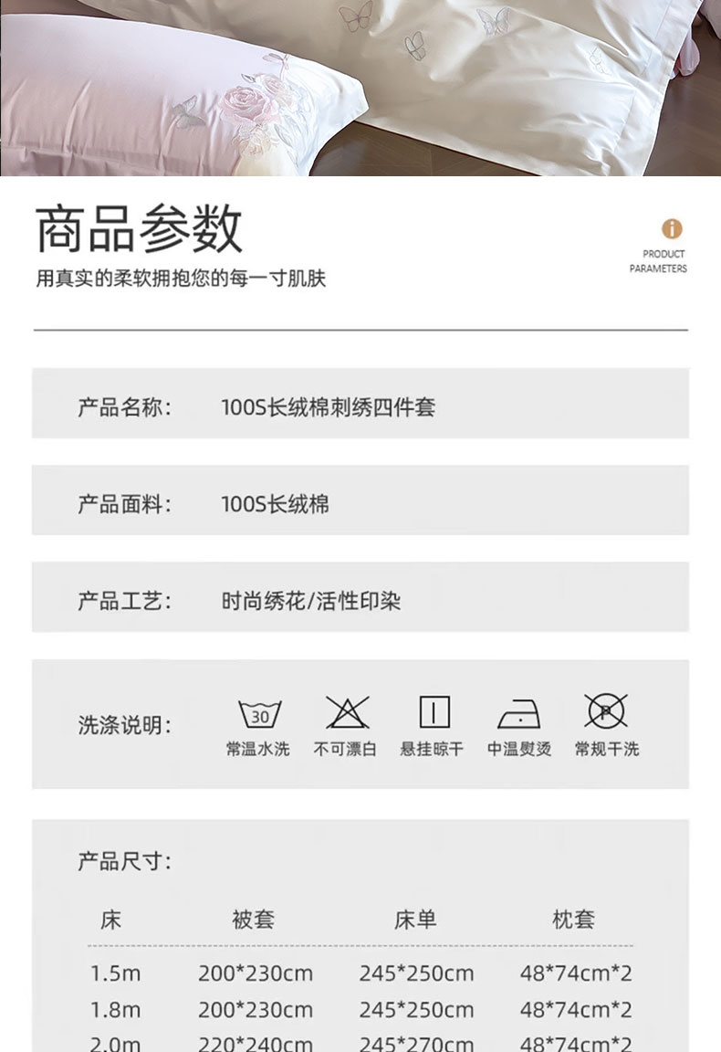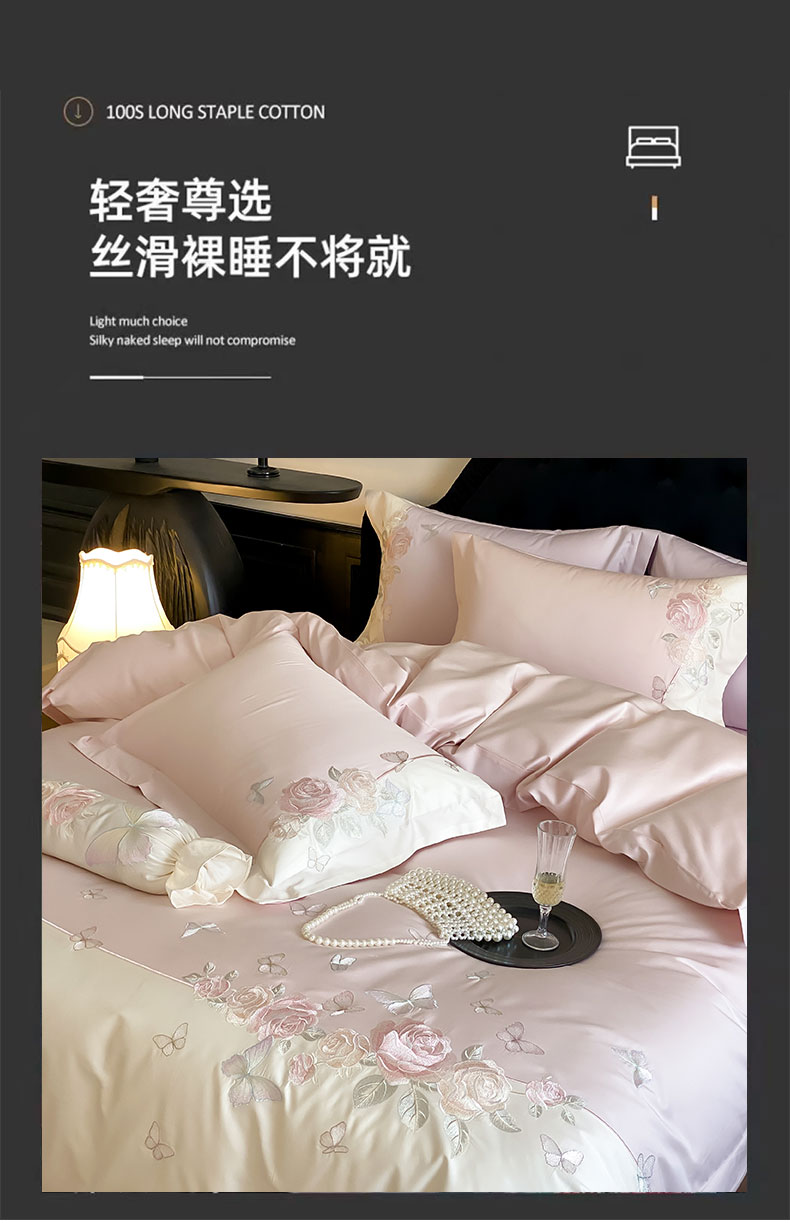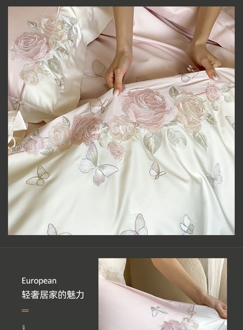 商品名称:佳汐蓝家纺 2025春夏新款贡缎长绒棉蝶梦花缘四件套 蝶梦花缘·粉