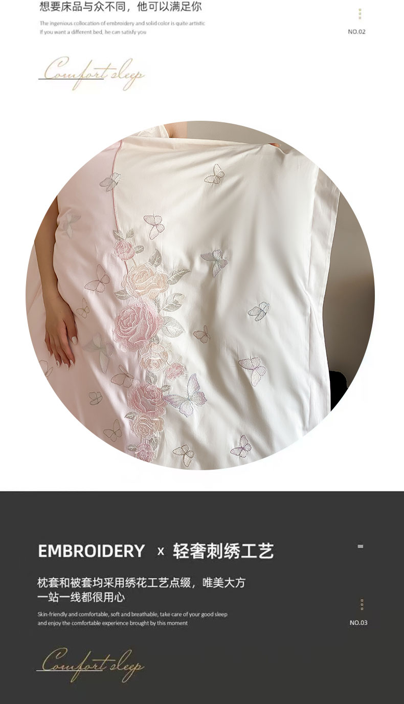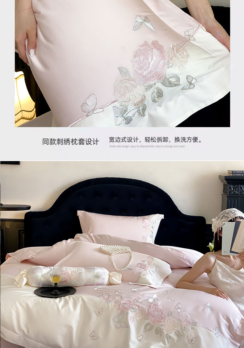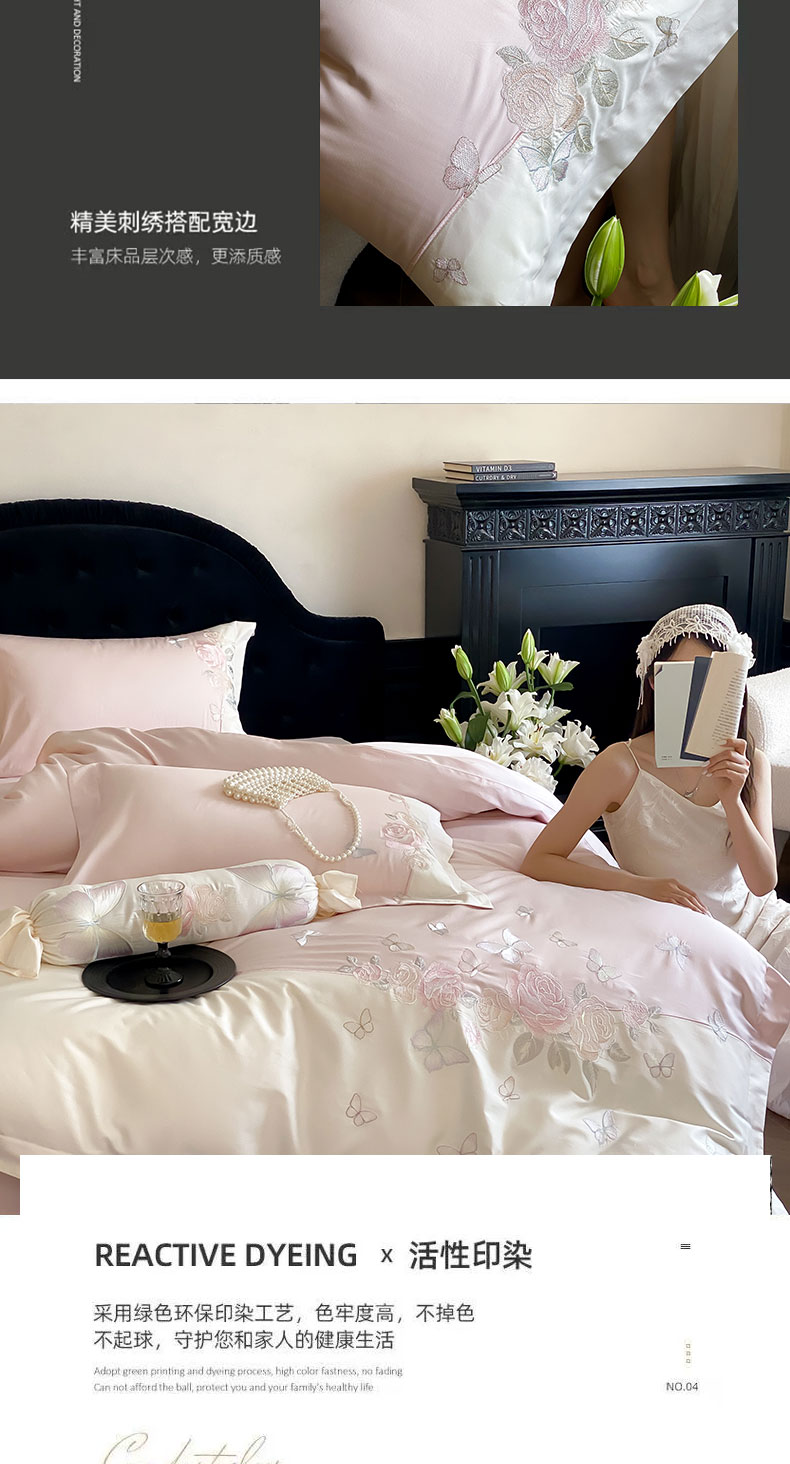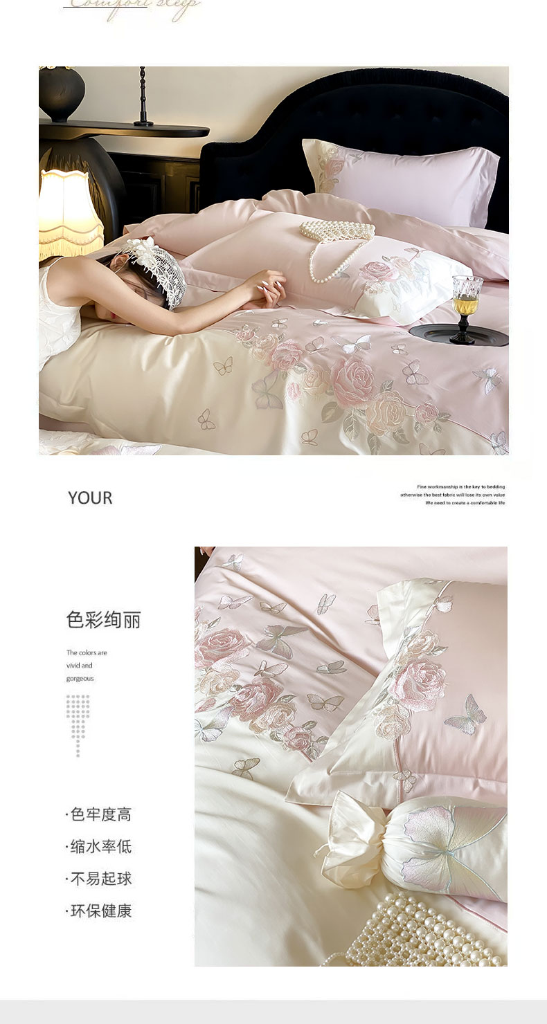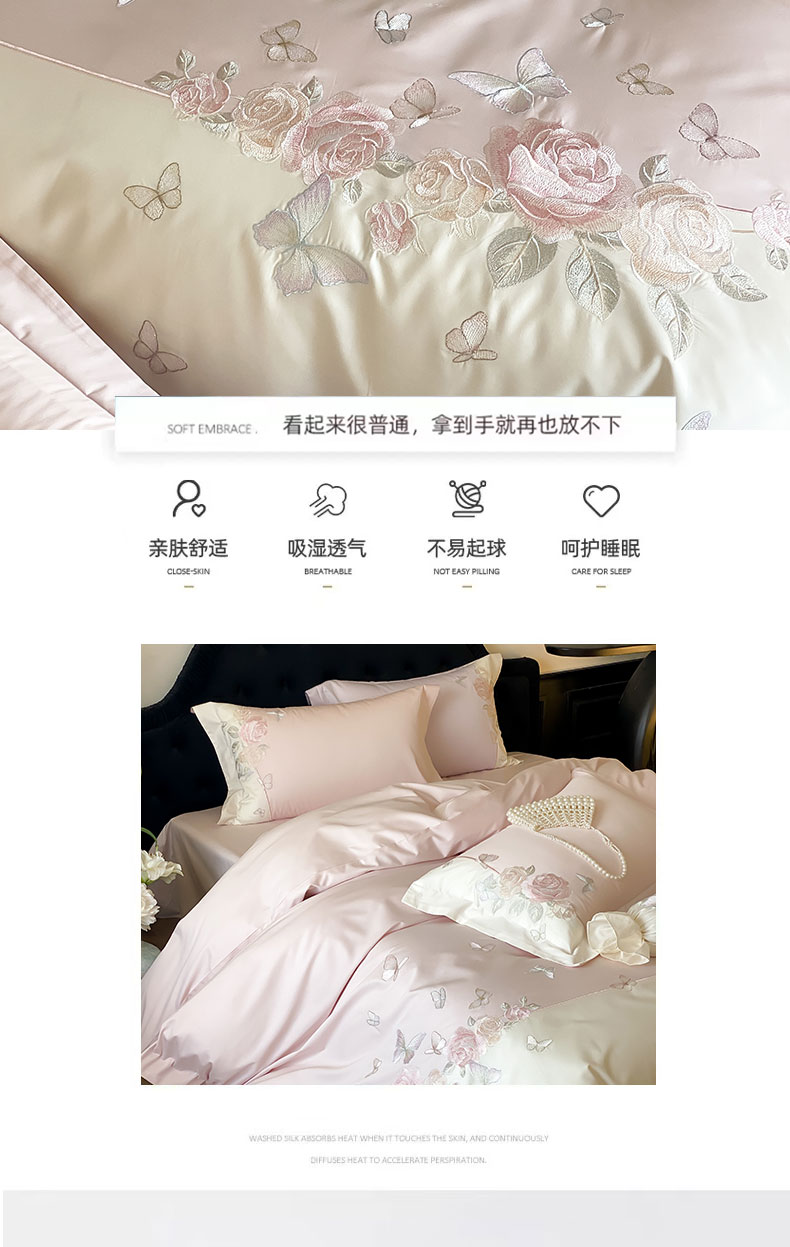 (总)佳汐蓝家纺 2025春夏新款天丝棉蝶舞繁花绣花天丝四件套,蝶舞繁花·粉,蝶舞繁花·蓝