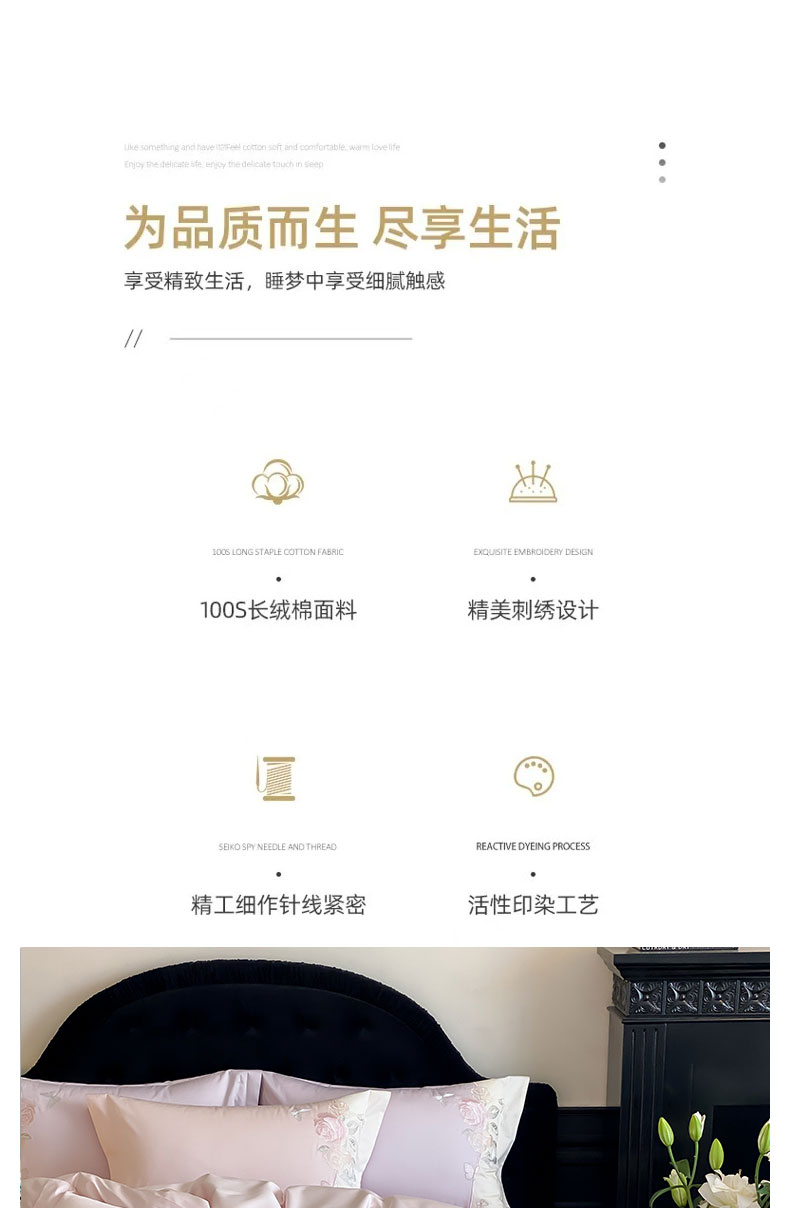 (总)佳汐蓝家纺 2026新款新疆长绒棉全棉纯棉轻奢五线刺绣四件套,初雪白,稻谷米,冷釉灰,汐雾蓝,薰衣紫,釉粉,朱砂红