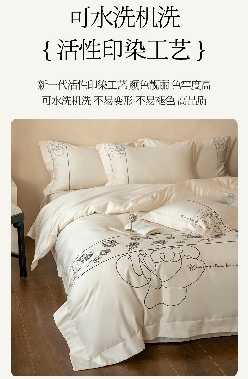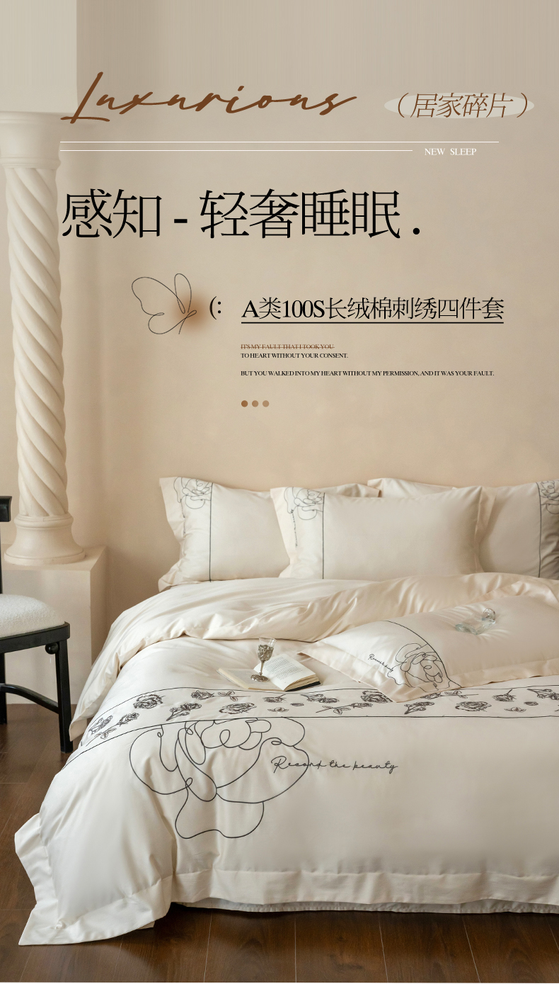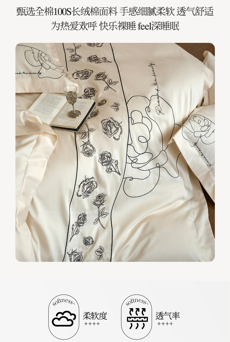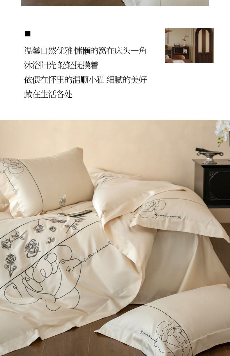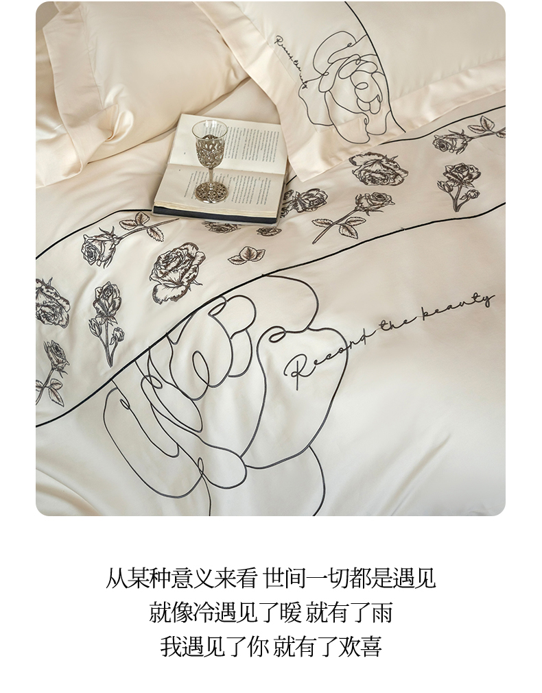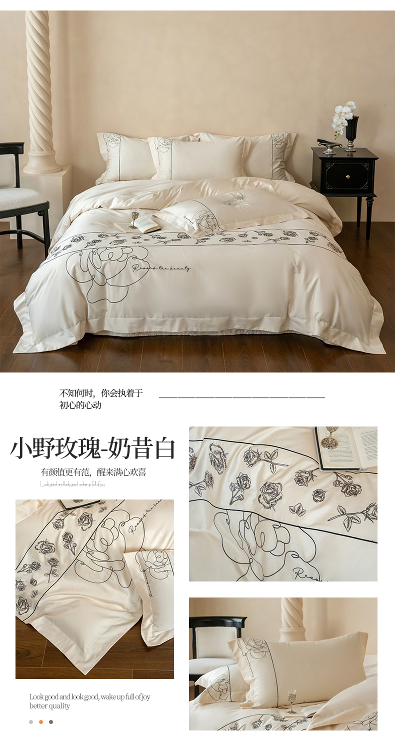 当前位置: 91家纺网 > 商品网购 > 床品套件 > 四件套 > 全棉普通四件套 > 艾莱家纺 2025春夏新款A类100S长绒棉全棉纯棉四件套-小野玫瑰 小野玫瑰-奶昔白