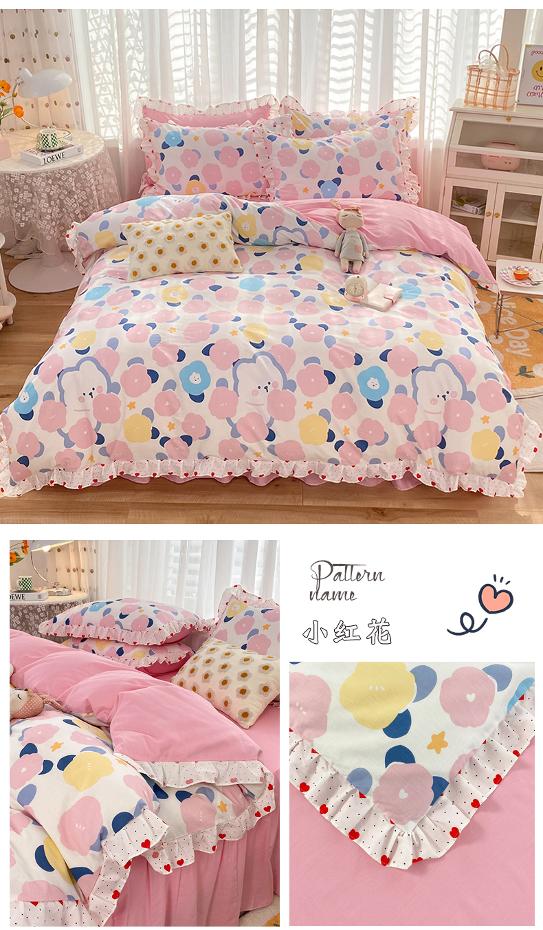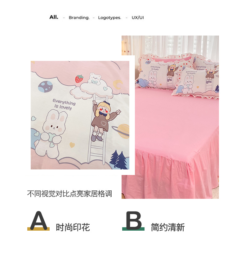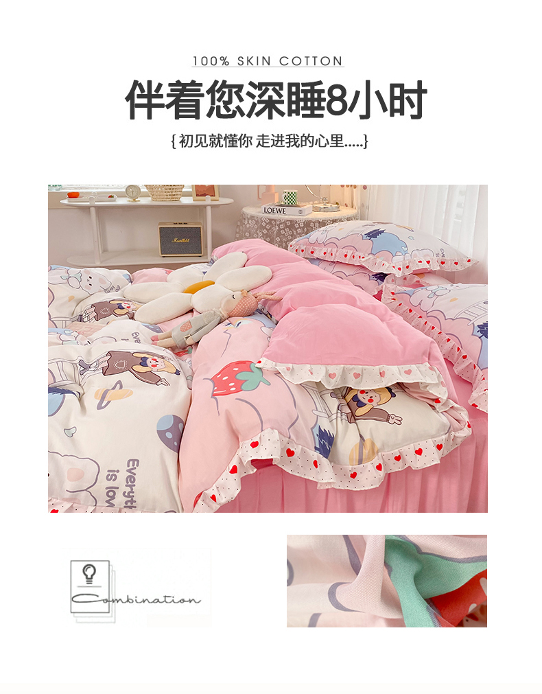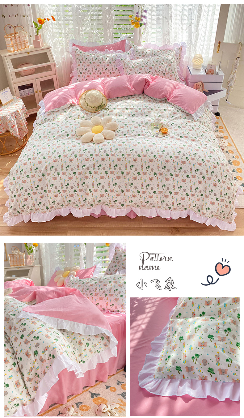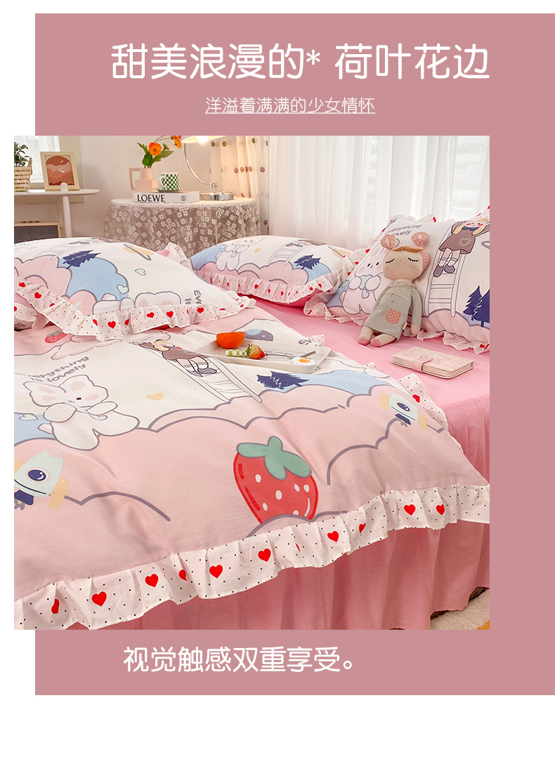商品名称:玉元坊 2025春夏新款公主风全棉纯棉花边被套床单四件套 兔高高