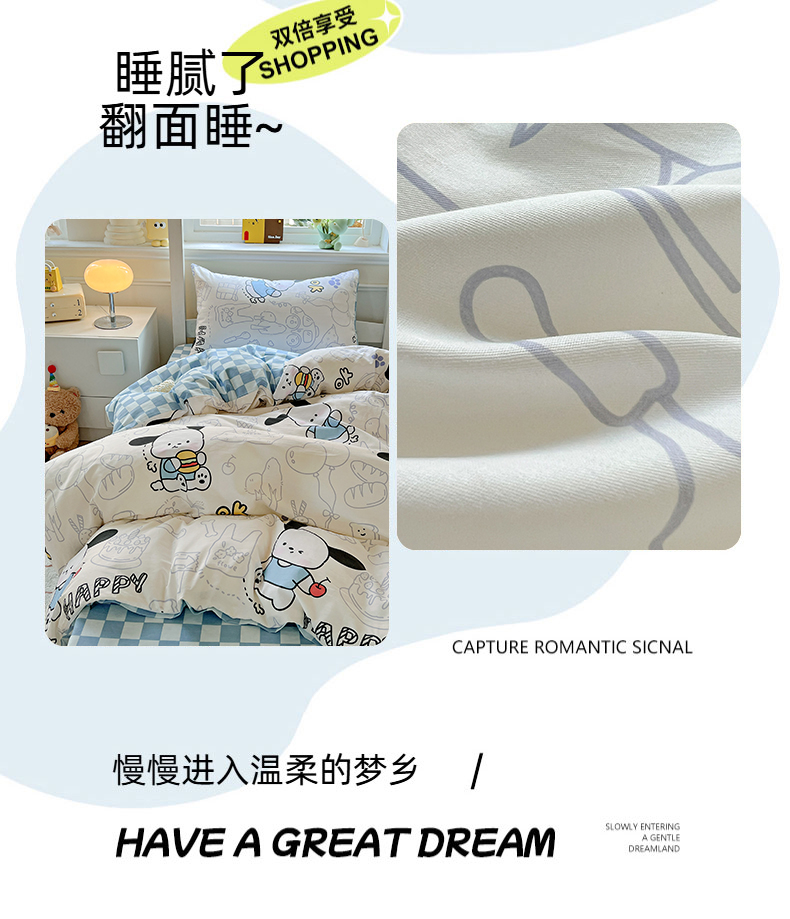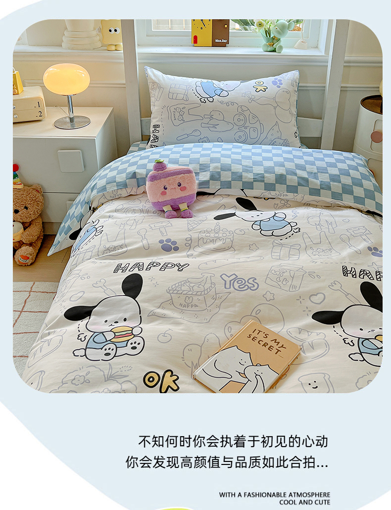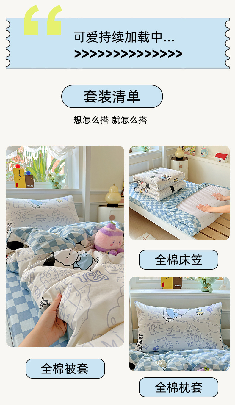 当前位置: 91家纺网 > 商品网购 > 床品套件 > 三件套 > 三兄弟 2025新款全棉印花学生三件套床单床笠四件套被套 蓝色小狗