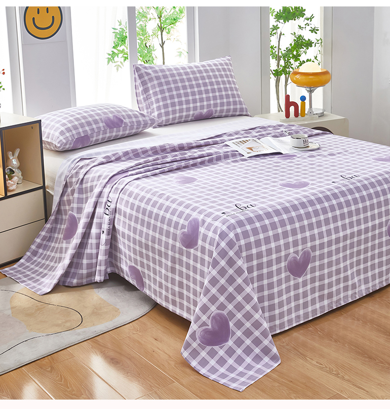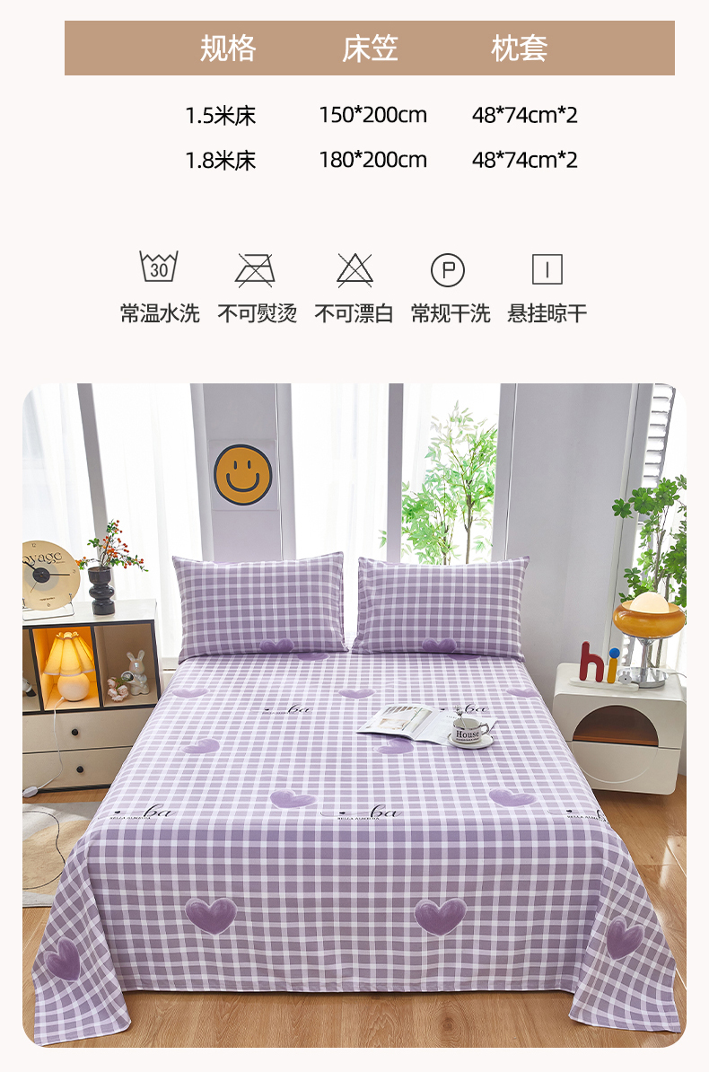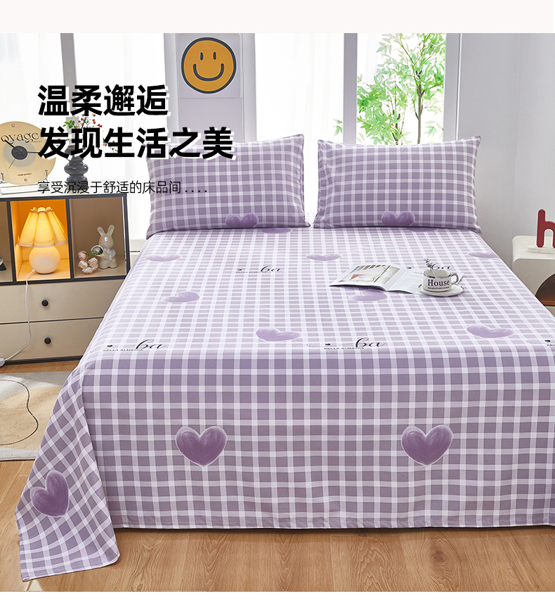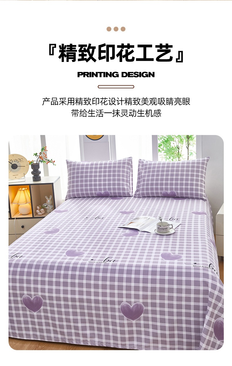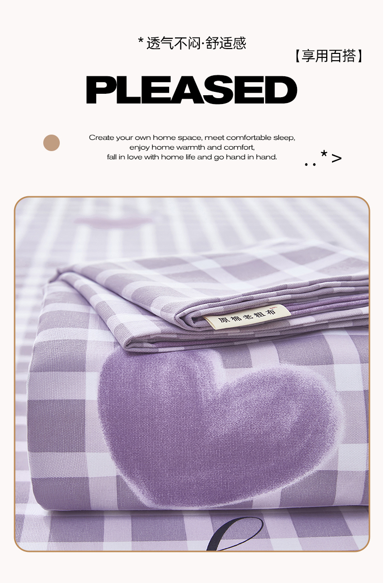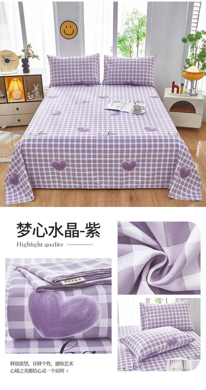 商品名称:雲归梦 2025新款原棉老粗布床单席子凉席印花三件套 梦心水晶-紫