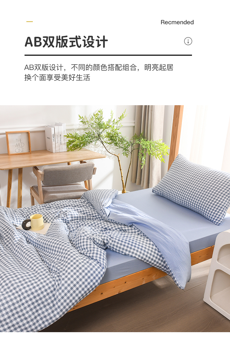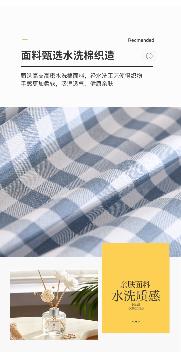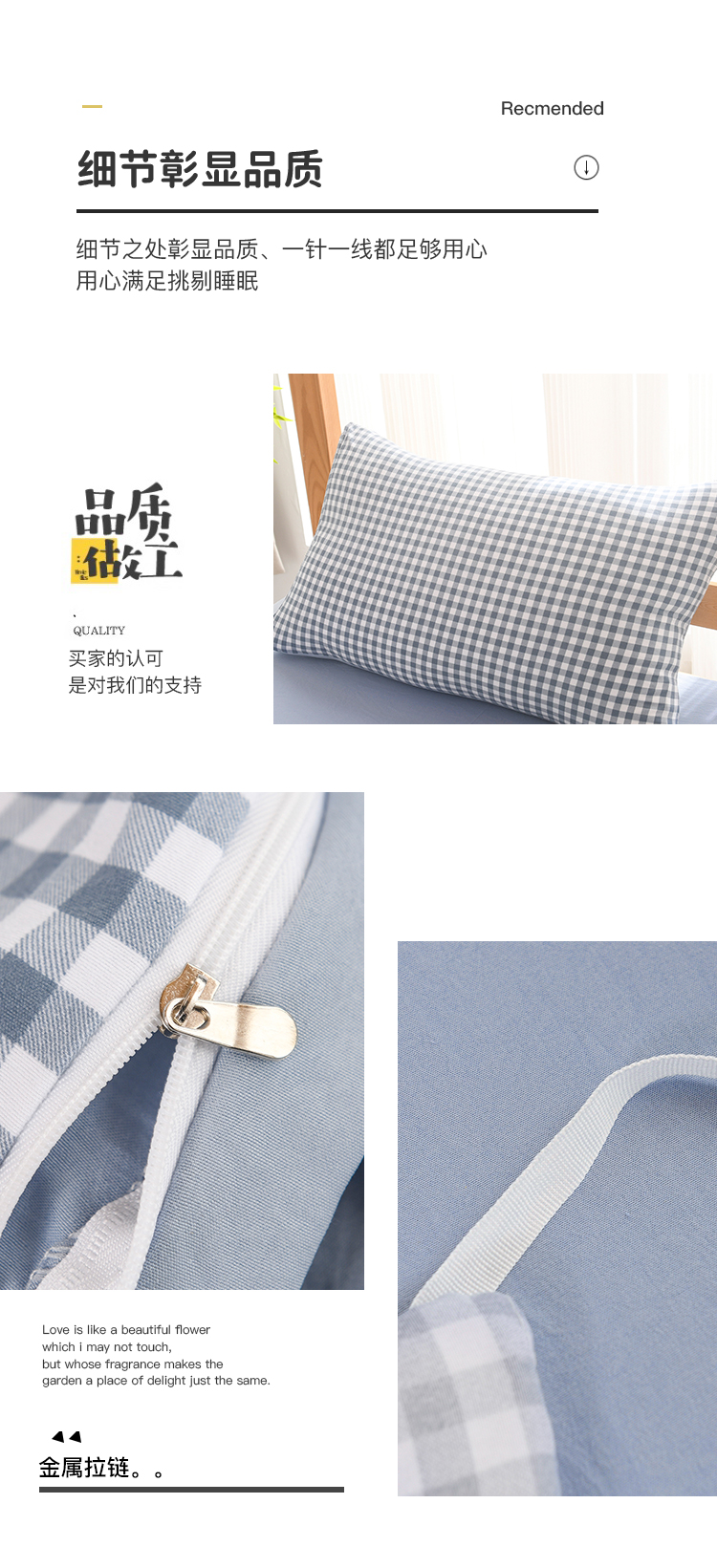 商品名称:(总)2025新款简约无印风水洗棉四件套单双人被套日式格子床单被套三件套