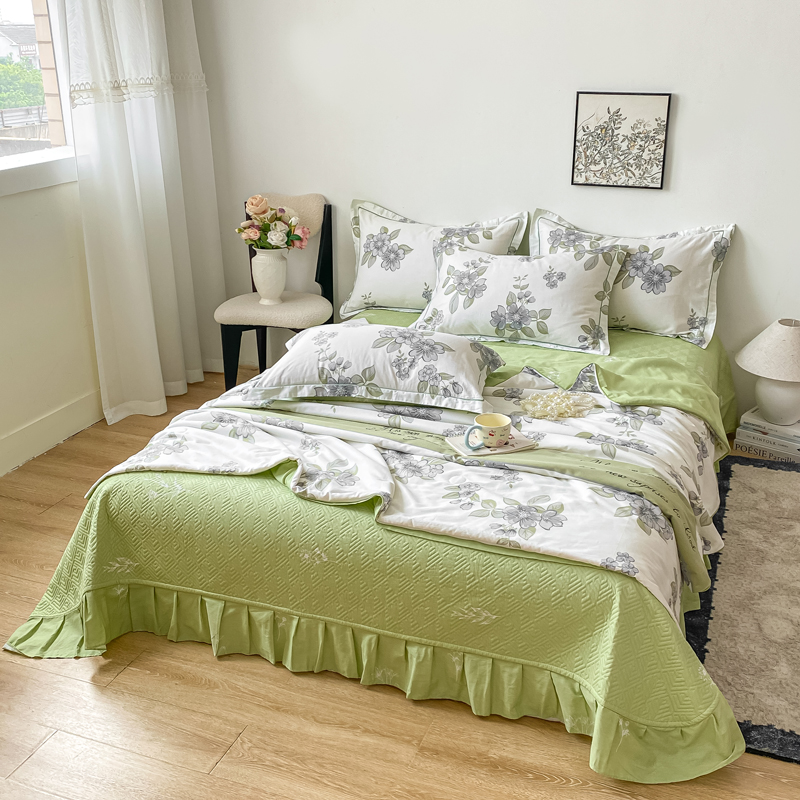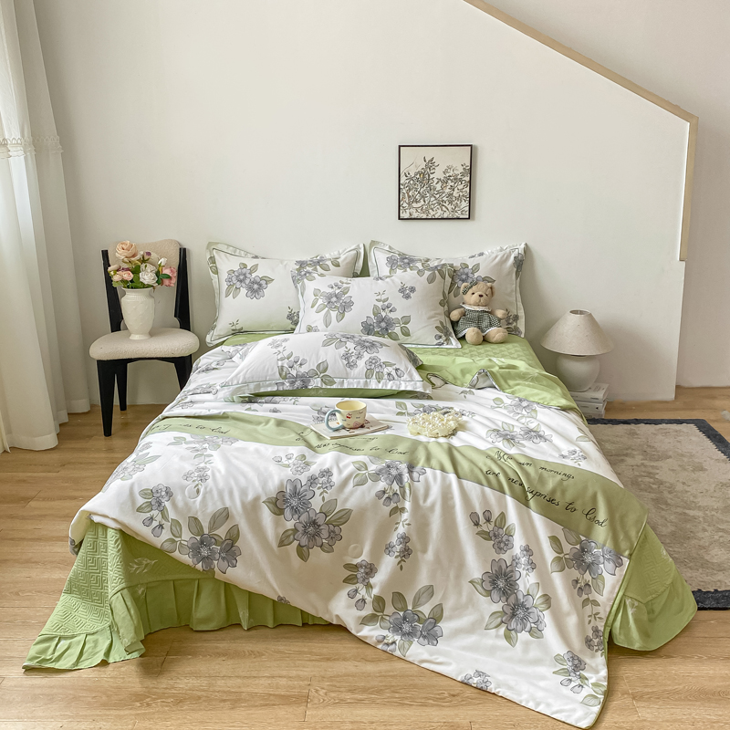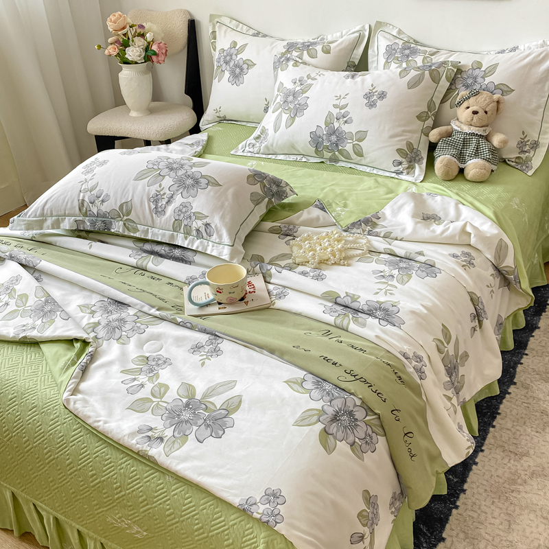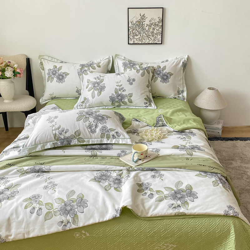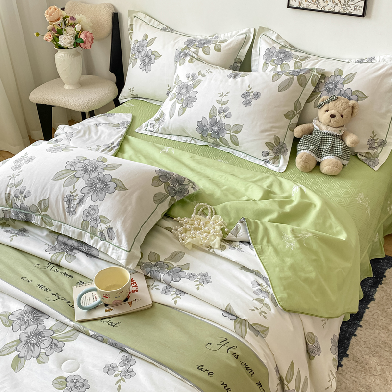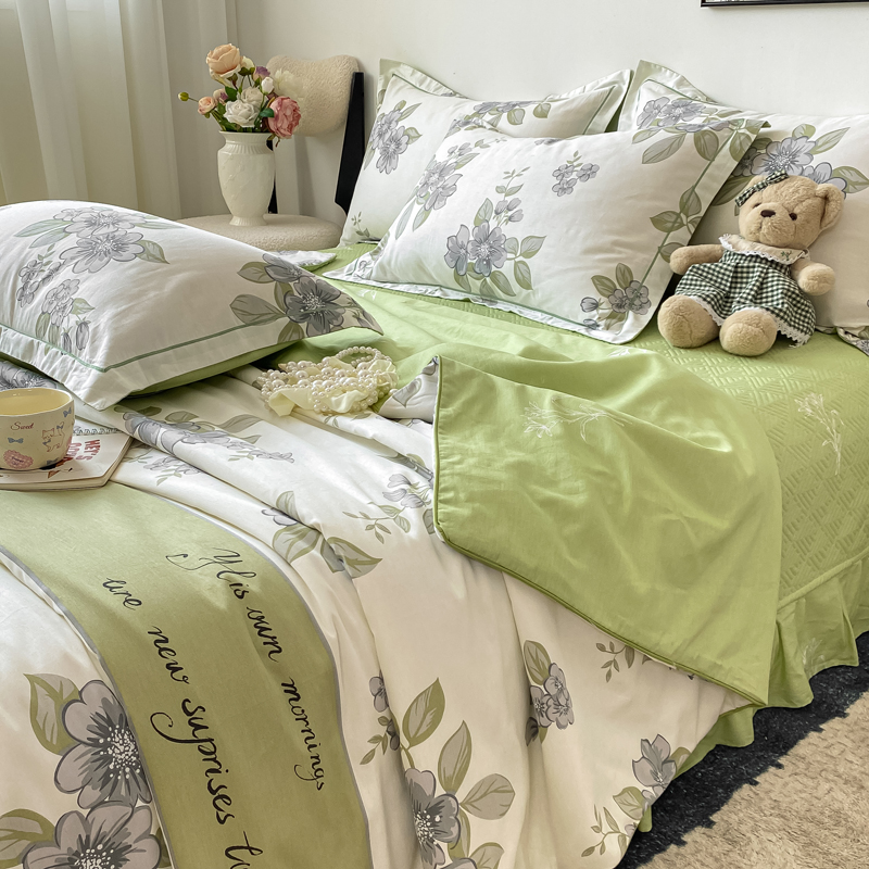 商品名称:富之航家纺 2025新款全棉印花床盖四件套 青雾蕊