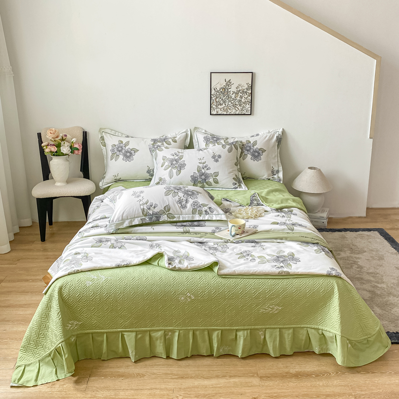 富之航家纺 2025新款全棉印花床盖四件套 青雾蕊