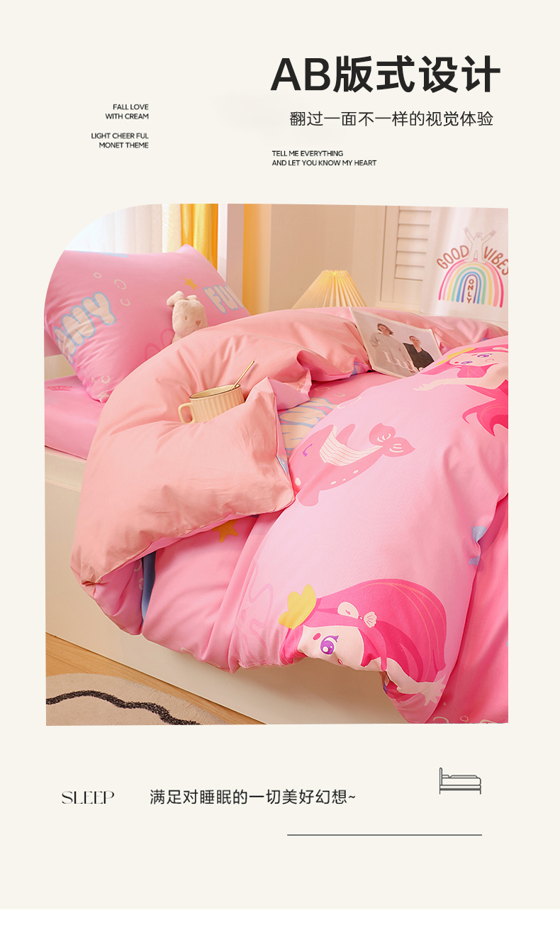 当前位置: 91家纺网 > 商品网购 > 床品套件 > 四件套 > 全棉普通四件套 > 金鑫汇家纺 2025新款印花花型-学生上下铺三件套 小美人鱼