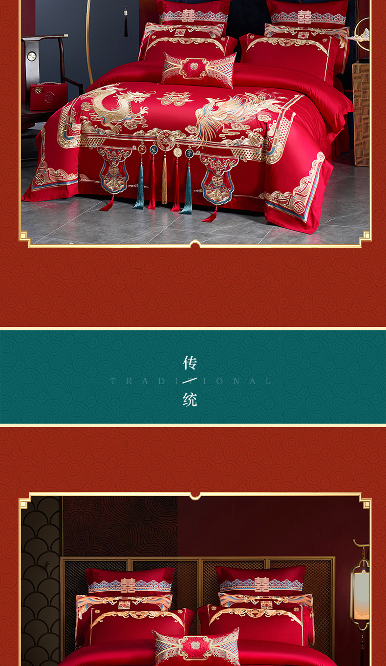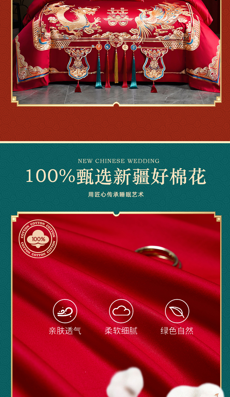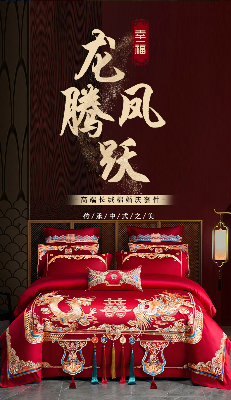 当前位置: 91家纺网 > 商品网购 > 床品套件 > 多件套 > 多件套 > 用心 2025新款长绒棉刺绣新中式婚庆多件套系列 龙腾凤跃