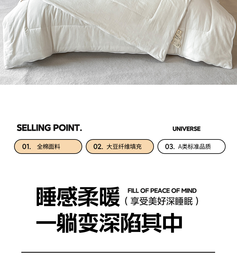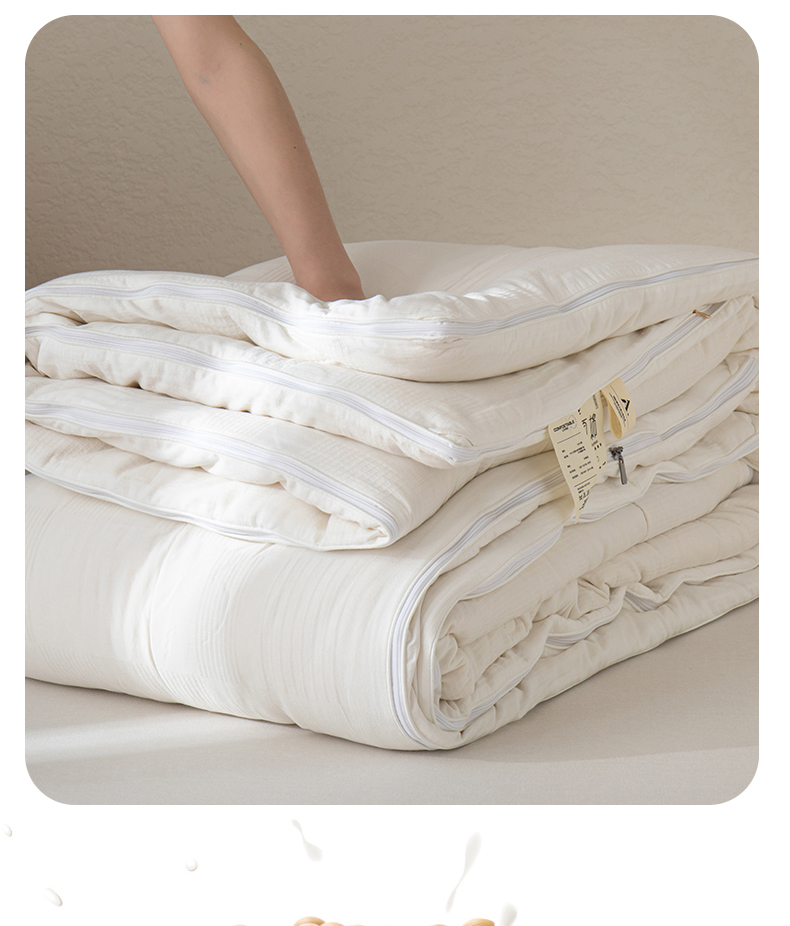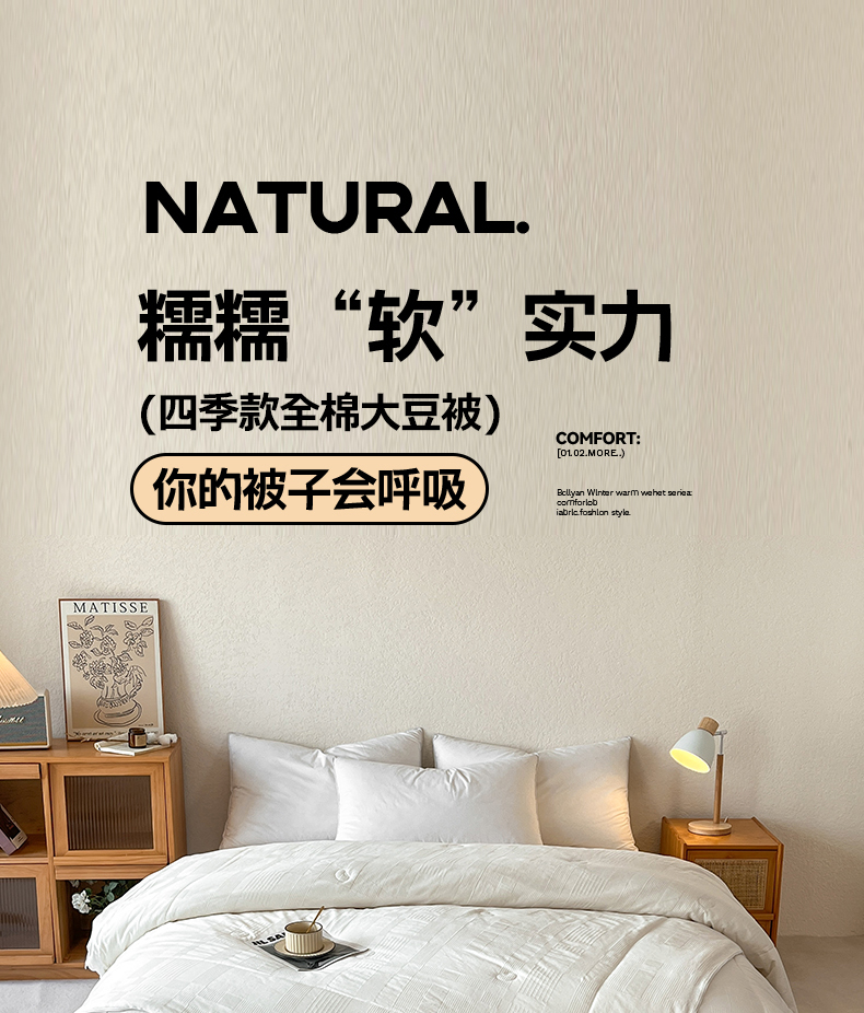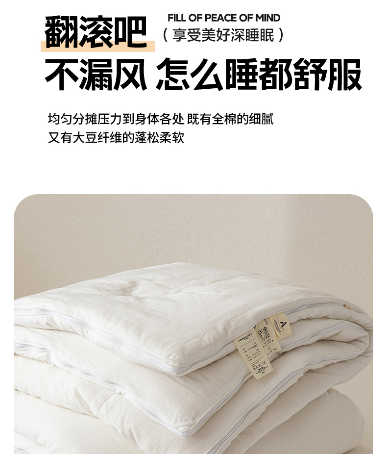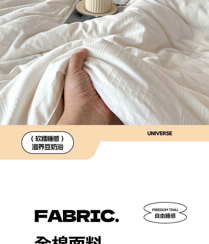 • 91家纺网 家纺一手货源 找家纺 鸣升家纺 2025新款四季款全棉大豆被 菽菽木兰-白