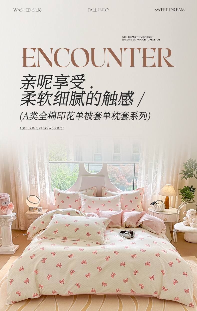 (总)芙绣家纺 2025新款A类全棉双层纱小清新印花单被套学生单被套单枕套,春风里,繁花似锦,花间絮语,假日甜心猫-粉色,假日甜心猫-米白,漫天心,蔷薇梦境,十里桃花,甜心格格,组合图仅供参考