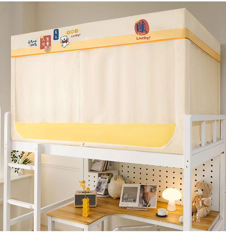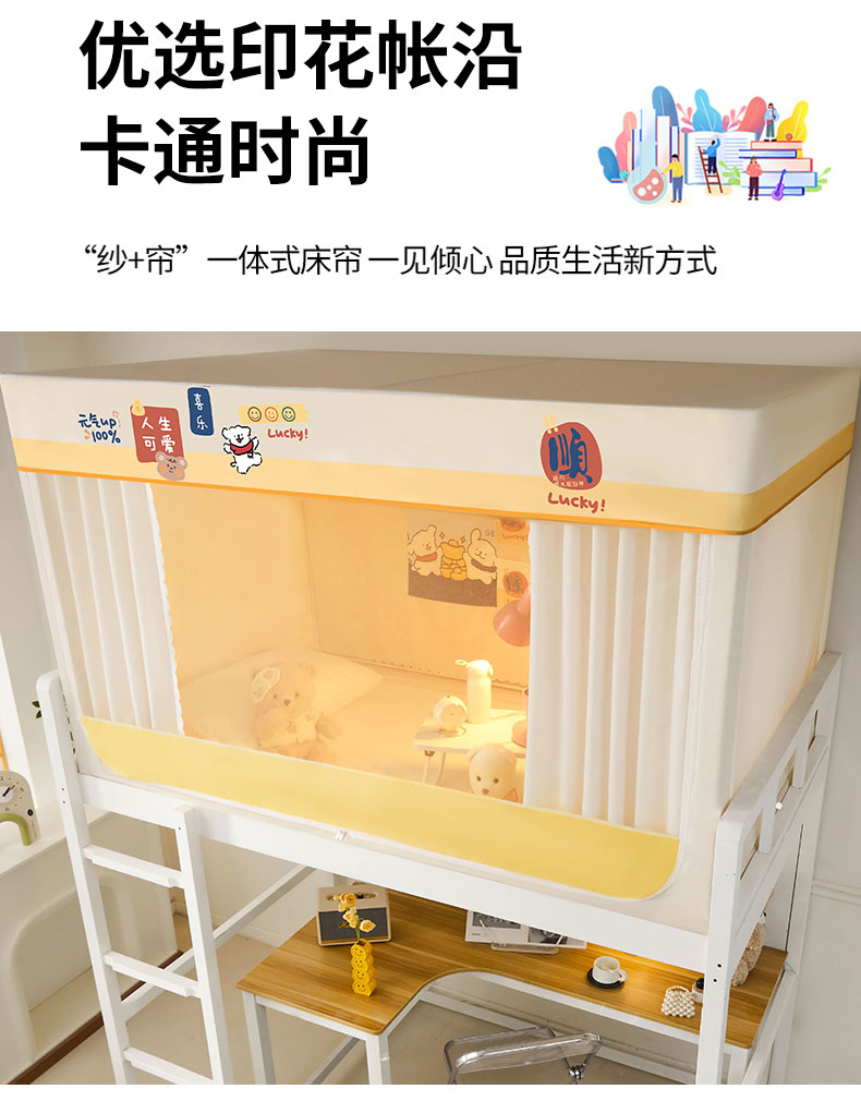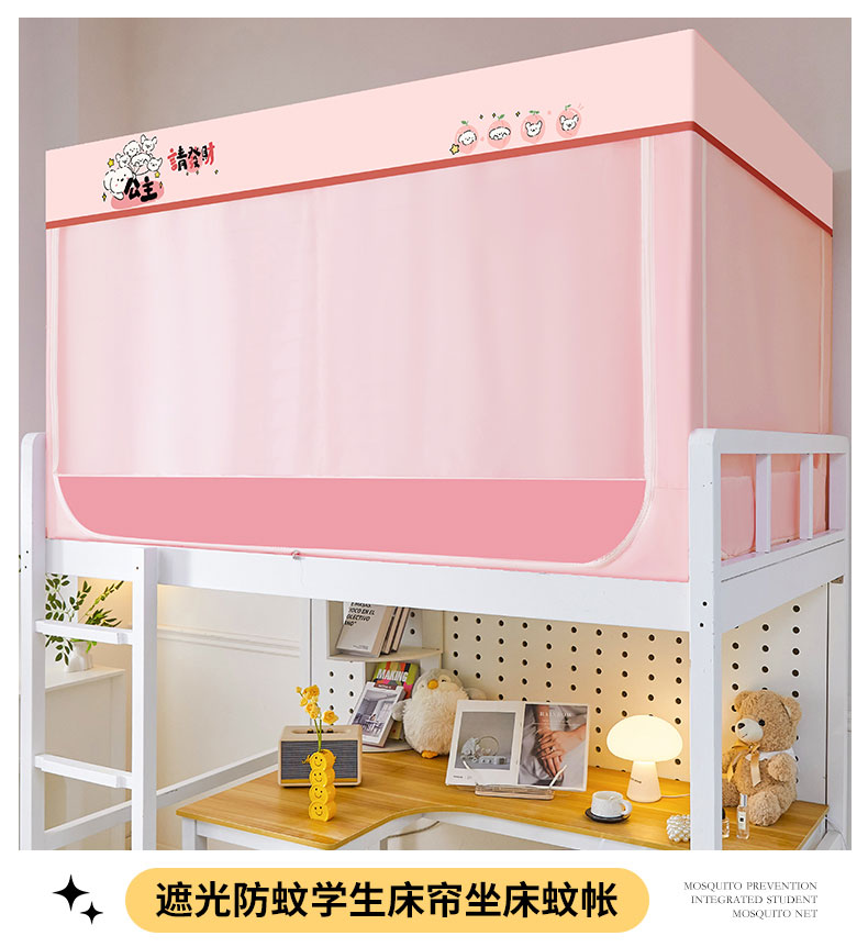 水妙家纺 2025新款加厚强遮光蚊账学生宿舍上下铺130克斜纹加厚床帘蚊账 公主请发财
