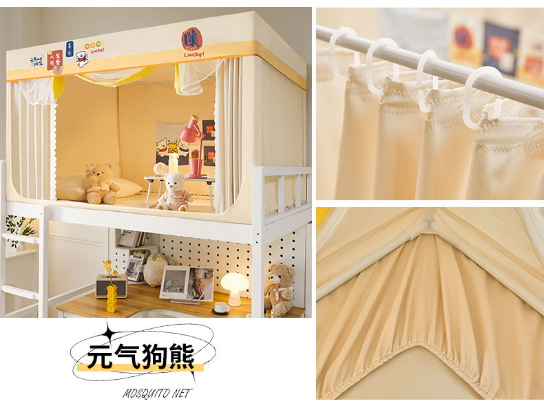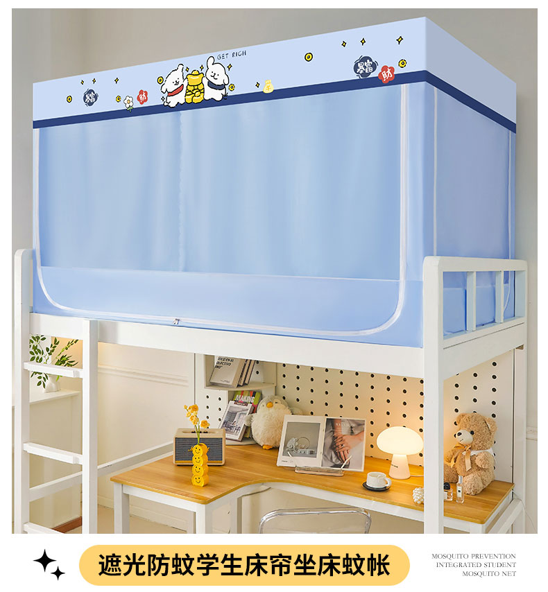 商品名称:水妙家纺 2025新款加厚强遮光蚊账学生宿舍上下铺130克斜纹加厚床帘蚊账 公主请发财