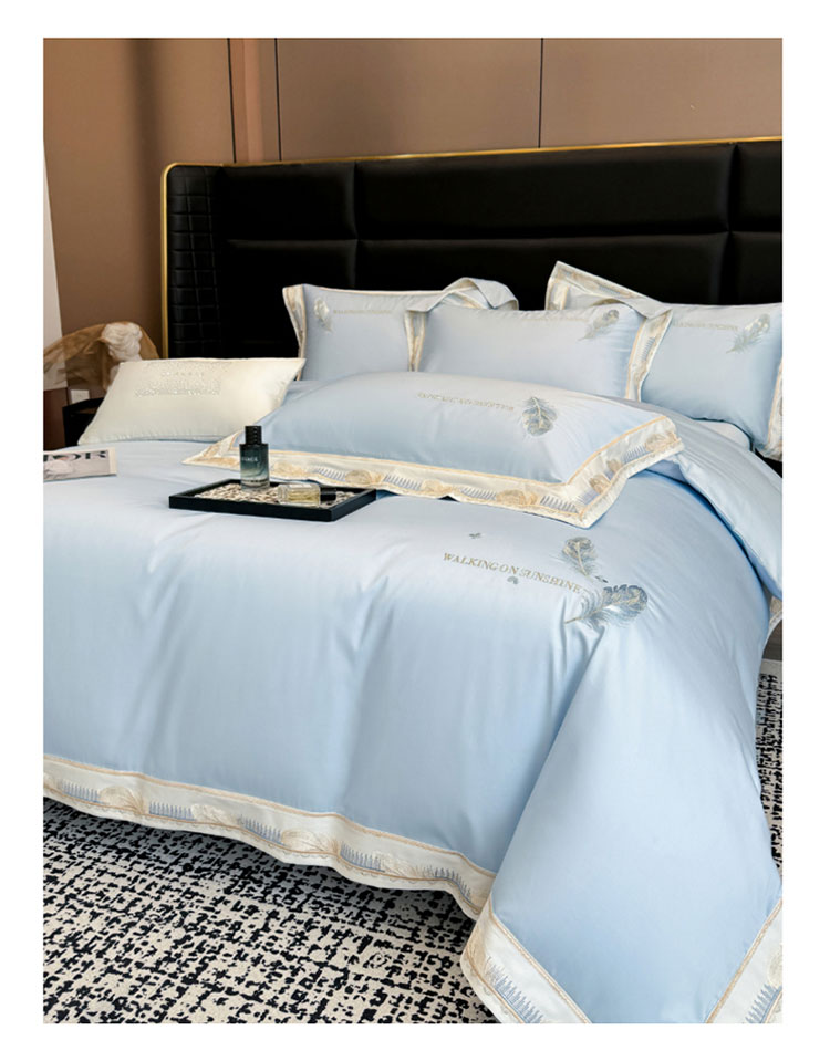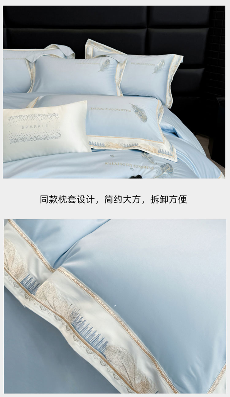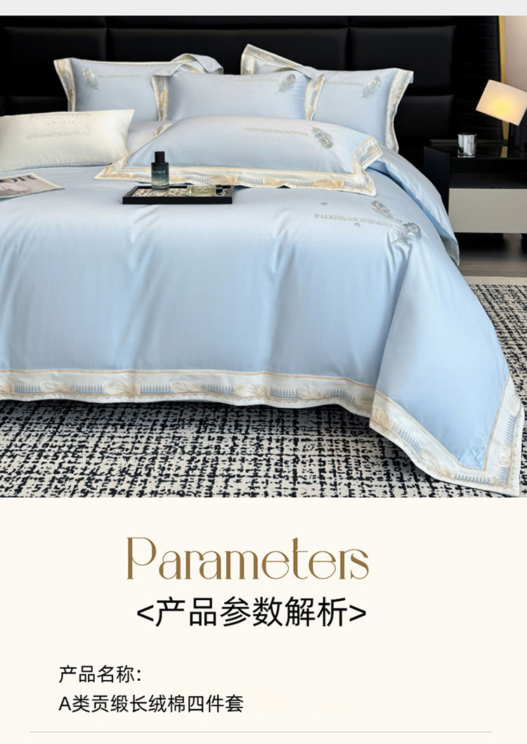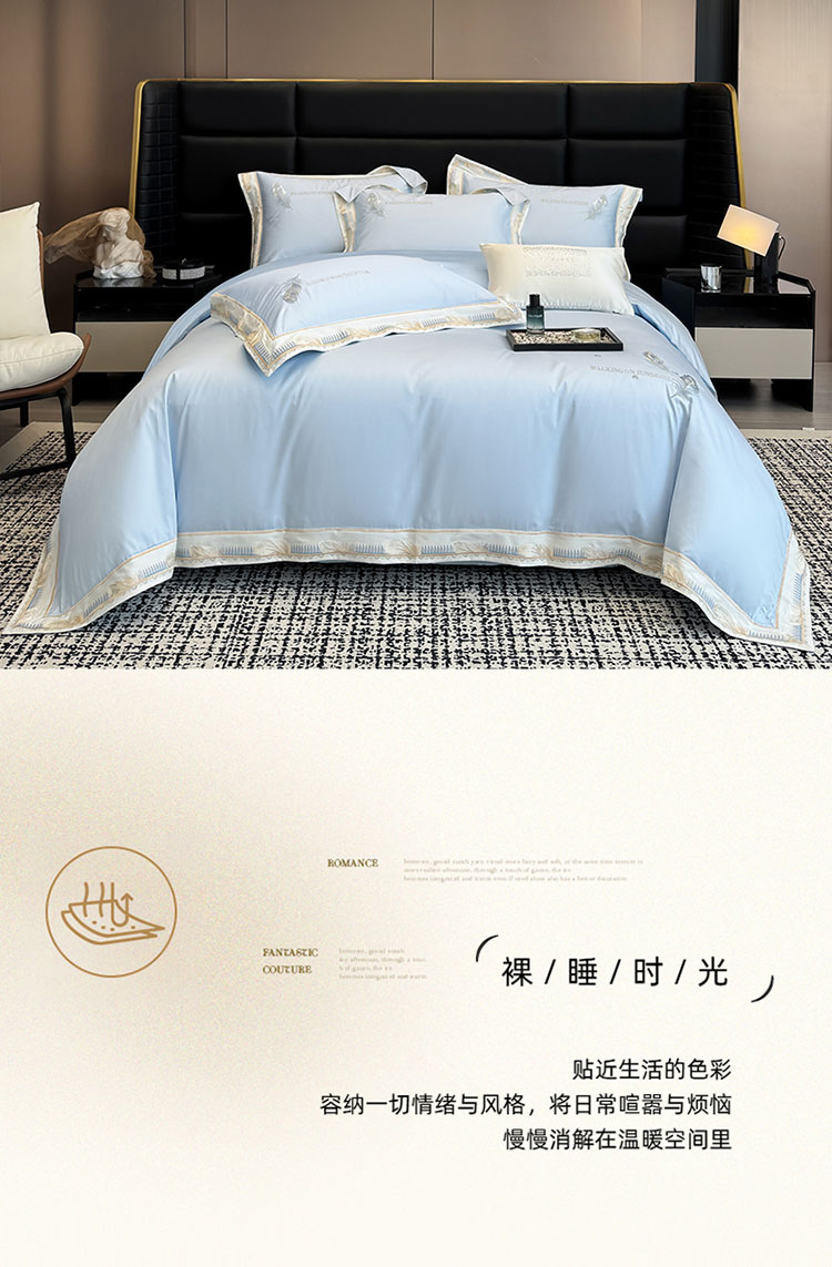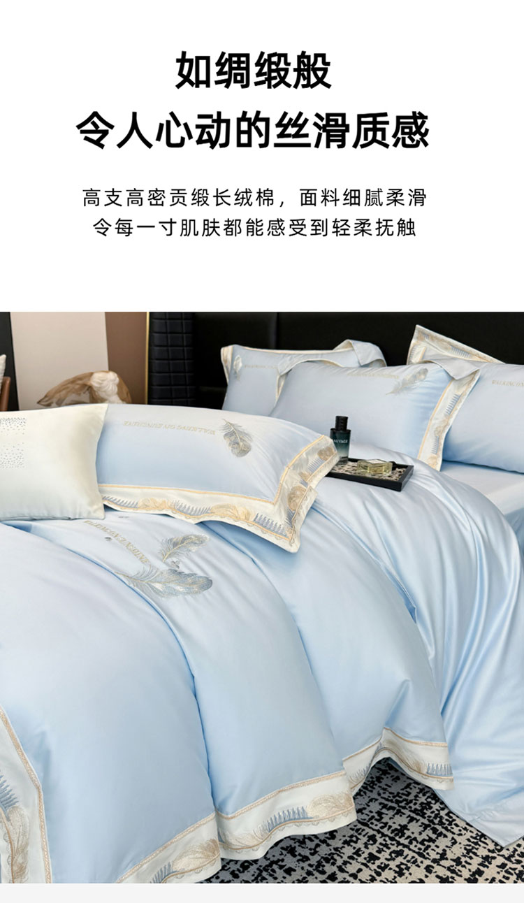 当前位置: 91家纺网 > 商品网购 > 床品套件 > 四件套 > 贡缎全棉四件套 > 高档礼盒装50*50S贡缎长绒棉刺绣四件套100%纯棉全棉床单床笠款量大价优 塞纳河畔-蓝-贡缎长绒棉