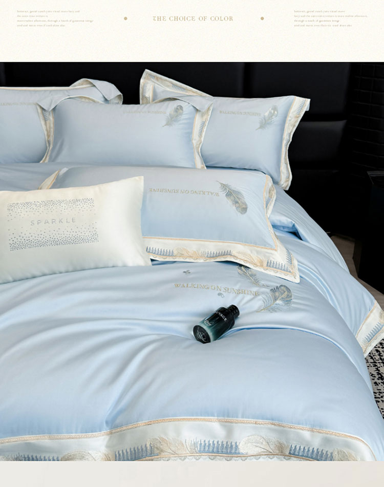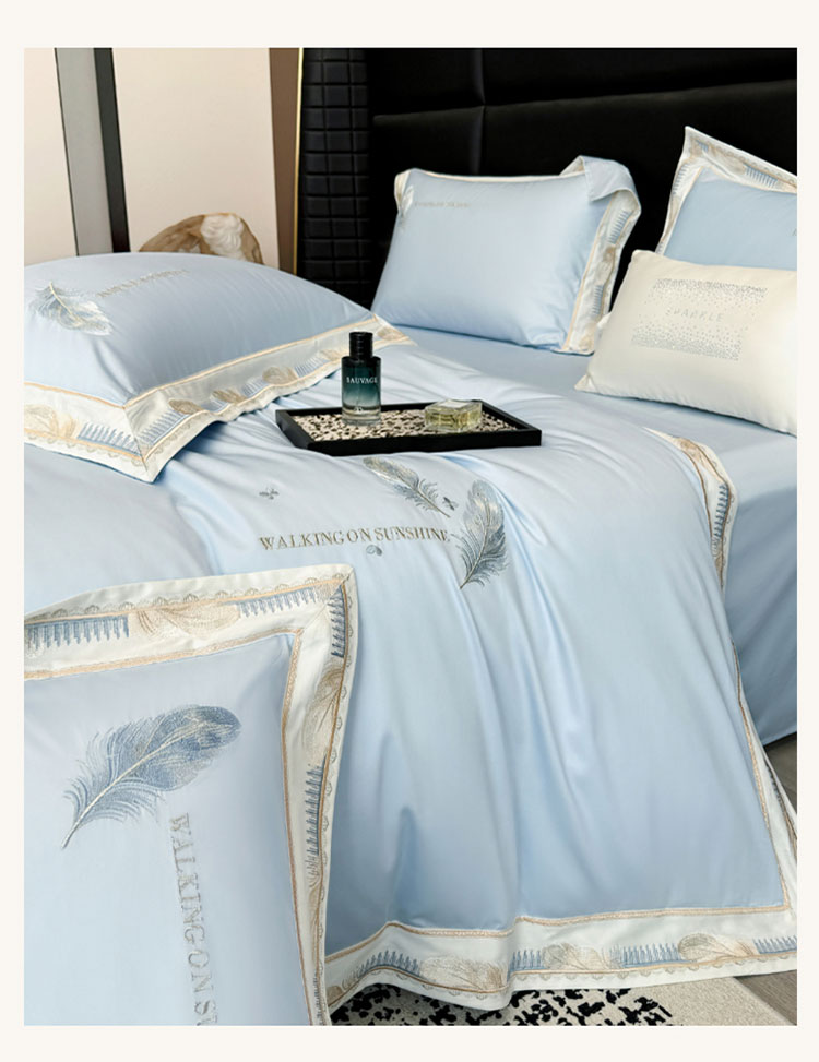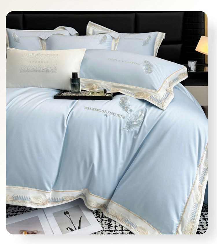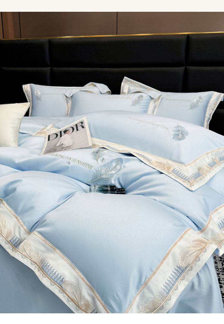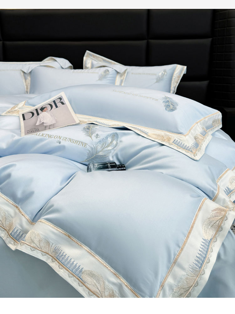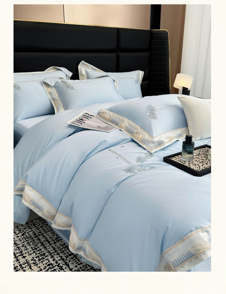 当前位置: 91家纺网 > 商品网购 > 床品套件 > 四件套 > 贡缎全棉四件套 > 高档礼盒装50*50S贡缎长绒棉刺绣四件套100%纯棉全棉床单床笠款量大价优 塞纳河畔-蓝-贡缎长绒棉