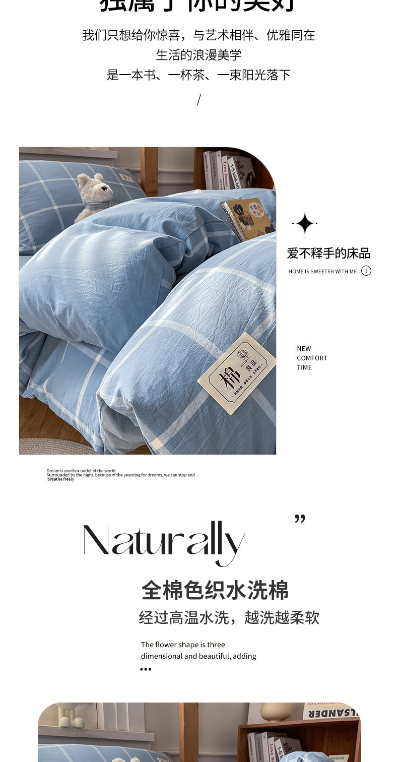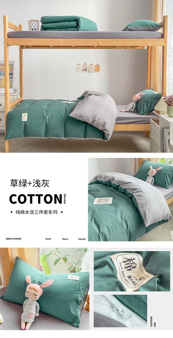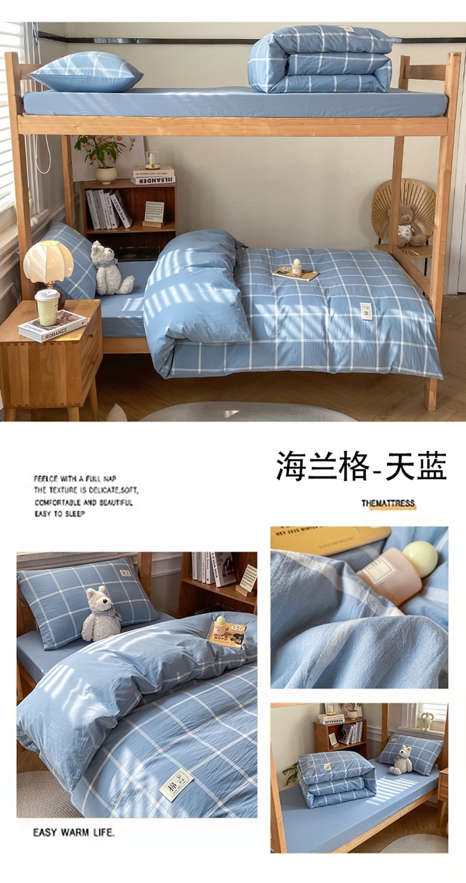 当前位置: 91家纺网 > 商品网购 > 床品套件 > 四件套 > 全棉普通四件套 > 恋人优选 2025新款全棉纯棉水洗棉(AB版)学生宿舍上下铺三件套-有标款 绿灰大格
