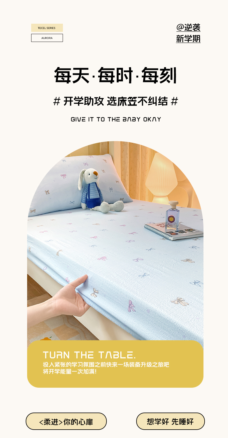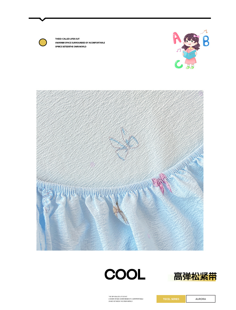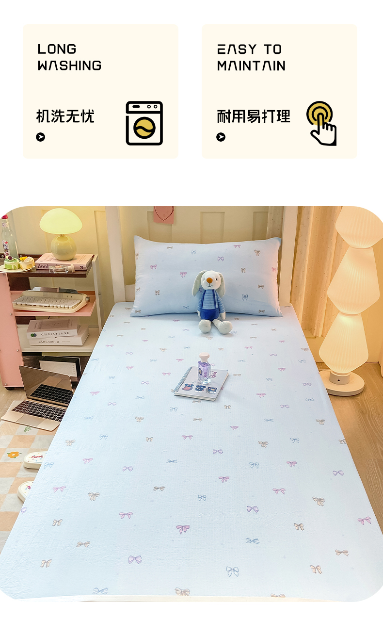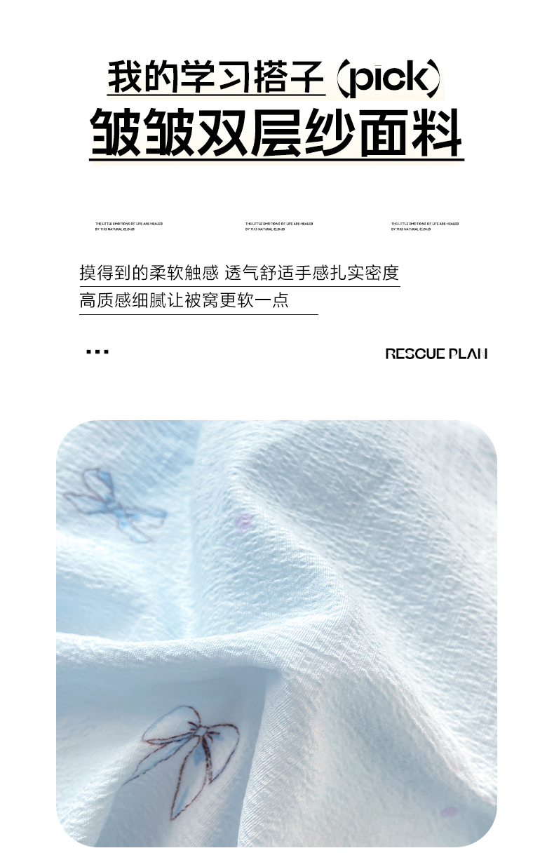 • 91家纺网 家纺一手货源 找家纺 眠势力 2025新款ins云感双层纱学生宿舍上下铺奶油风云感四季款单床笠床笠单件 蓝调蝴蝶结