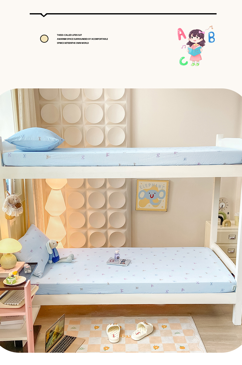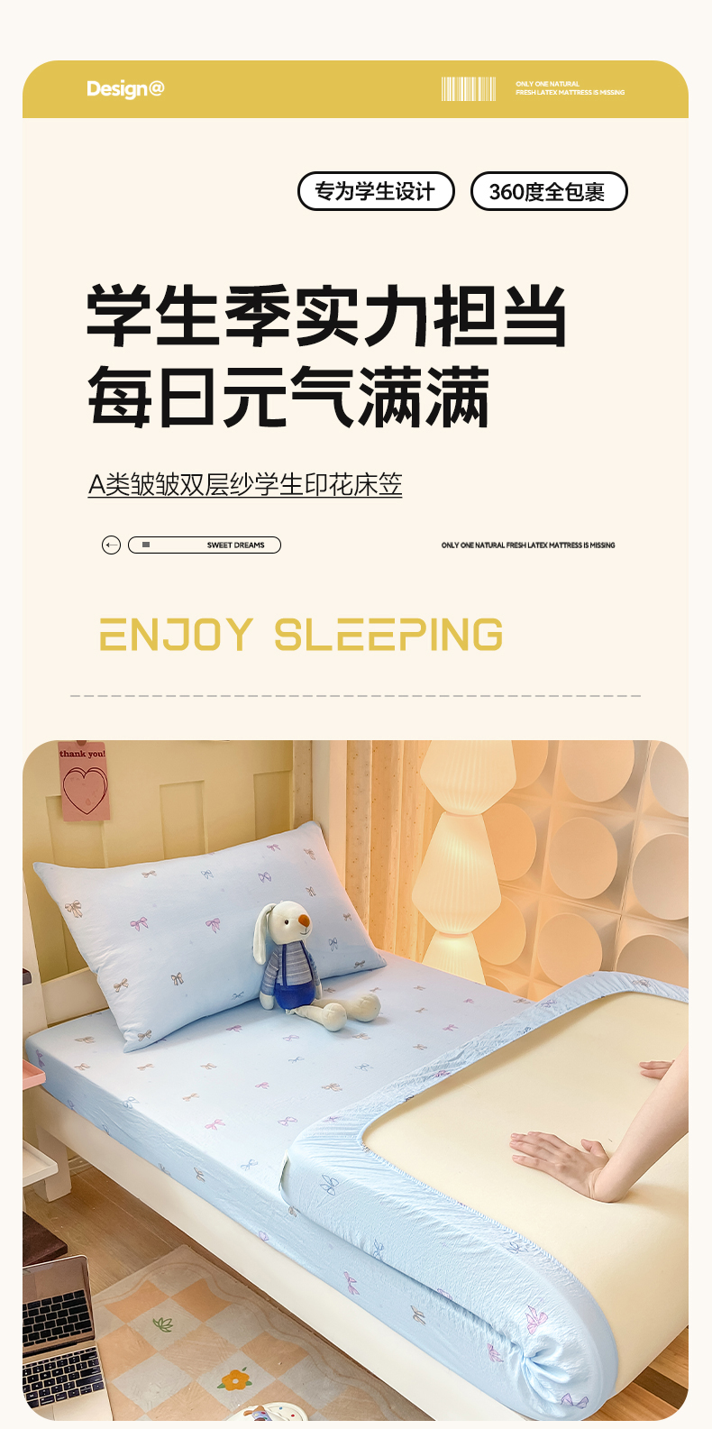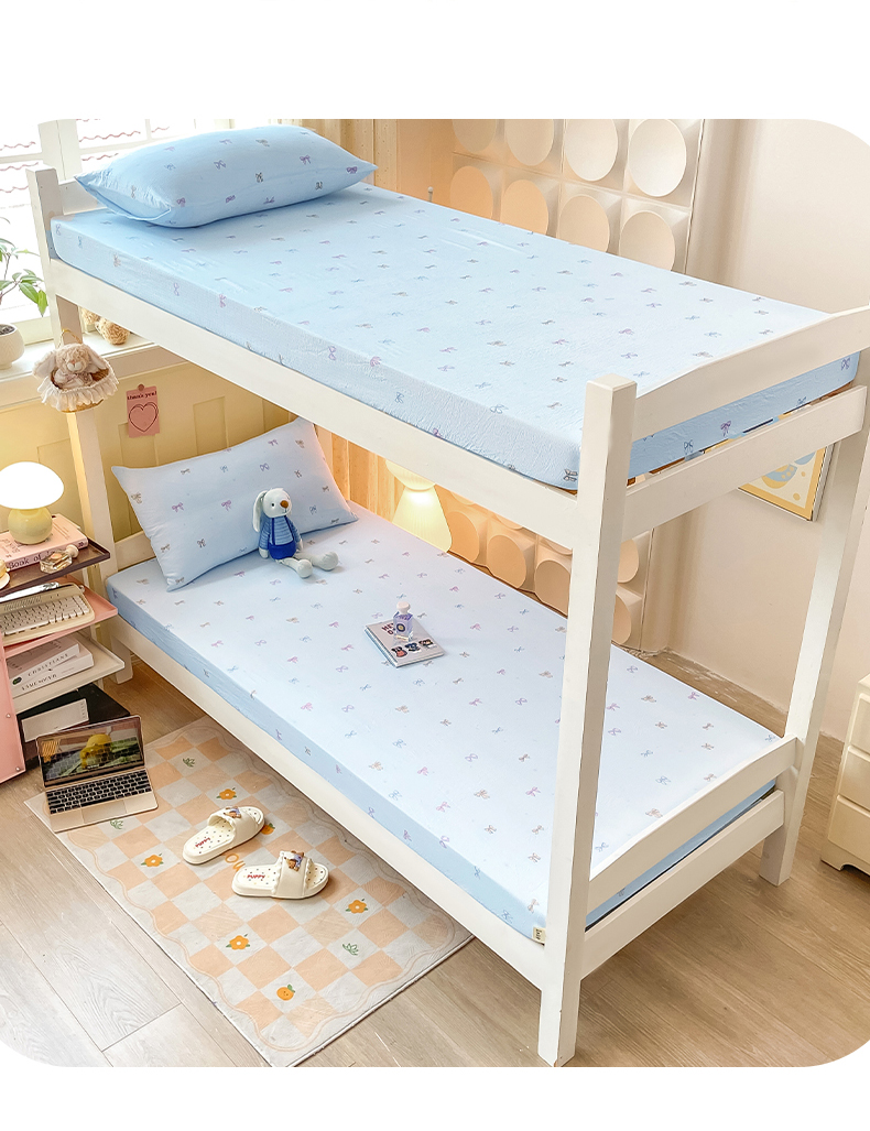 眠势力 2025新款ins云感双层纱学生宿舍上下铺奶油风云感四季款单床笠床笠单件 蓝调蝴蝶结