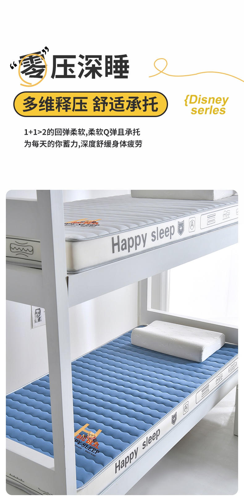 当前位置: 91家纺网 > 商品网购 > 床垫/床褥 > 普通床垫 > 缔莱(十三铭)被业 2025新款A类牛奶丝乳胶记忆抗压棉床垫-学生款 H熊--蓝-6cm