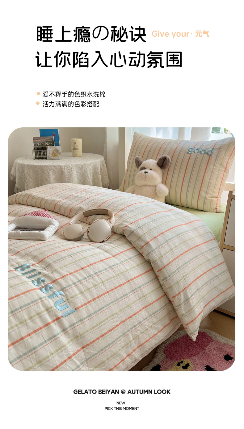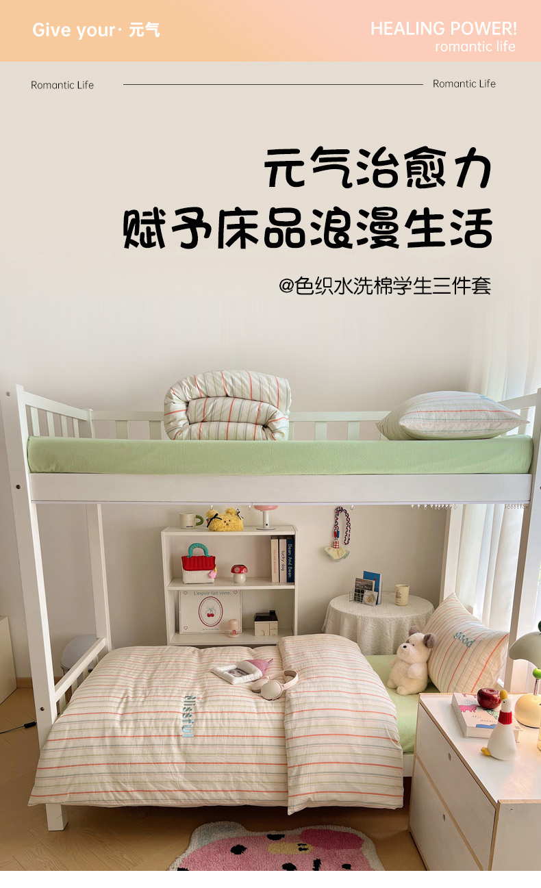 当前位置: 91家纺网 > 商品网购 > 床品套件 > 三件套 > 丽涵家纺 2025新款色织水洗棉刺绣学生三件套 韵律-绿