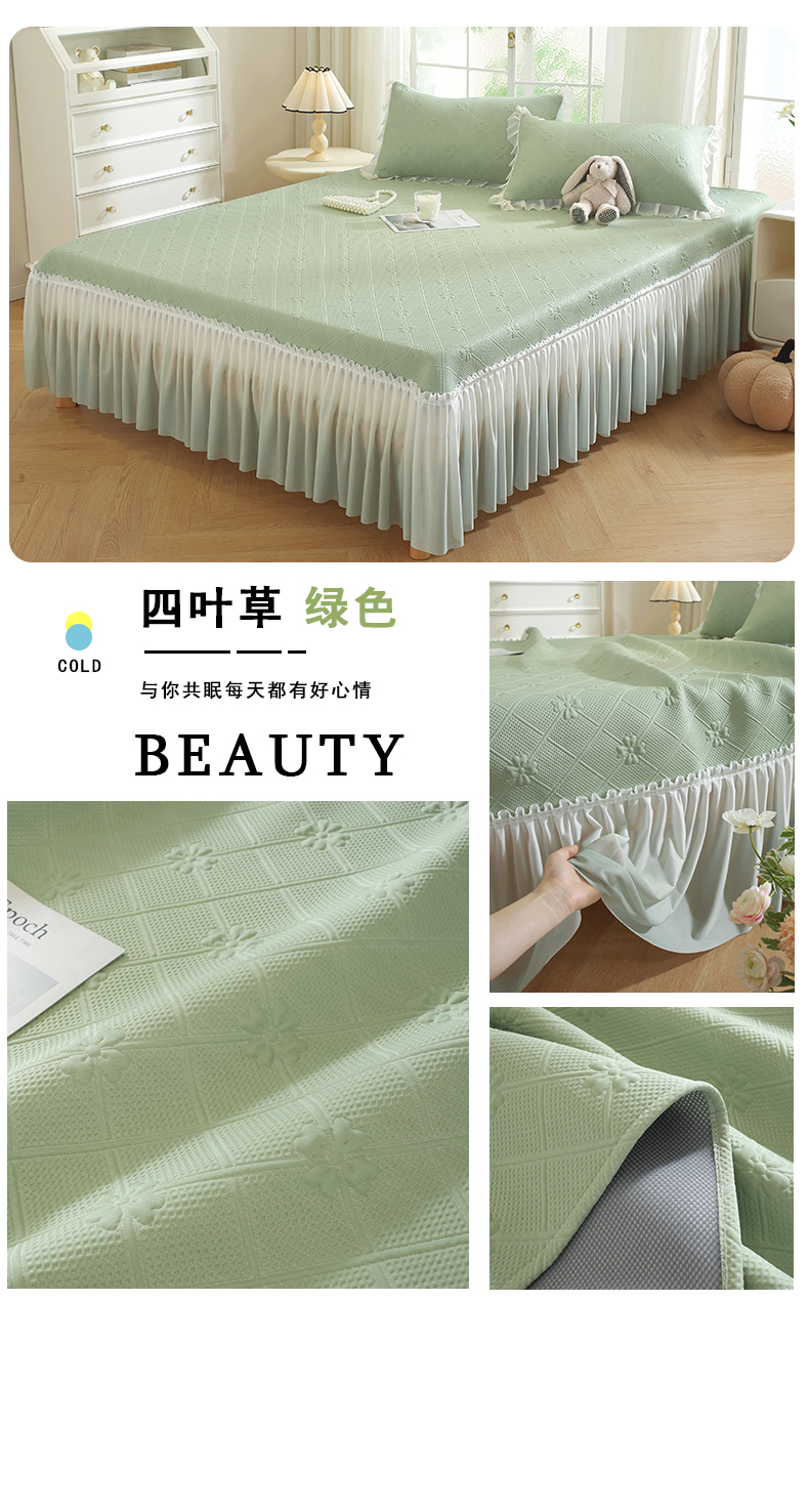 商品名称:共鸣沙发垫 2025新款凉感四叶草床裙款凉席席子 床裙四叶草粉色