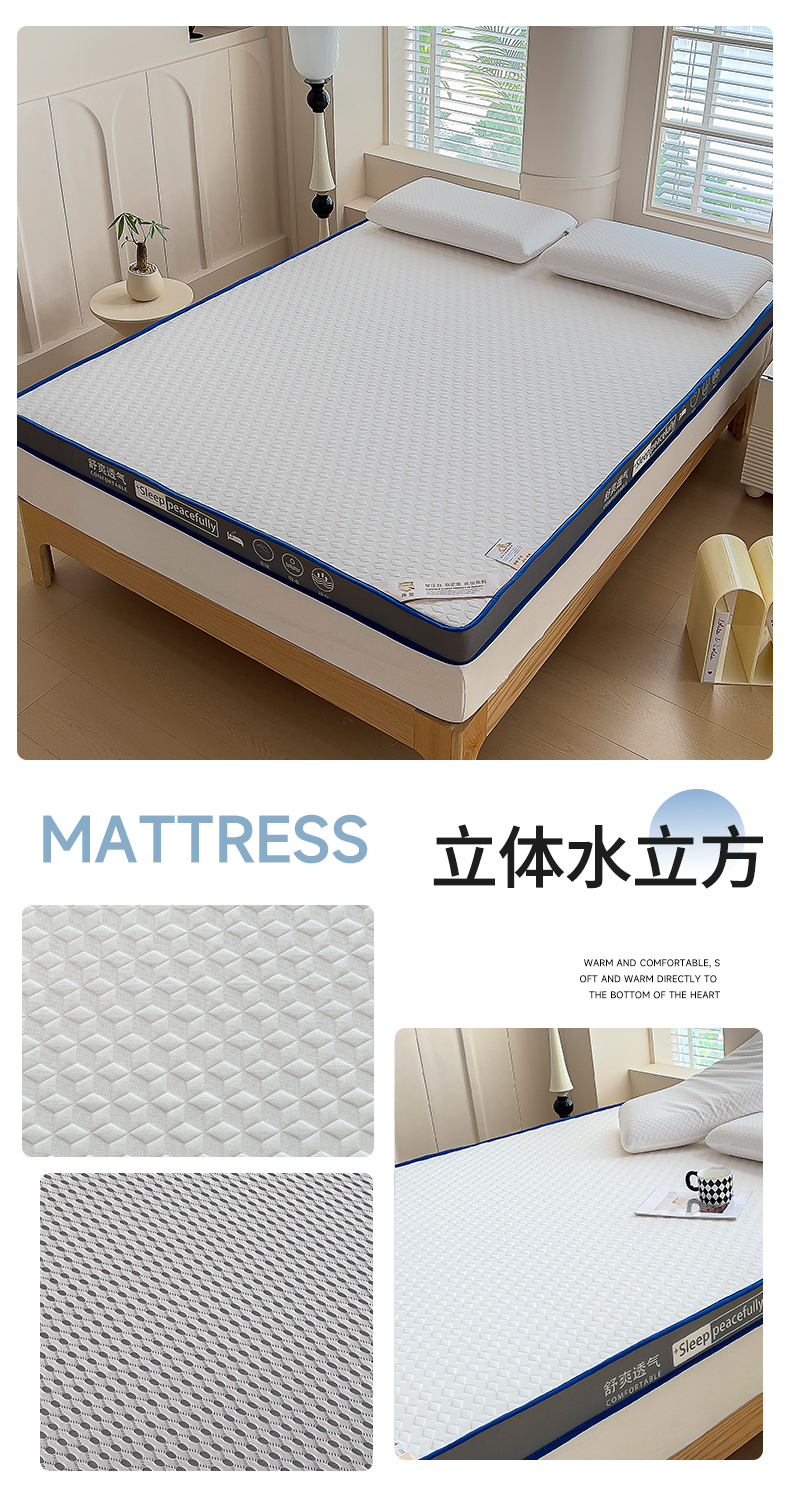 (总)MOA生态床垫 2025新款加厚海绵床垫卧室乳胶床垫学生宿舍记忆棉床垫,斜纹-白