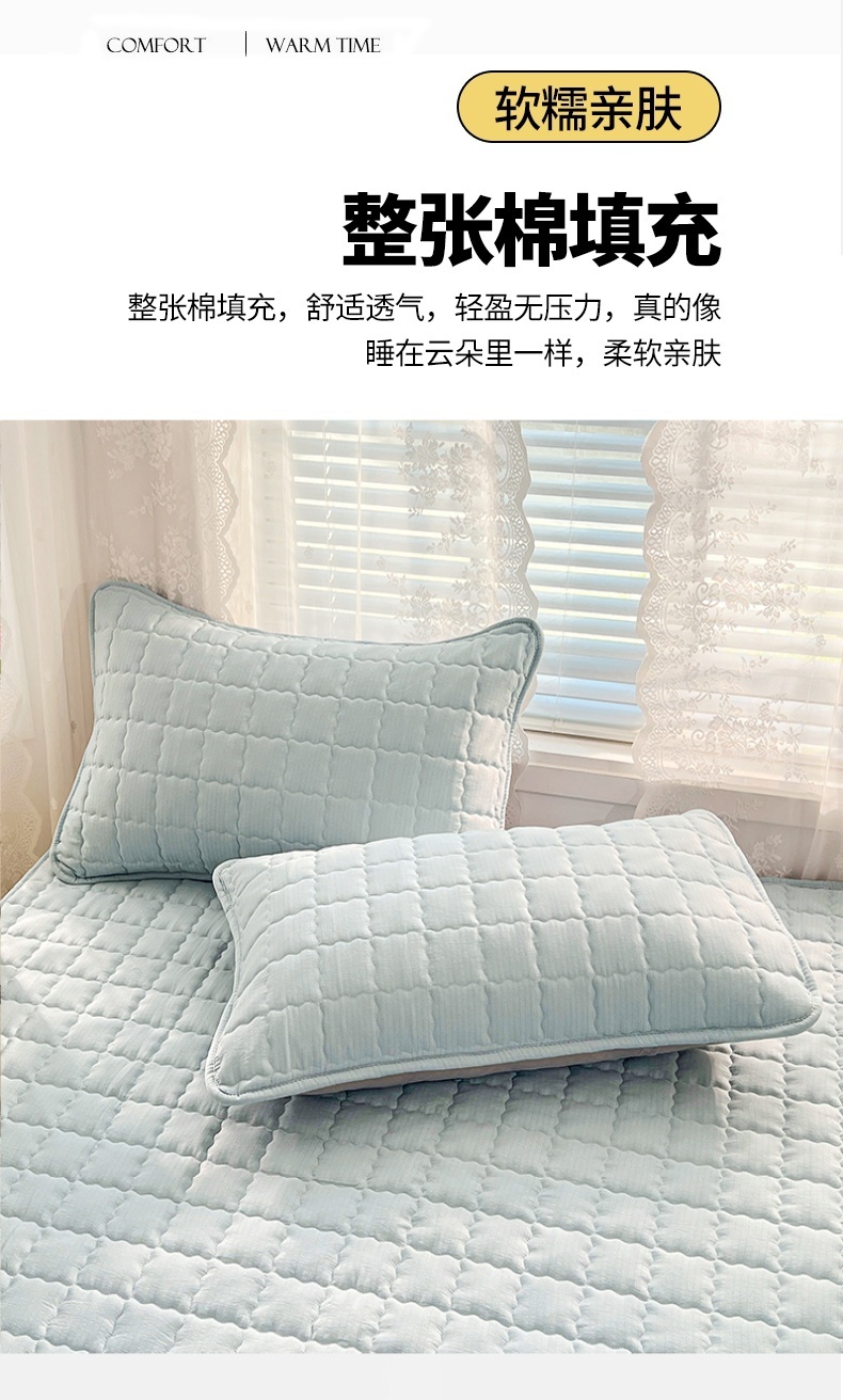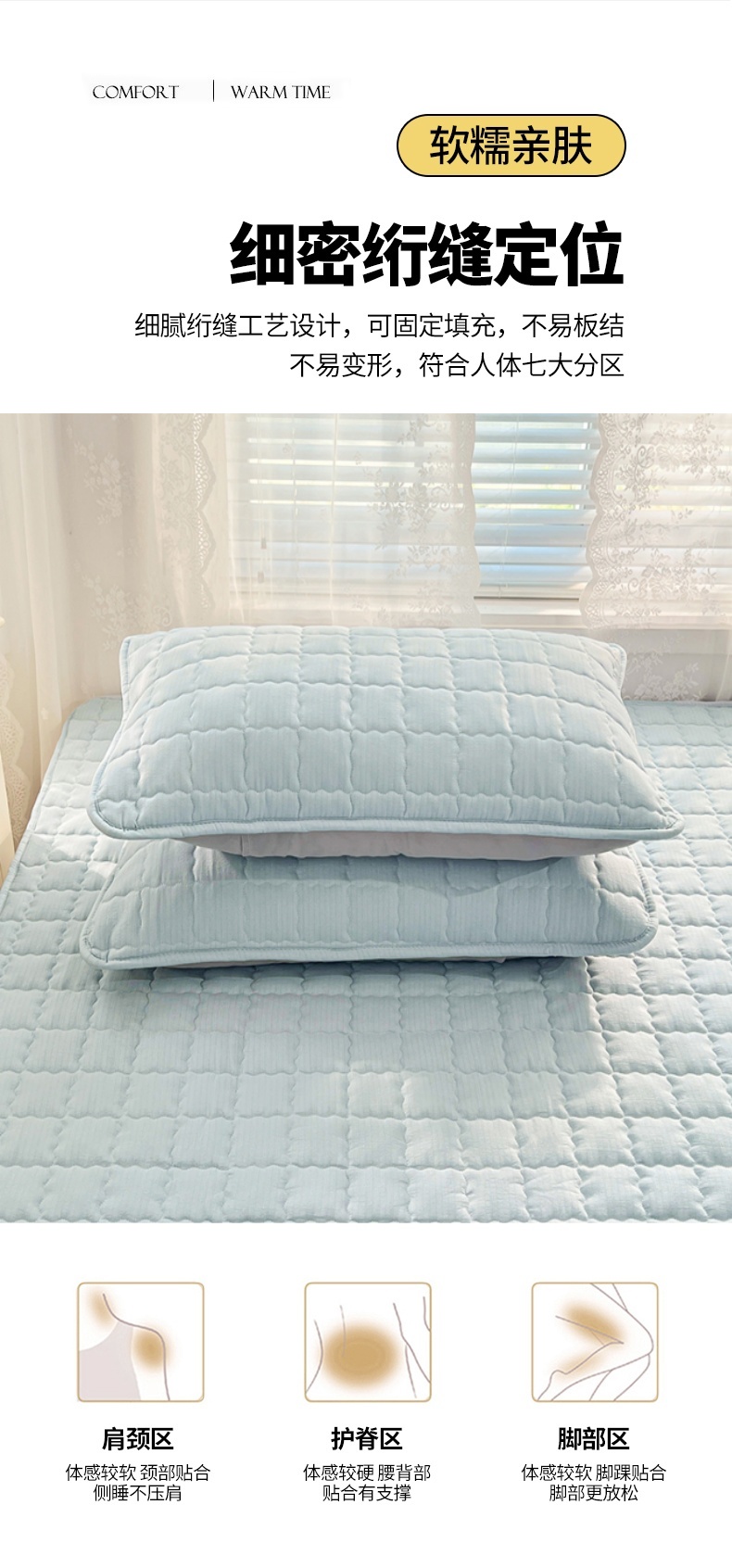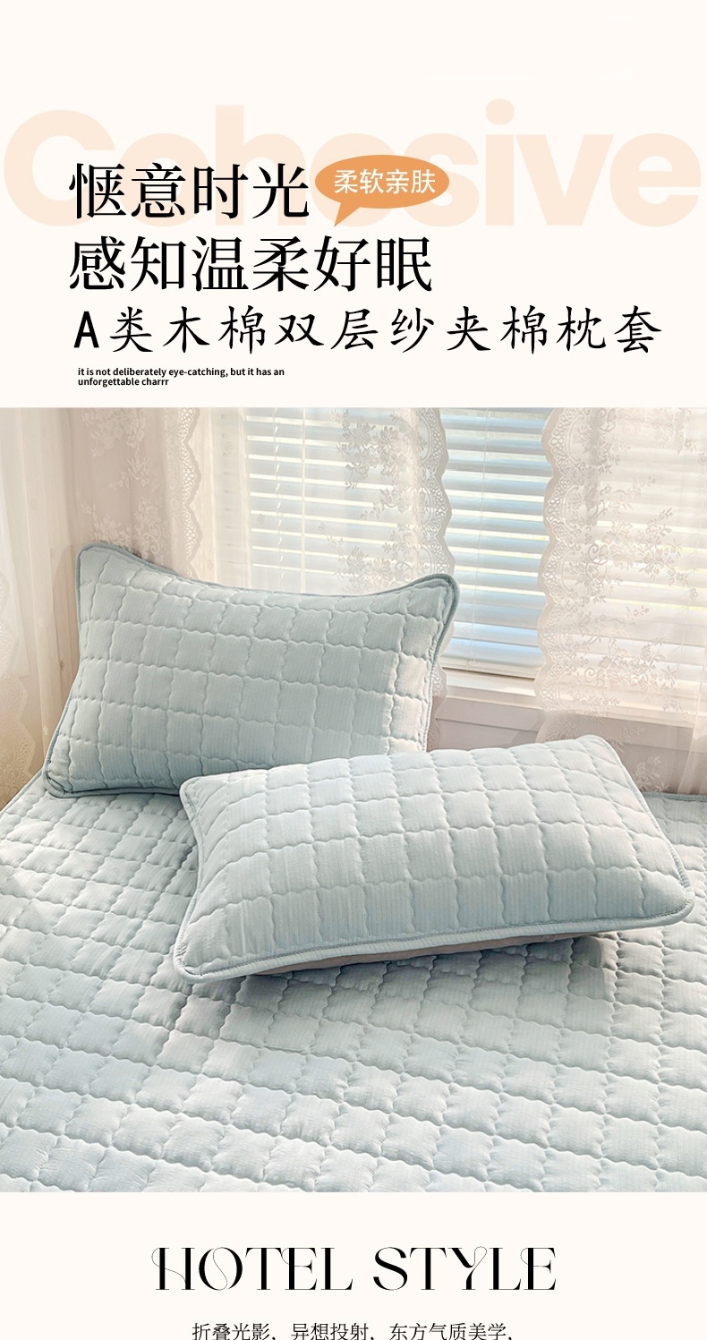 商品名称:梦舒羽 2025新款云感双层纱夹棉枕套宿舍单人枕芯套一对装加厚枕头套 夏日蓝