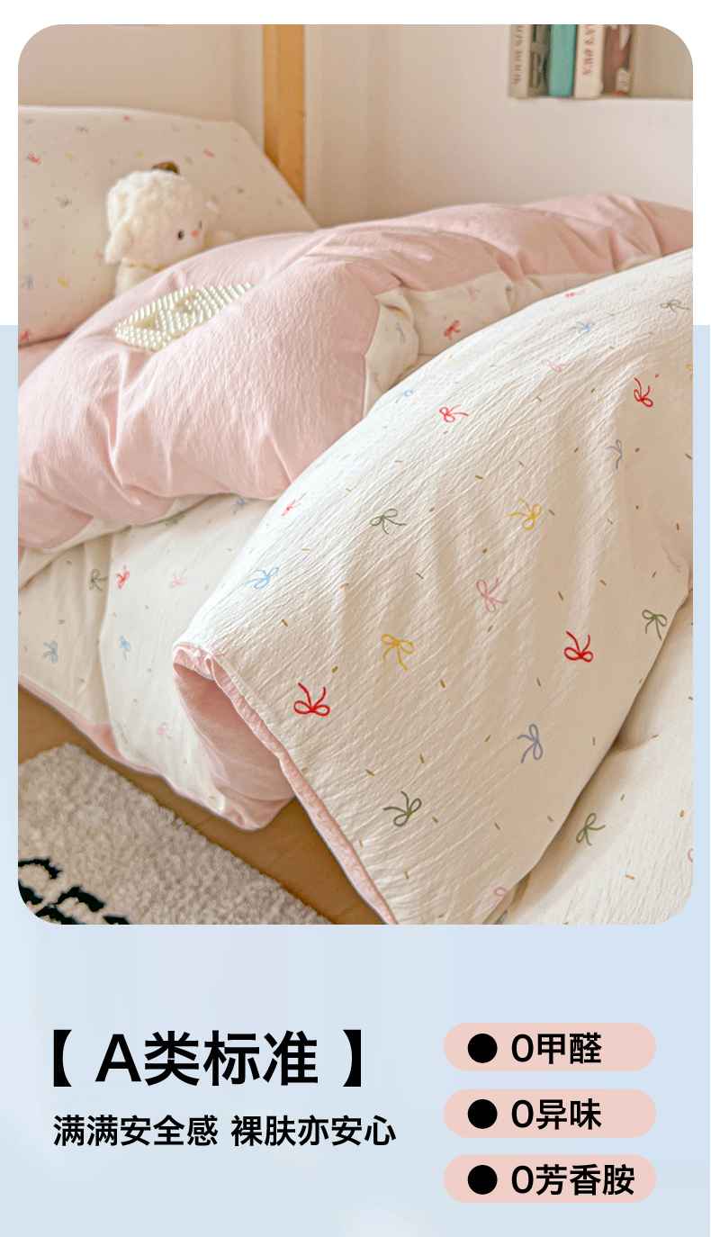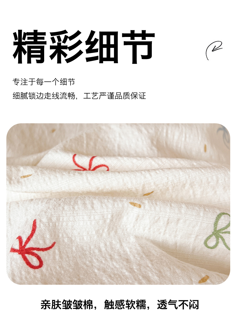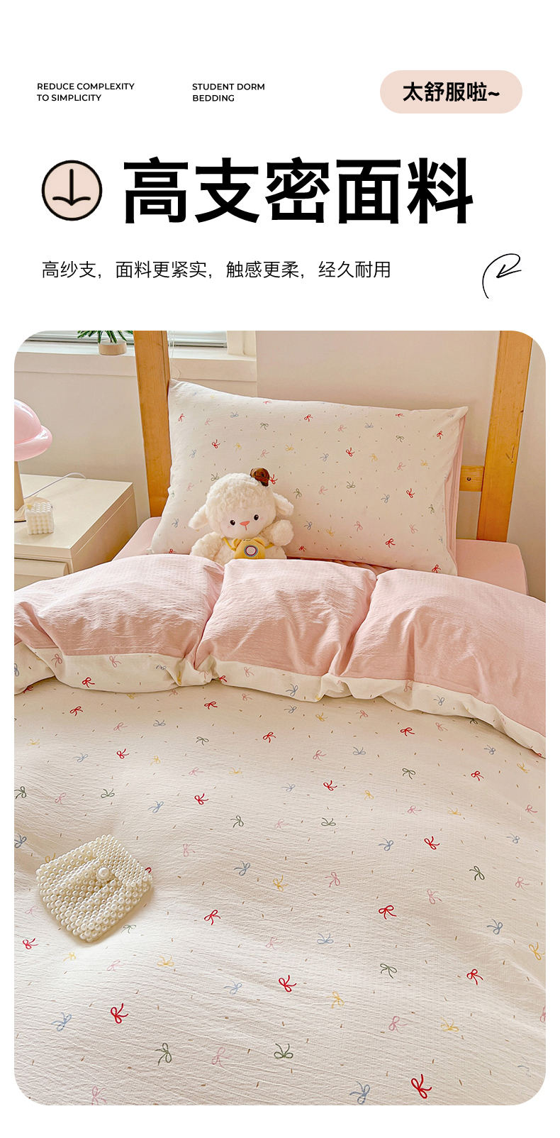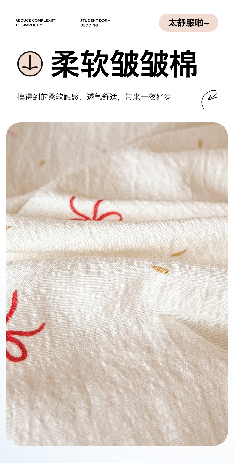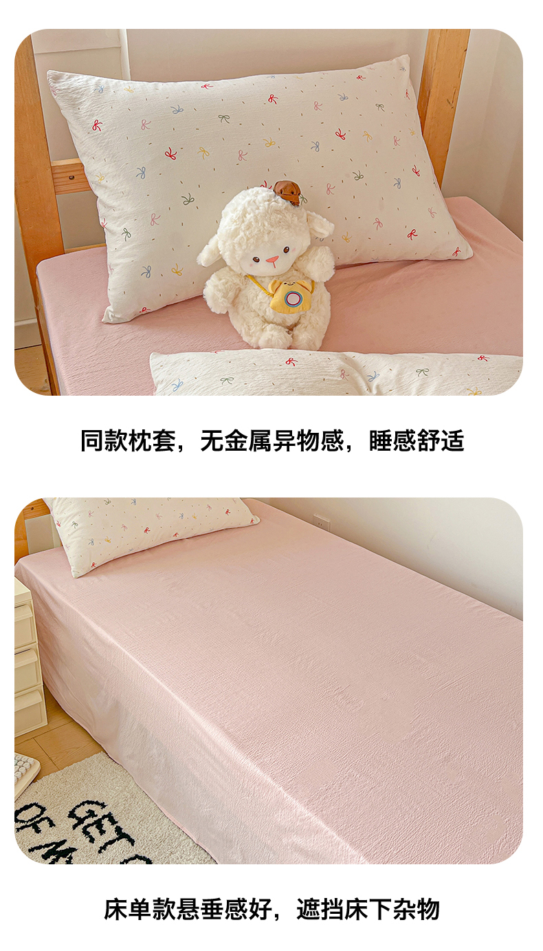 当前位置: 91家纺网 > 商品网购 > 床品套件 > 三件套 > 名兮家居 2025新款皱皱棉学生床宿舍上下铺三件套六件套 彩色蝴蝶结