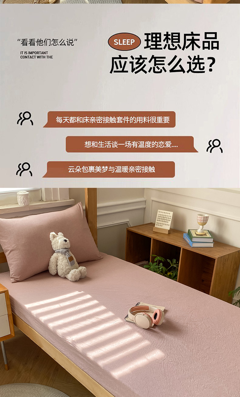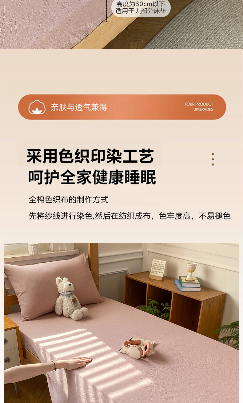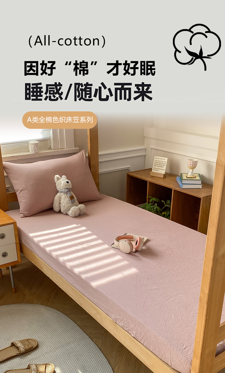• 91家纺网 家纺一手货源 找家纺 恋人优选 2025新款儿童学生宿舍上下铺全棉纯棉色织床笠单品单床笠床笠单件-无标款系列二 豆沙