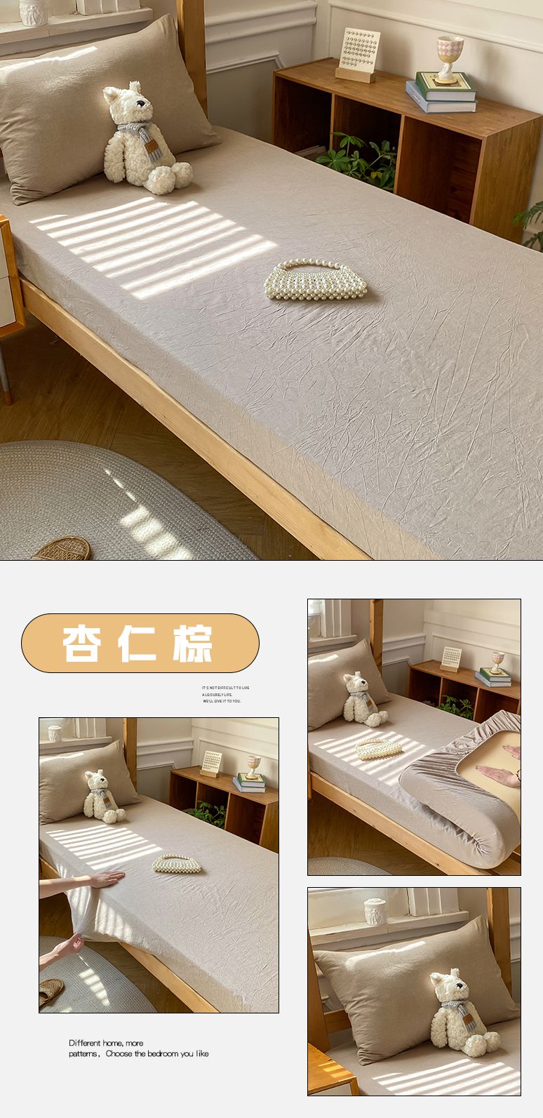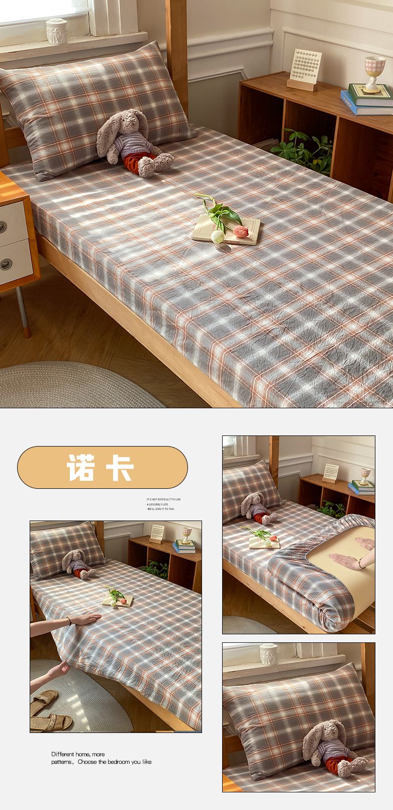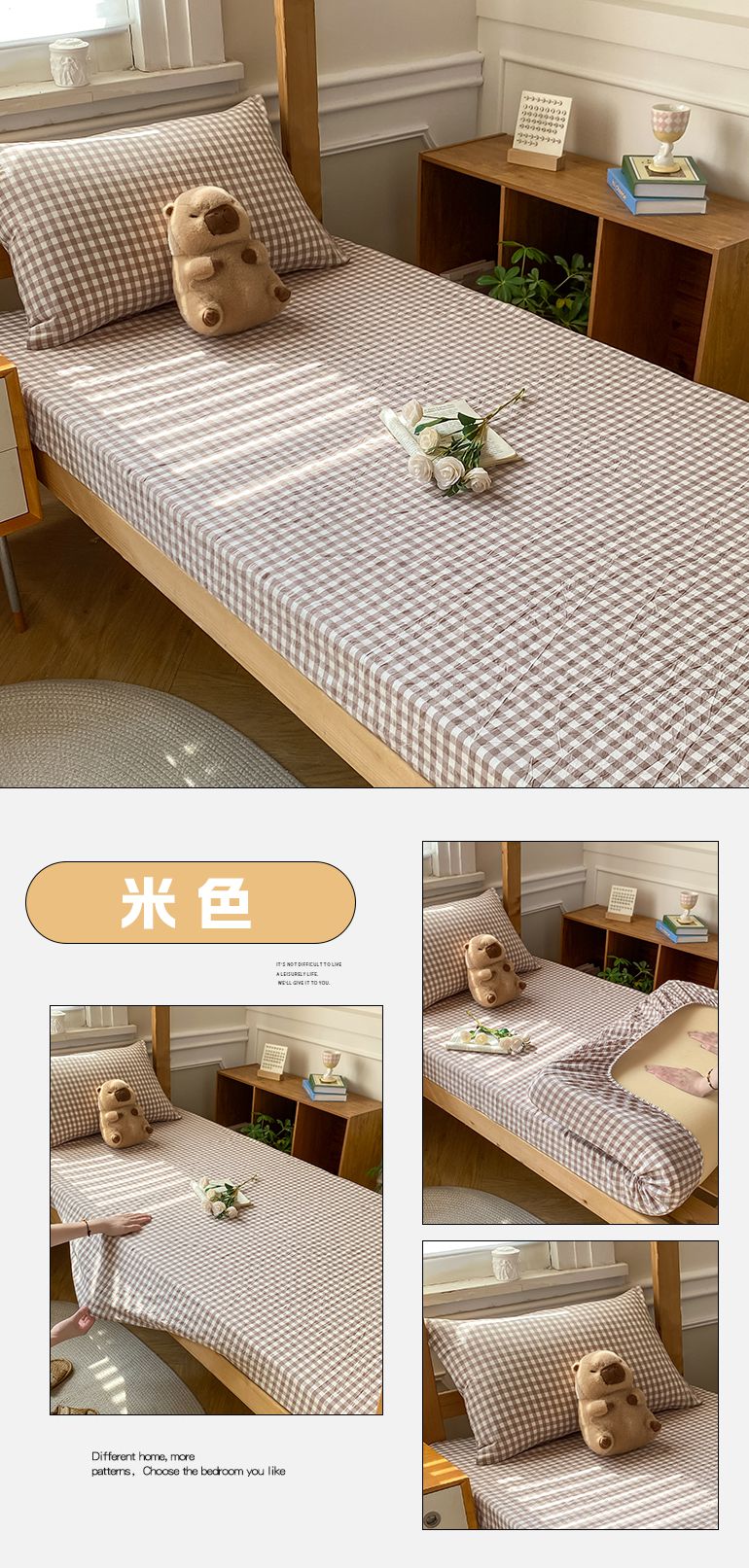 • 91家纺网 家纺一手货源 找家纺 恋人优选 2025新款儿童学生宿舍上下铺全棉纯棉色织床笠单品单床笠床笠单件-无标款系列二 豆沙