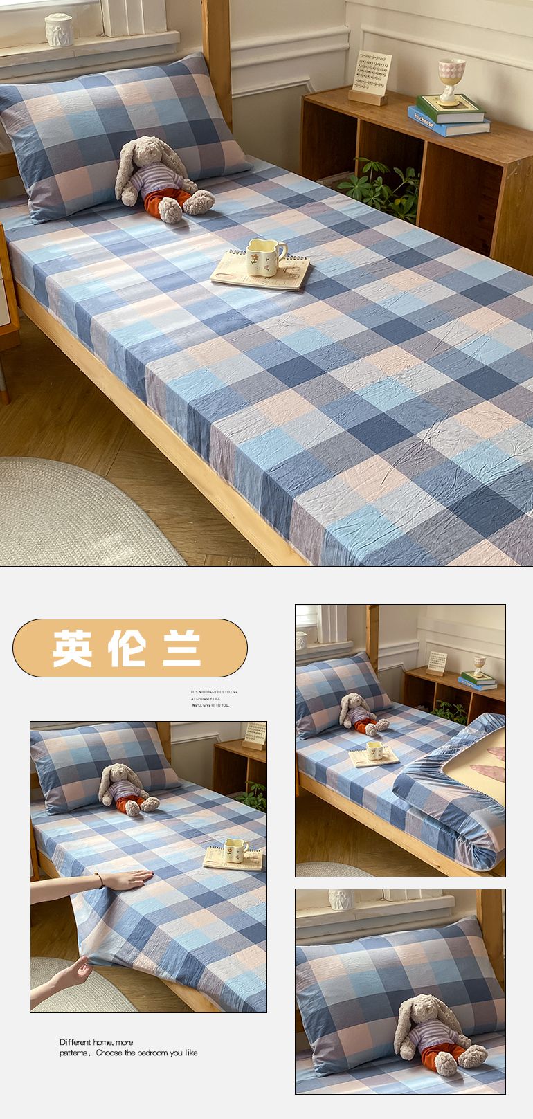 恋人优选 2025新款儿童学生宿舍上下铺全棉纯棉色织床笠单品单床笠床笠单件-无标款系列二 豆沙