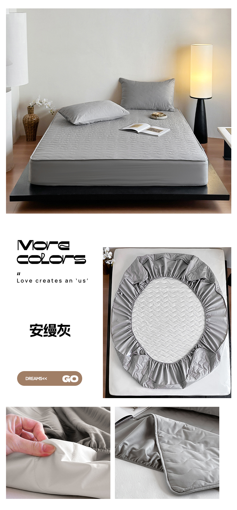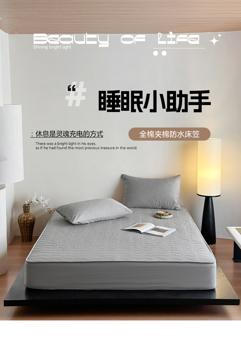 商品名称:三味舒屋 2025新款防水全棉夹棉绗缝防水隔尿床笠-安缦 安缦灰