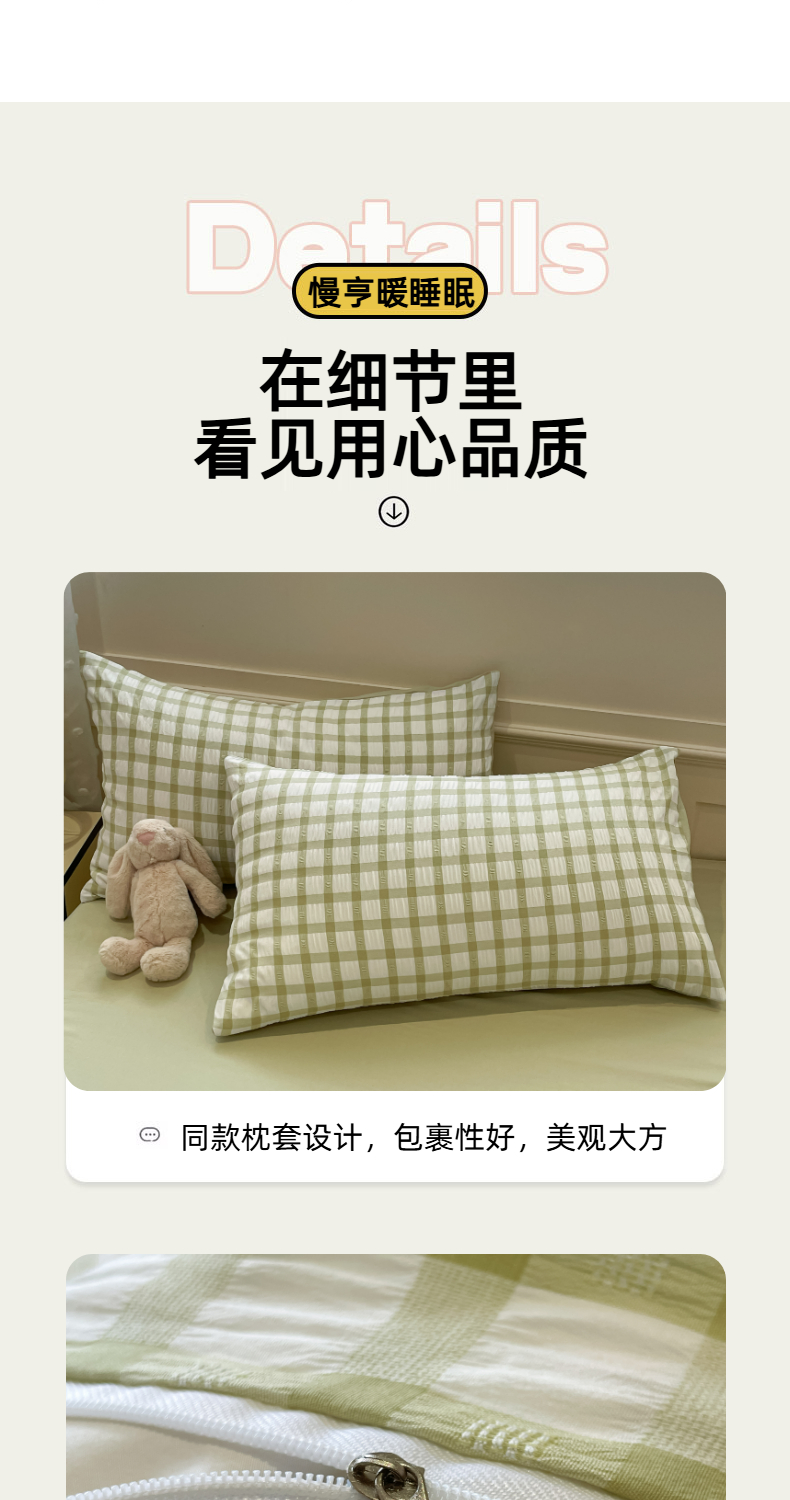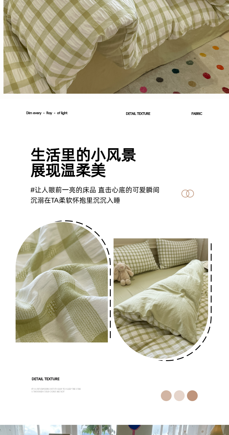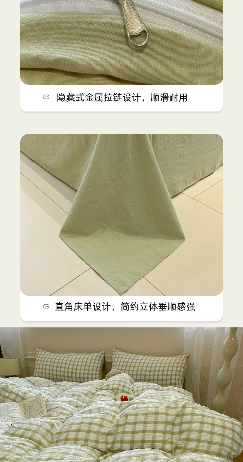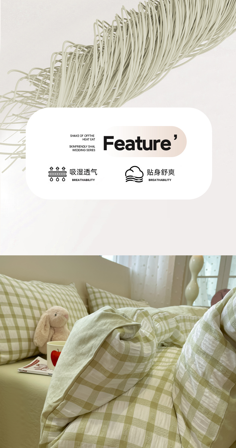 当前位置: 91家纺网 > 商品网购 > 床品套件 > 四件套 > 其它四件套 > 凯洛奇 2025新款窗格纹泡泡纱阳离子四件套(提供买家秀) 窗格纹泡泡纱-抹茶绿