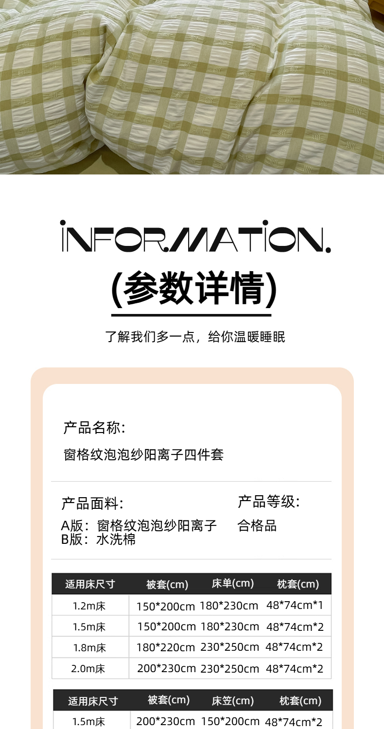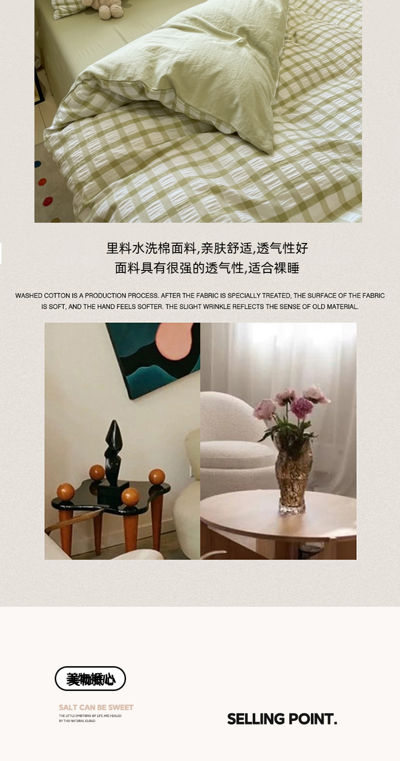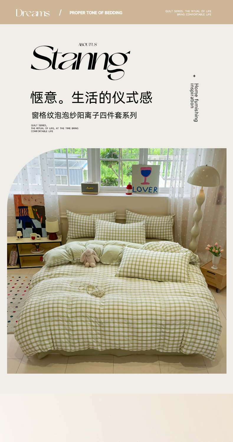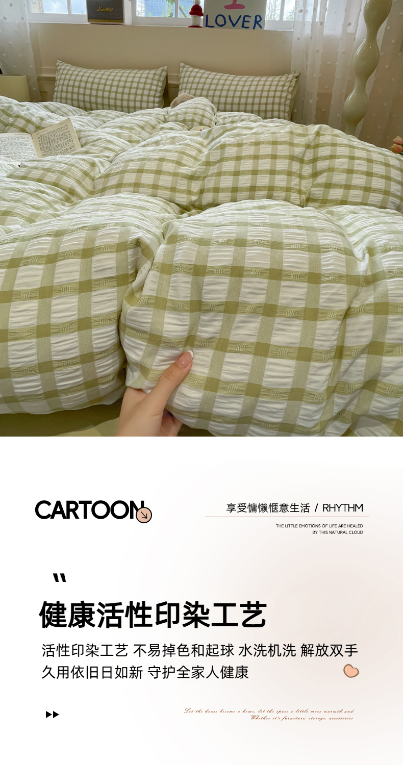当前位置: 91家纺网 > 商品网购 > 床品套件 > 四件套 > 其它四件套 > 凯洛奇 2025新款窗格纹泡泡纱阳离子四件套(提供买家秀) 窗格纹泡泡纱-抹茶绿
