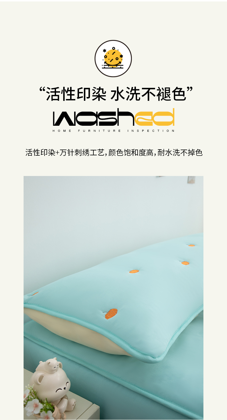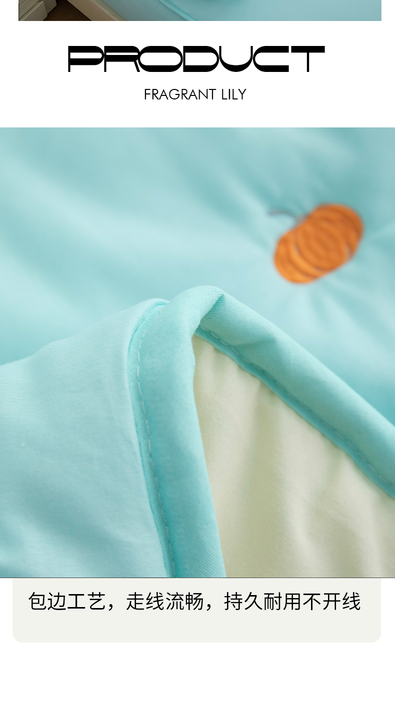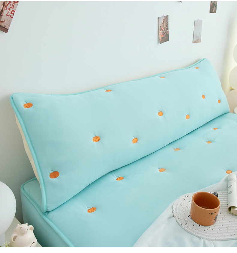 商品名称:乐居家纺 2025新款A类夹棉绣花双人枕套-南瓜 水蓝