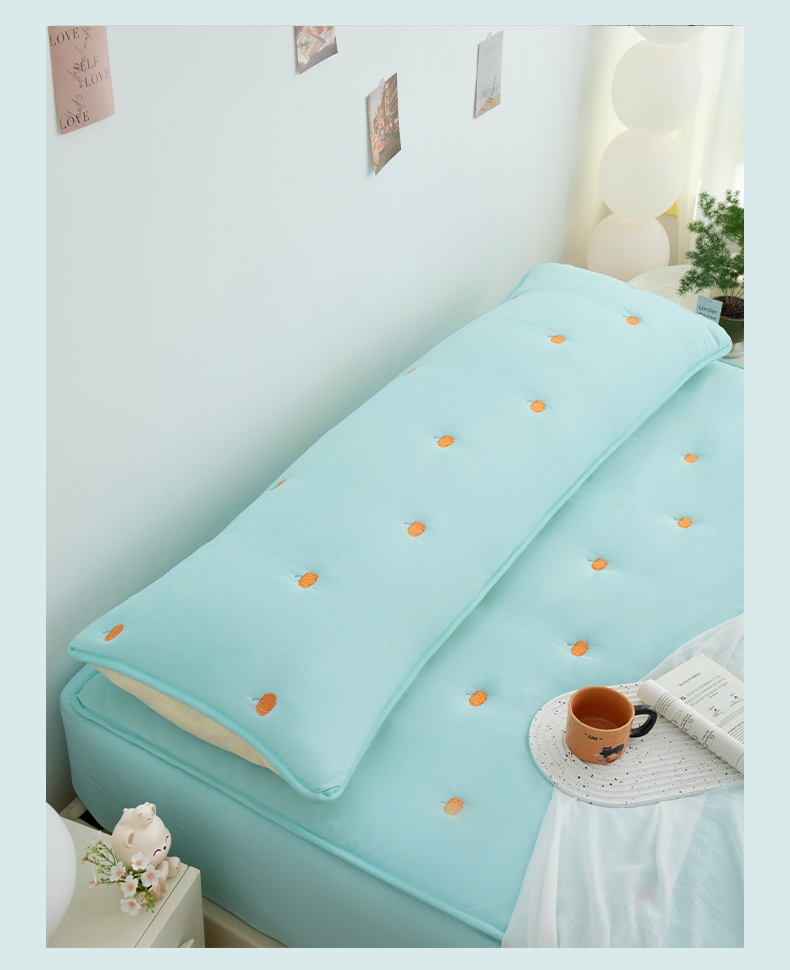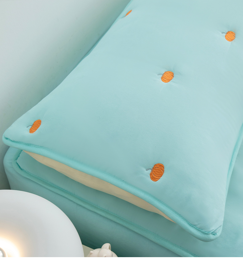 乐居家纺 2025新款A类夹棉绣花双人枕套-南瓜 水蓝