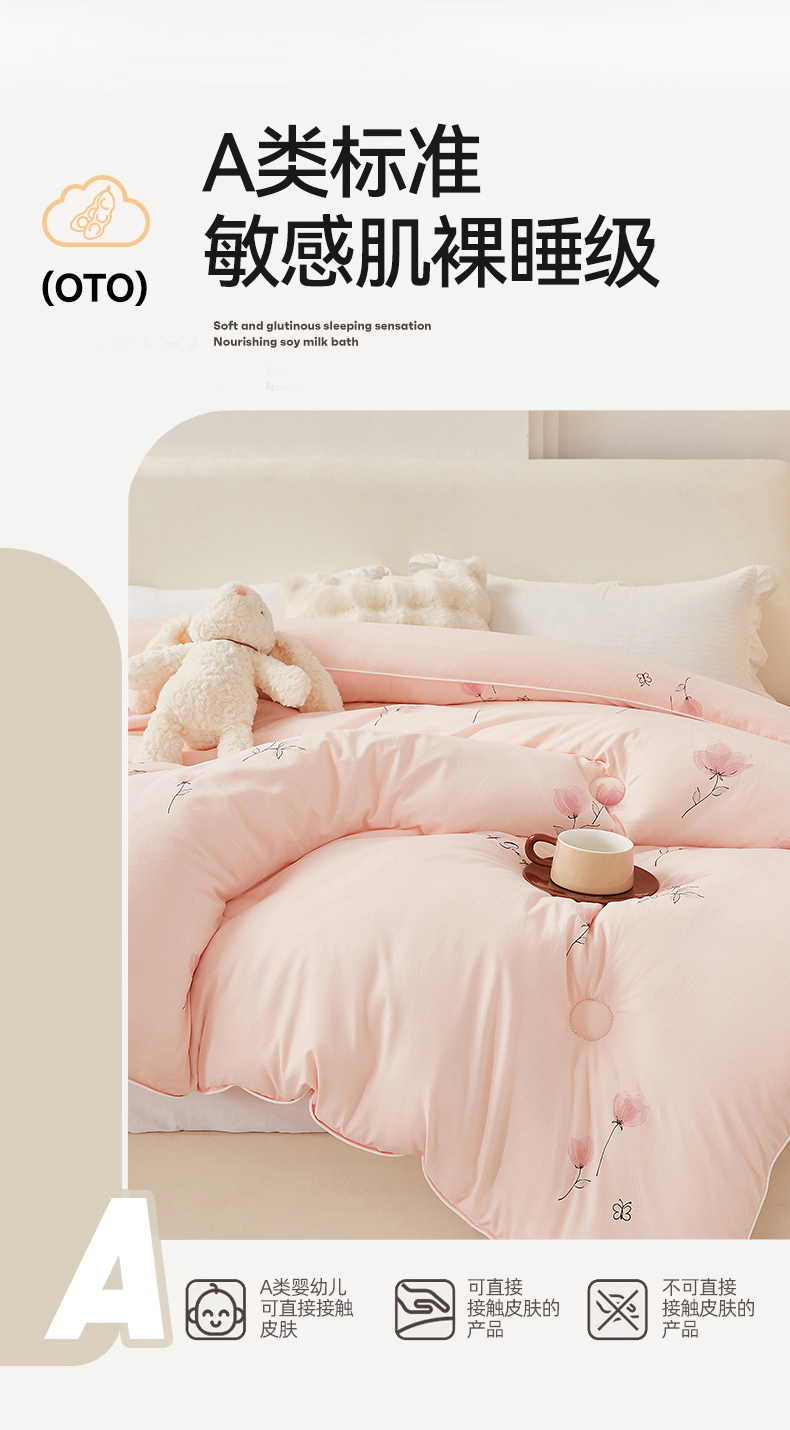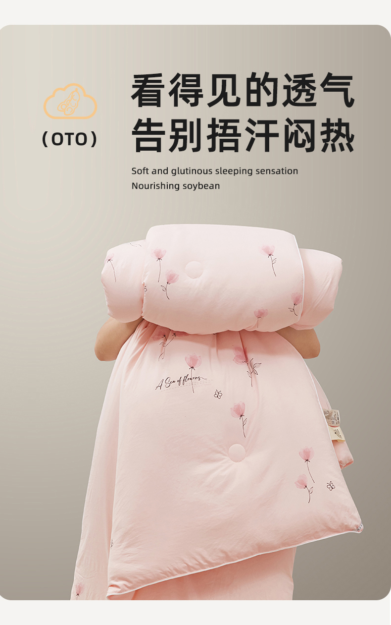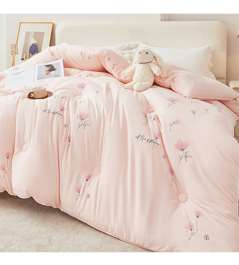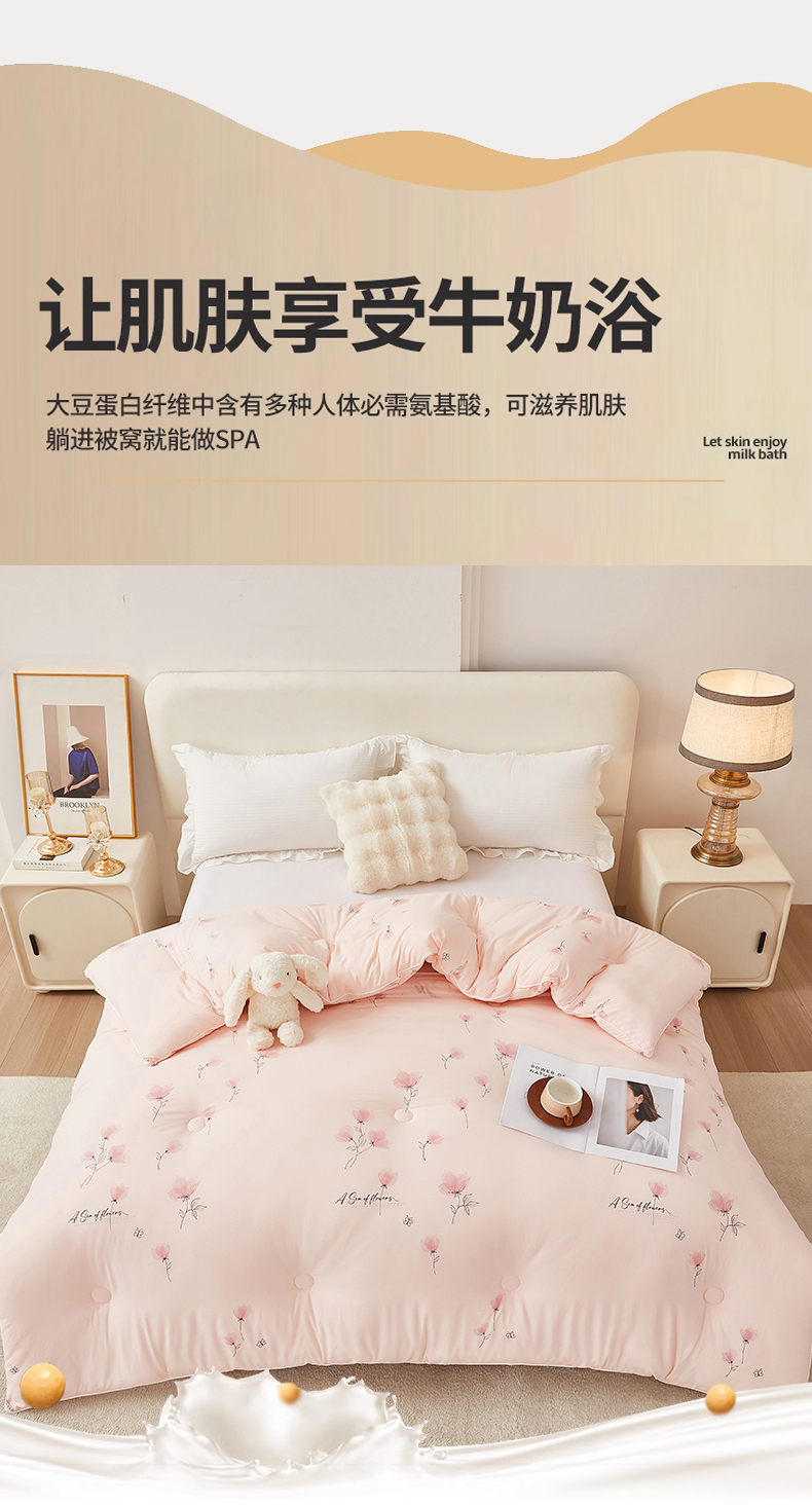尊妙被业 2025新款棉小柔大豆被被子被芯春秋被子母被直播批发夏被 虞美人-粉色