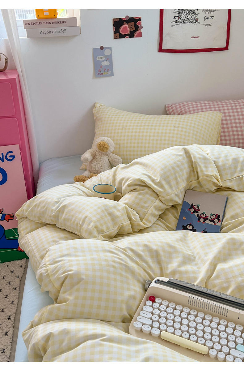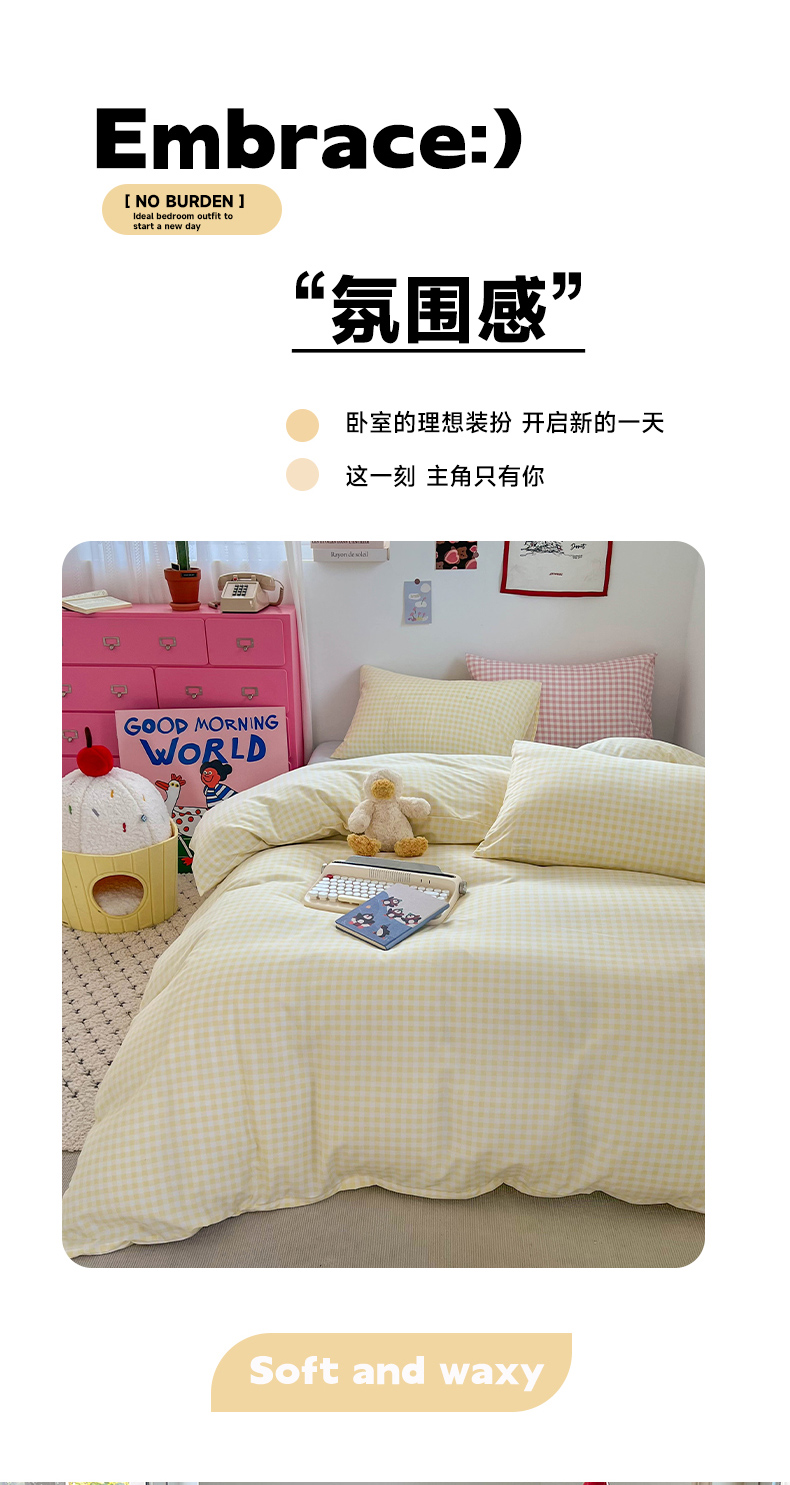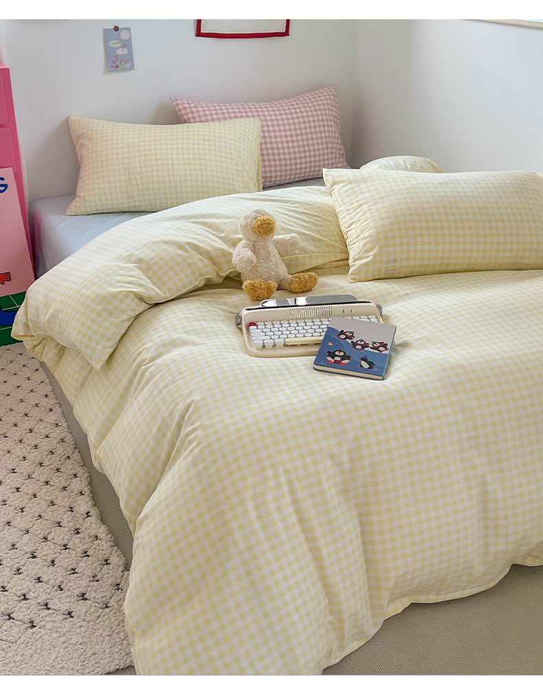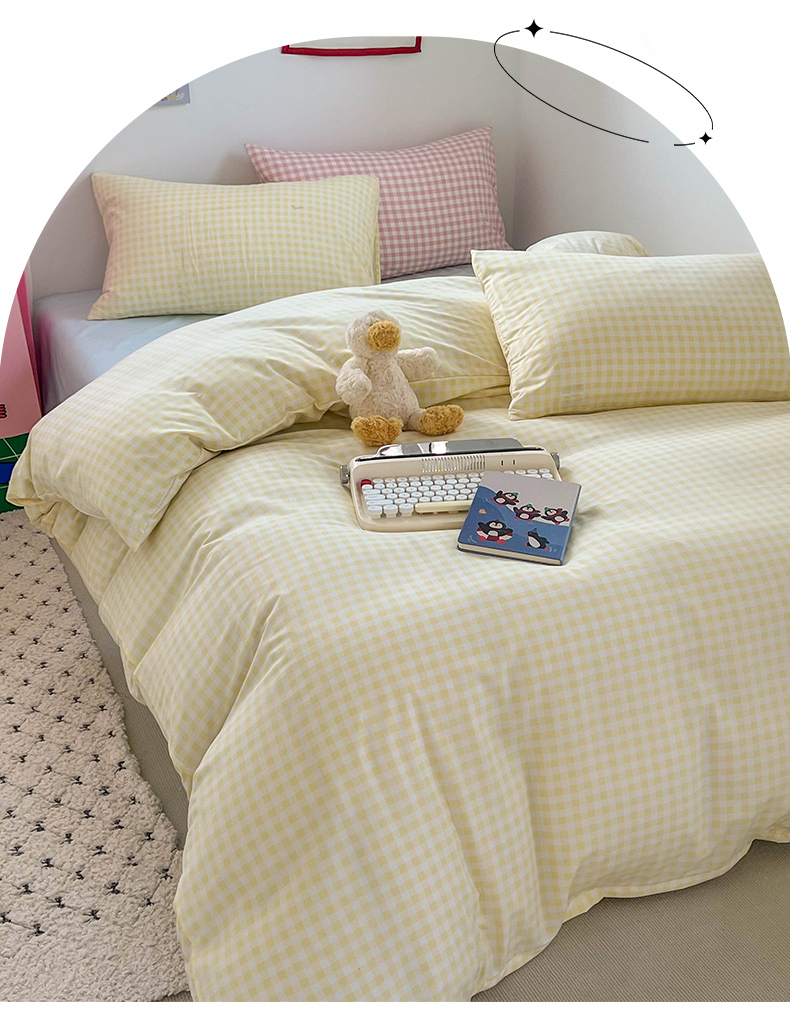 当前位置: 91家纺网 > 商品网购 > 床品套件 > 四件套 > 双层纱四件套 > 红嘴企鹅 2025新款云感提花双层纱印花系列四件套 格子黄