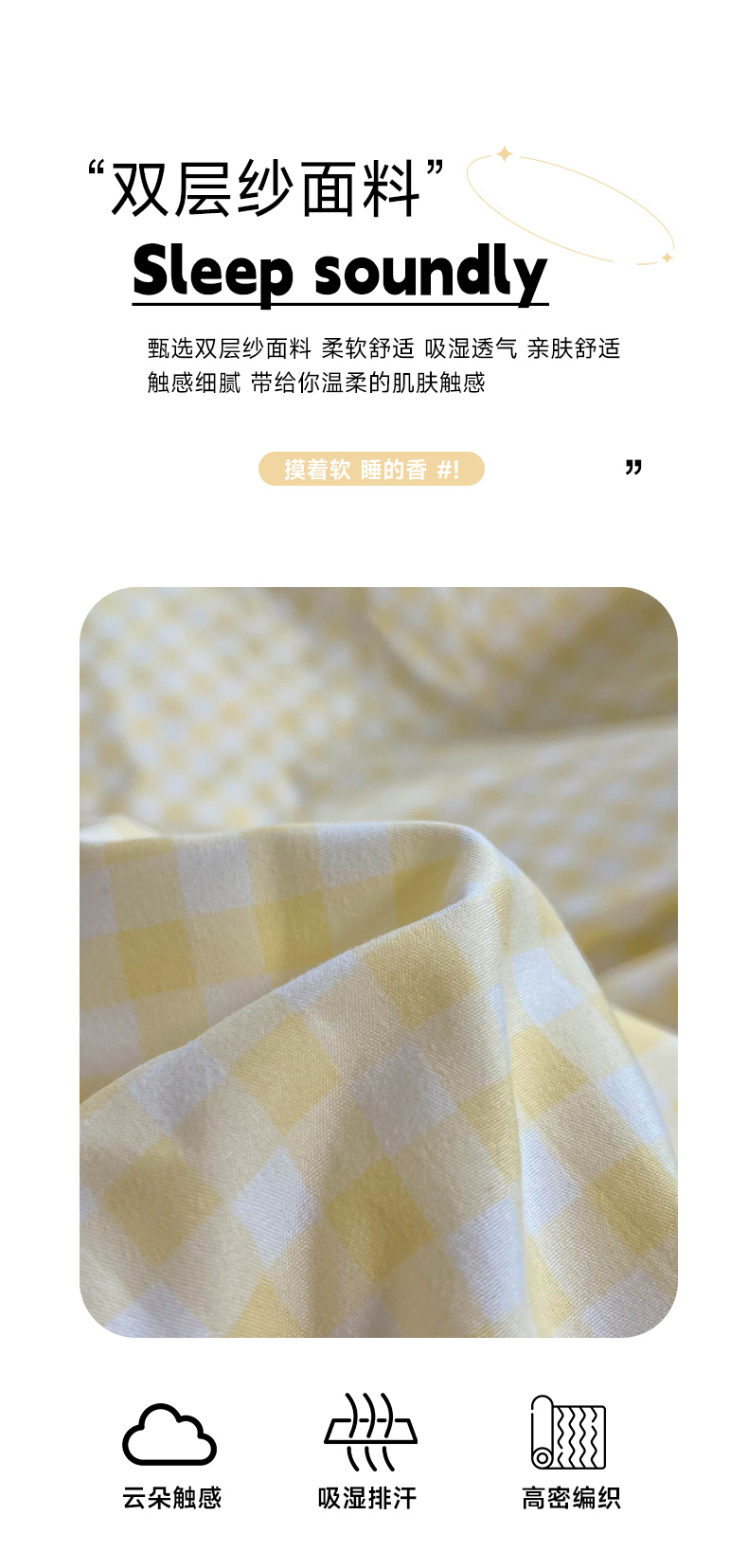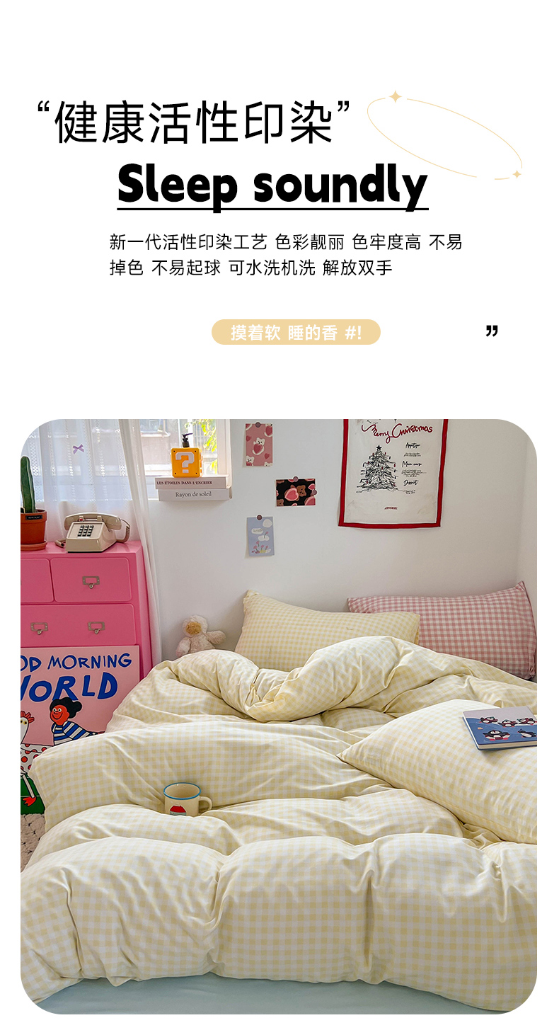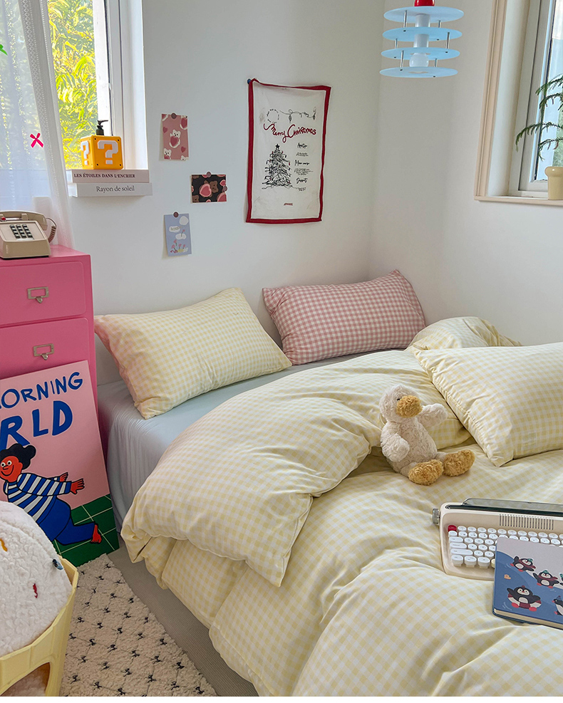 当前位置: 91家纺网 > 商品网购 > 床品套件 > 四件套 > 双层纱四件套 > 红嘴企鹅 2025新款云感提花双层纱印花系列四件套 格子黄