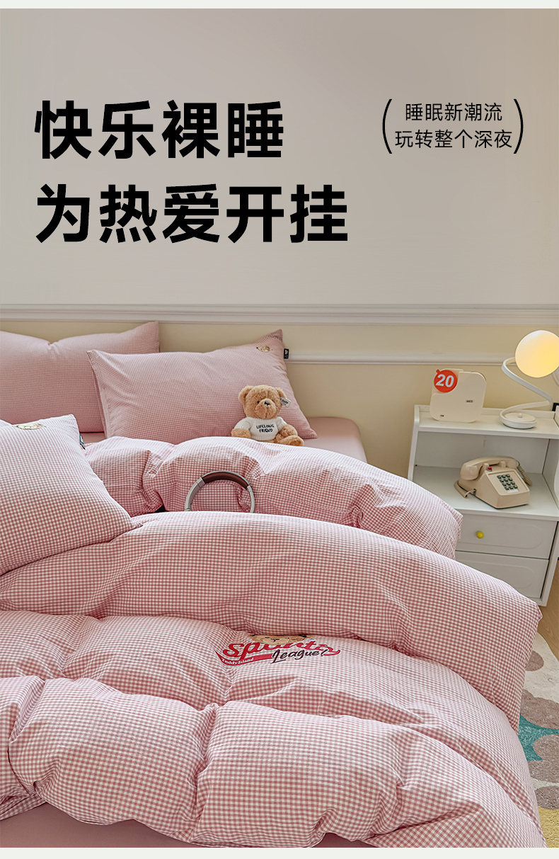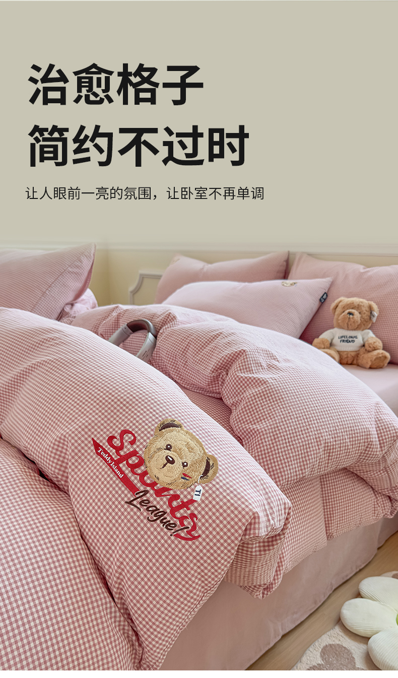 当前位置: 91家纺网 > 商品网购 > 床品套件 > 四件套 > 全棉普通四件套 > 尚品本色 2025新款全棉色织水洗棉格子绣花四件套 粉密格