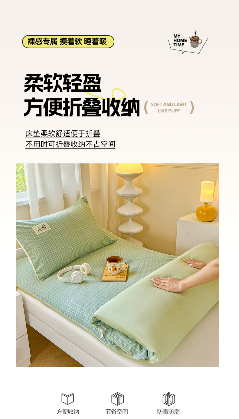 • 91家纺网 家纺一手货源 找家纺 缦卡琳家纺 2025新款水洗棉床褥子 巴宝莉绿