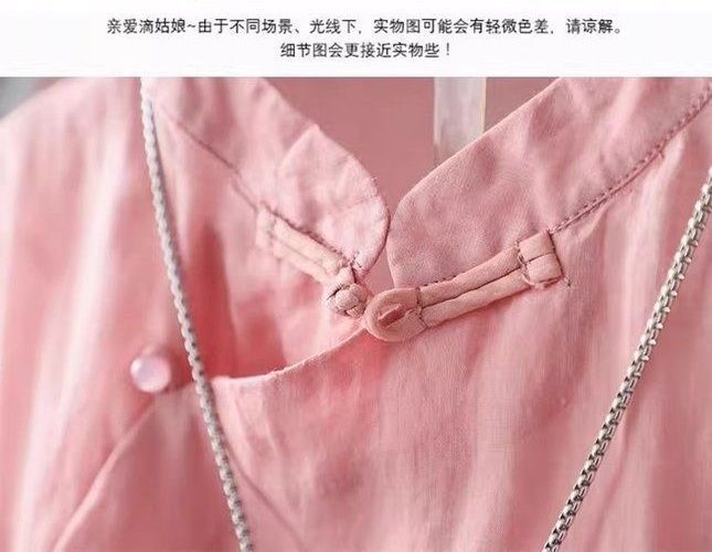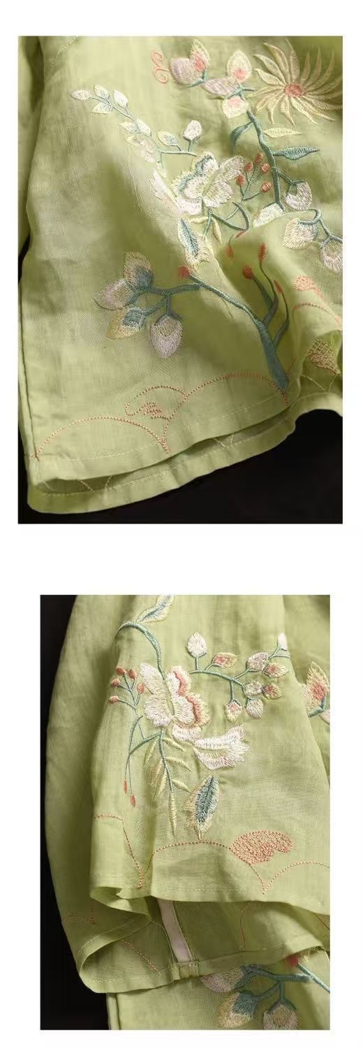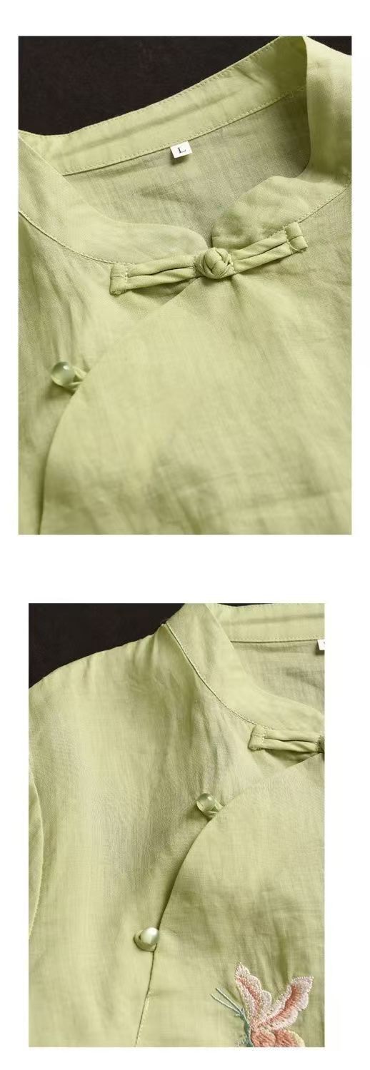 商品名称:(总)洛兰沙家居馆【只代发】【只代发】 2025新款中国风绣花苎麻衬衫女夏季斜襟盘扣立领唐装小衫气质棉麻套头上衣