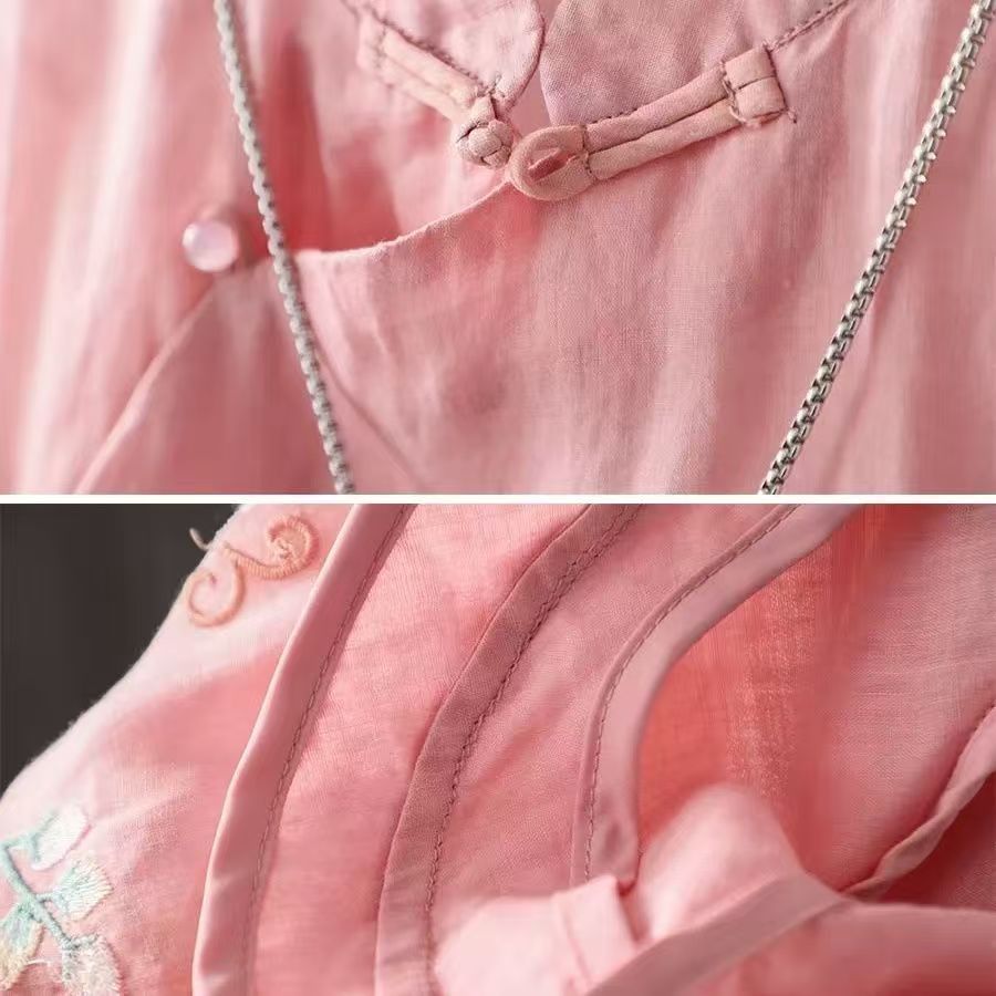 (总)洛兰沙家居馆【只代发】【只代发】 2025新款中国风绣花苎麻衬衫女夏季斜襟盘扣立领唐装小衫气质棉麻套头上衣