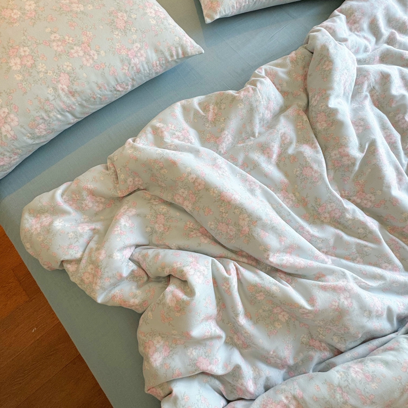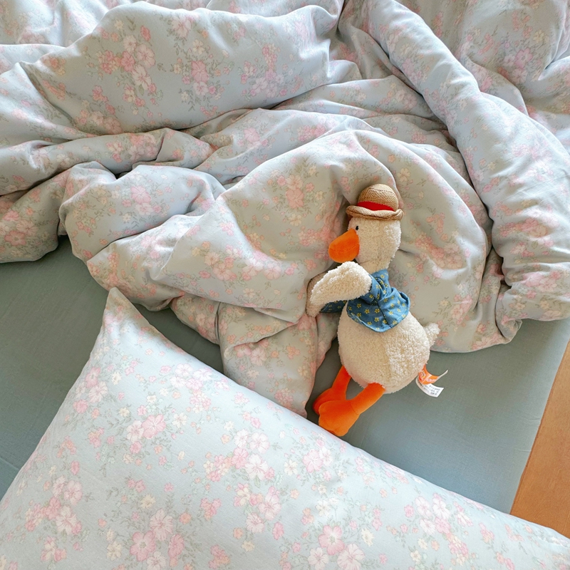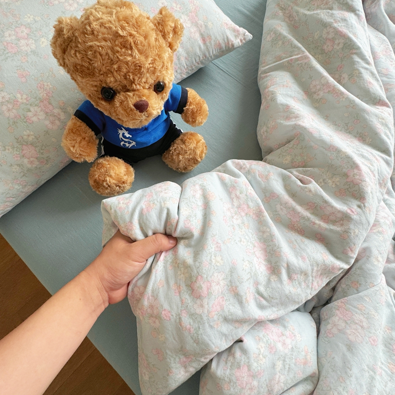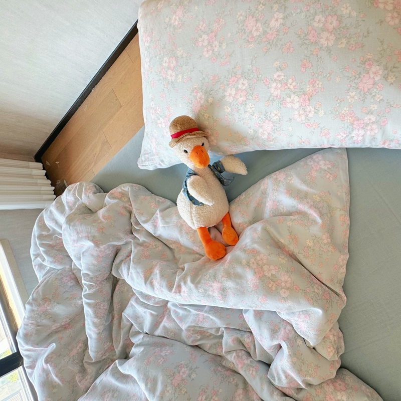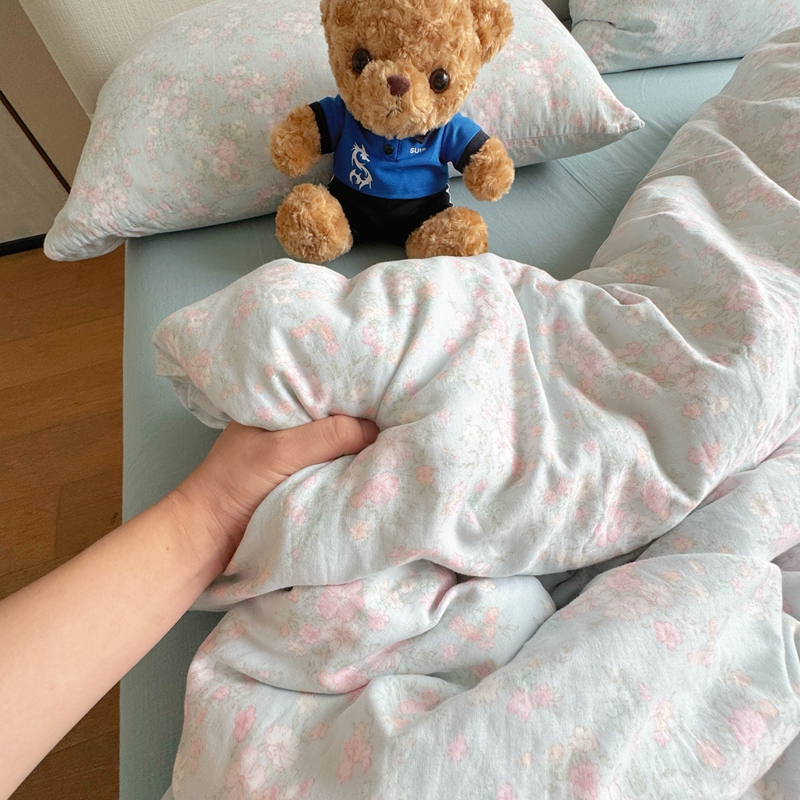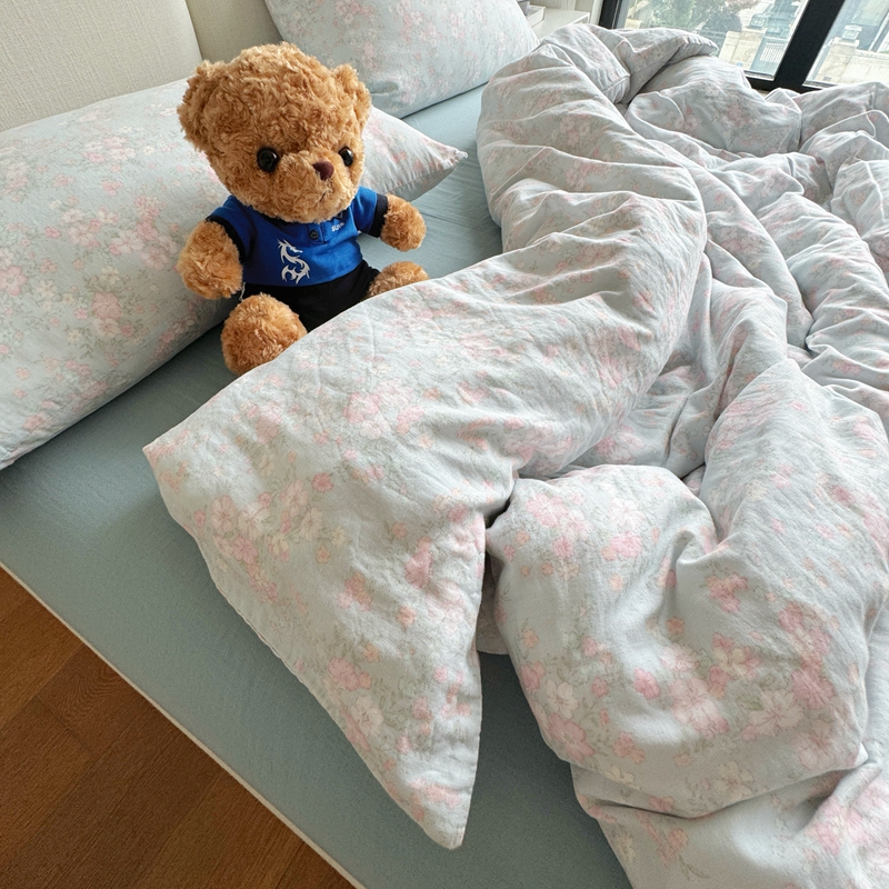 8+8 2025新款全棉A类母婴级抗菌有氧全棉双层纱亲肤全棉小清新印花三件套四件套简约款-雨沫,简约款-雨沫