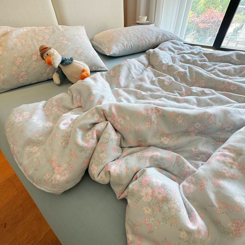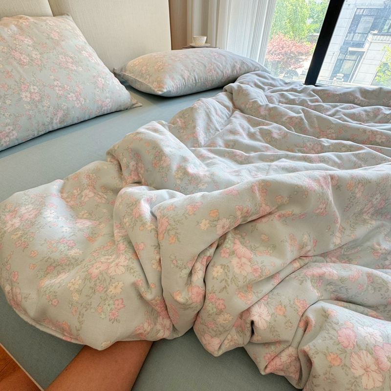 8+8 2025新款全棉A类母婴级抗菌有氧全棉双层纱亲肤全棉小清新印花三件套四件套 简约款-莱茵河畔
