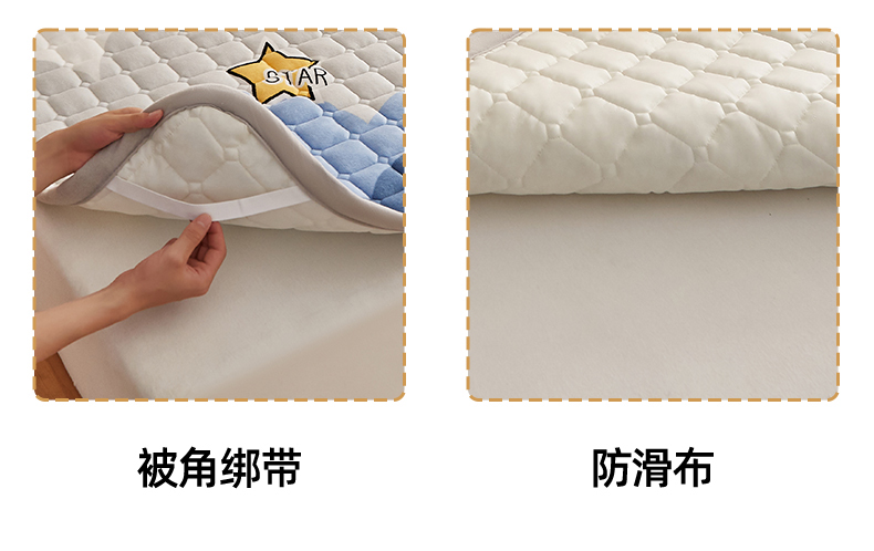 当前位置: 91家纺网 > 商品网购 > 床垫/床褥 > 奇丝雅 2025新款A类牛奶绒夹棉印花床褥床垫家用软垫床护垫-大床款 水纹星