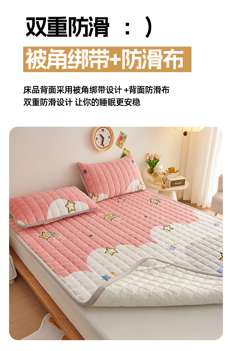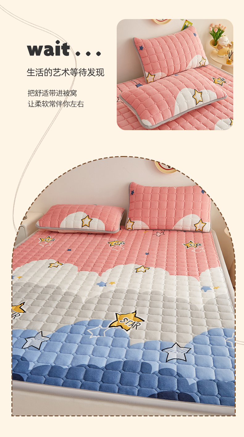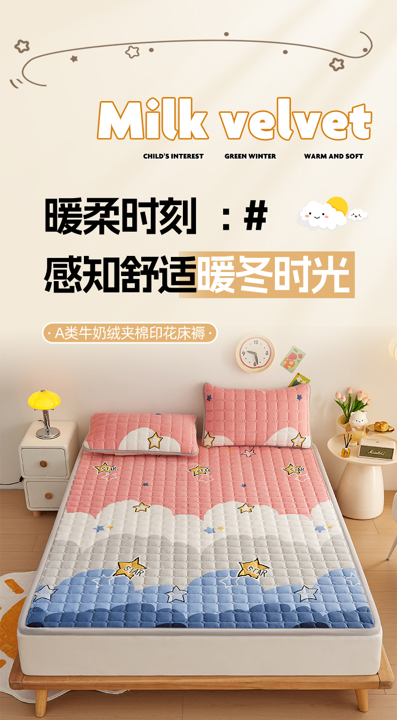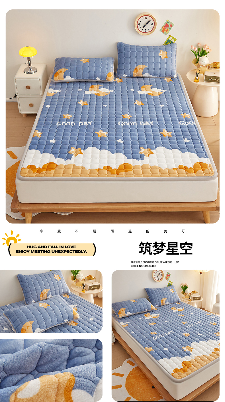 • 91家纺网 家纺一手货源 找家纺 (总)奇丝雅 2025新款A类牛奶绒泡泡绒床褥床垫床盖兔毛绒家用学生宿舍上下铺寝室褥子软垫床护垫夹棉(大床)场景二,星星猫咪,月亮湾,趴趴狗,繁星,爱心咖,樱桃猫咪,幻影灰,暖绒蓝,清新绿,柔和蓝
